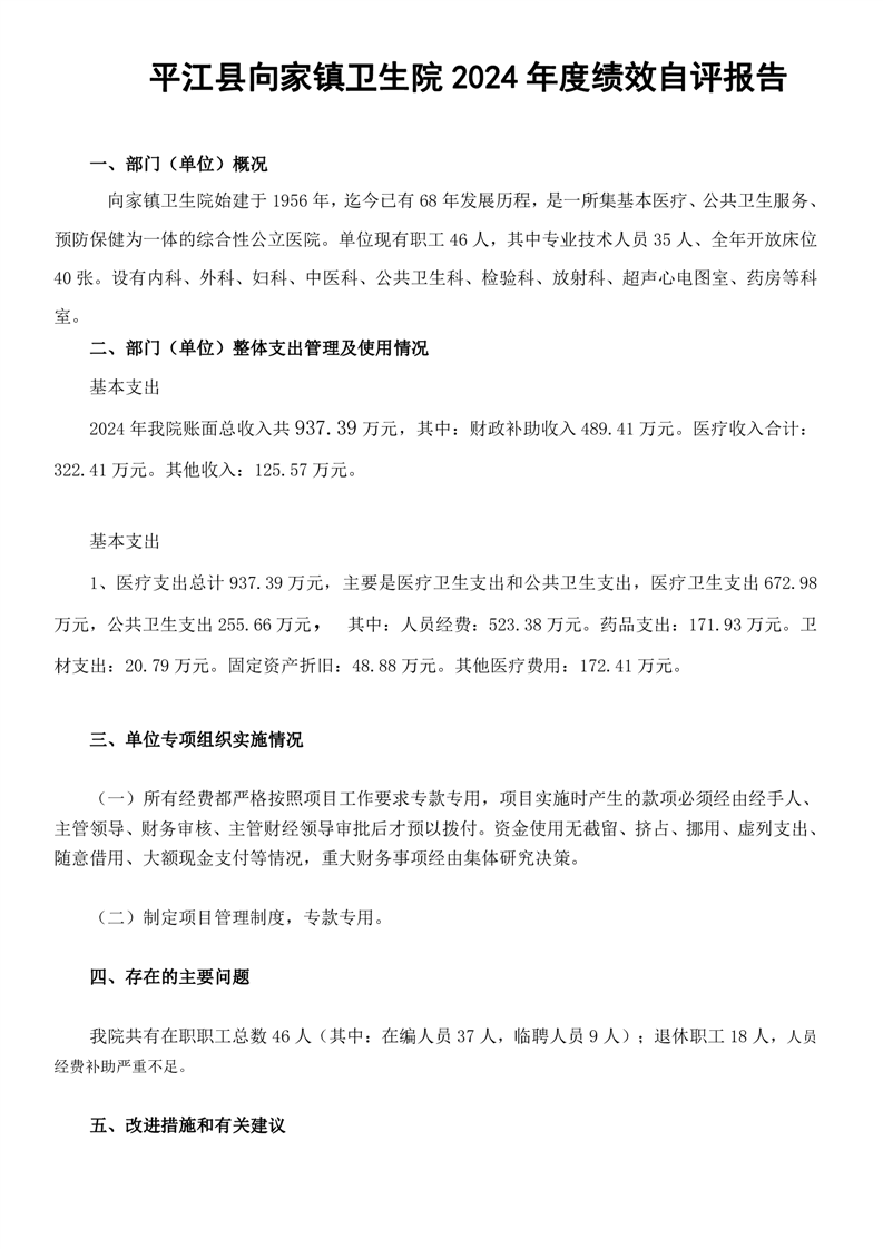 向家院部门2024年度部门决算公开