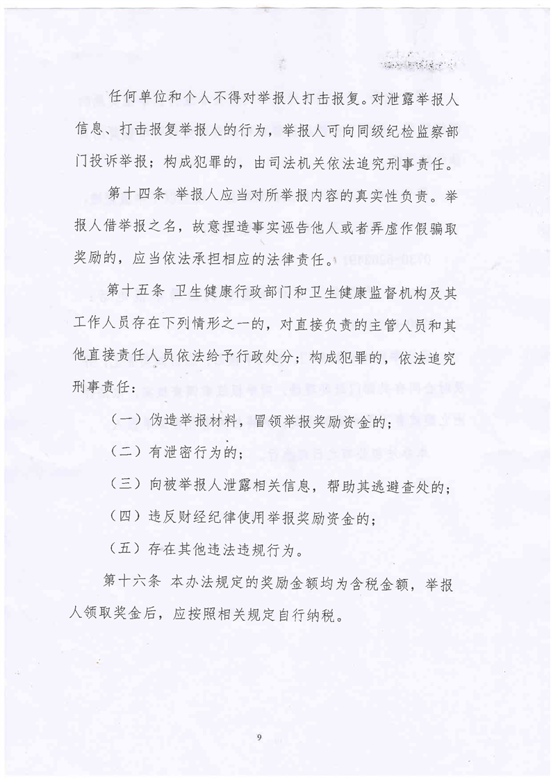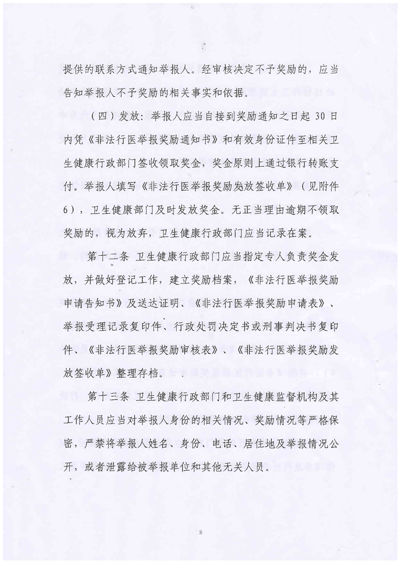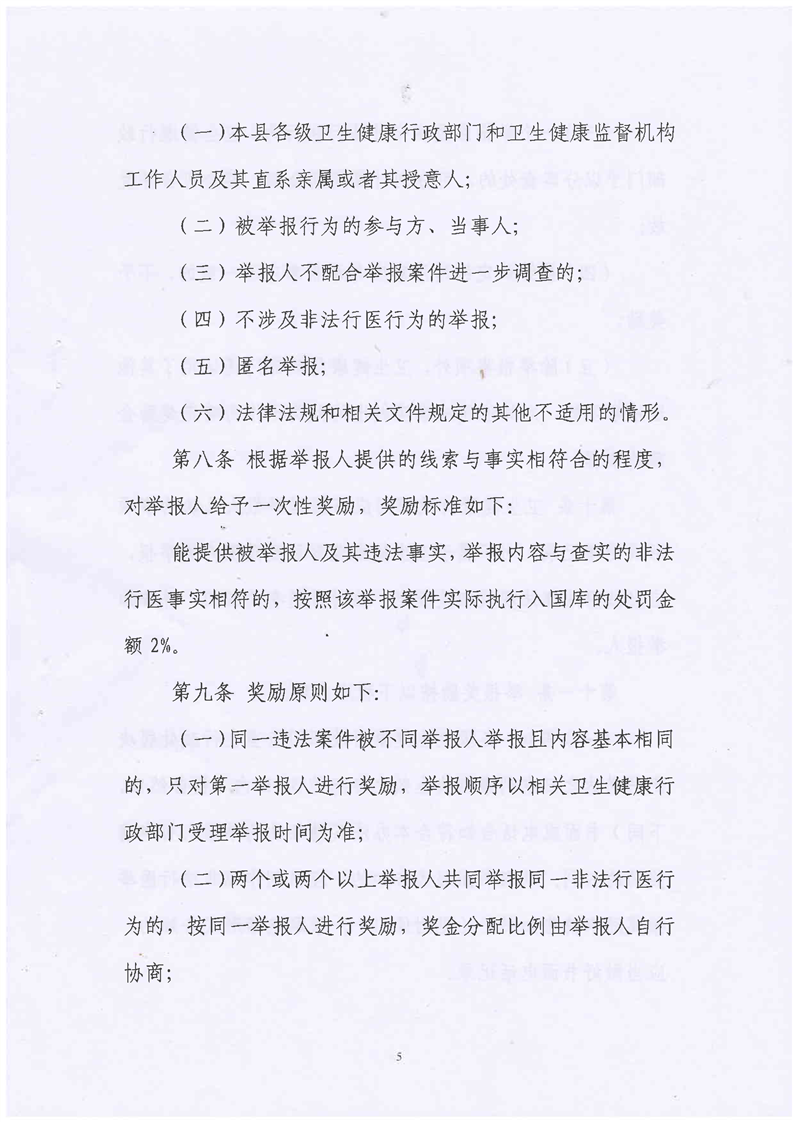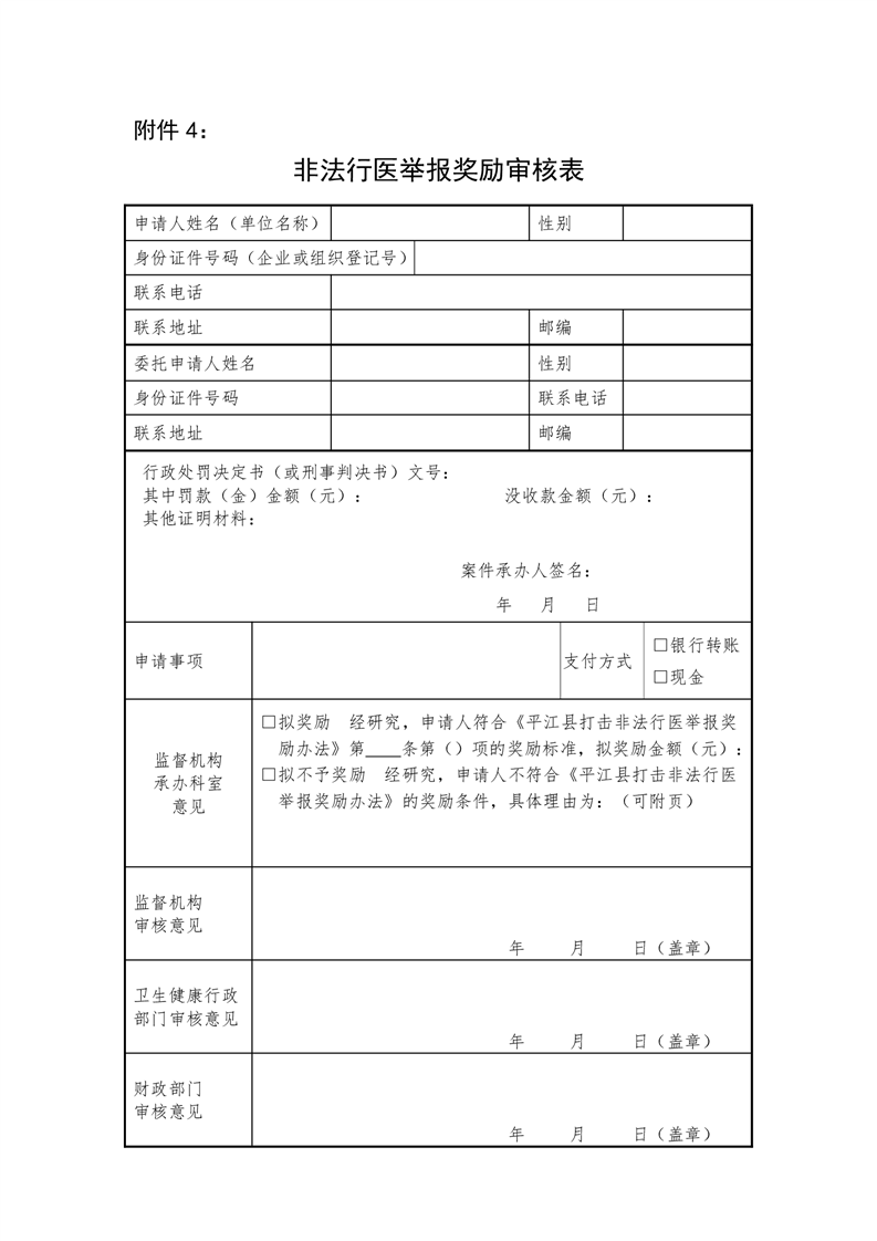 关于印发《平江县打击非法行医举报奖励办法》的通知