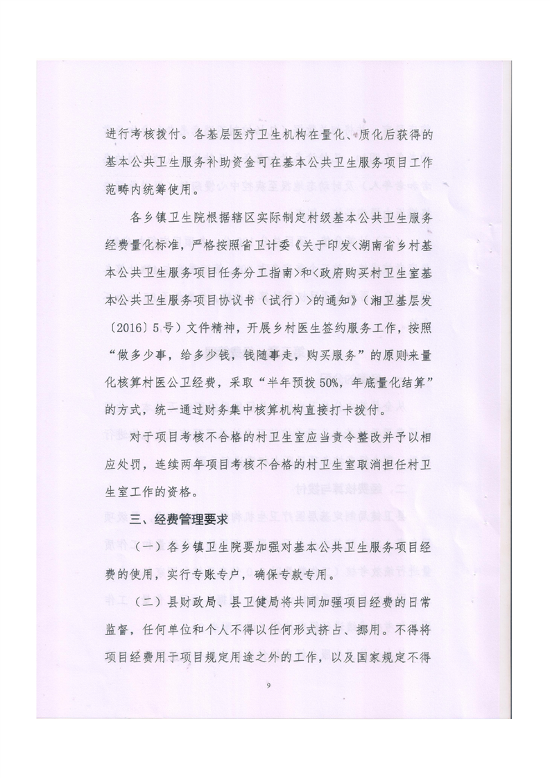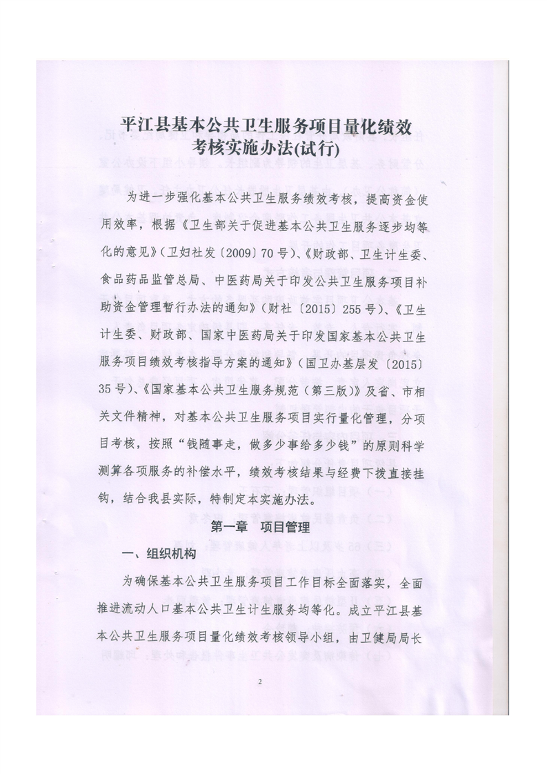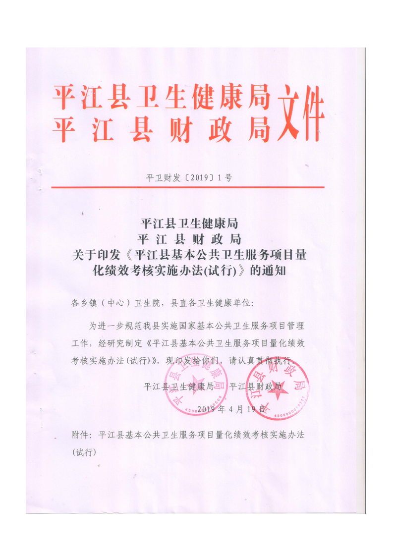 平江县基本公共卫生服务项目量化绩效考核实施办法