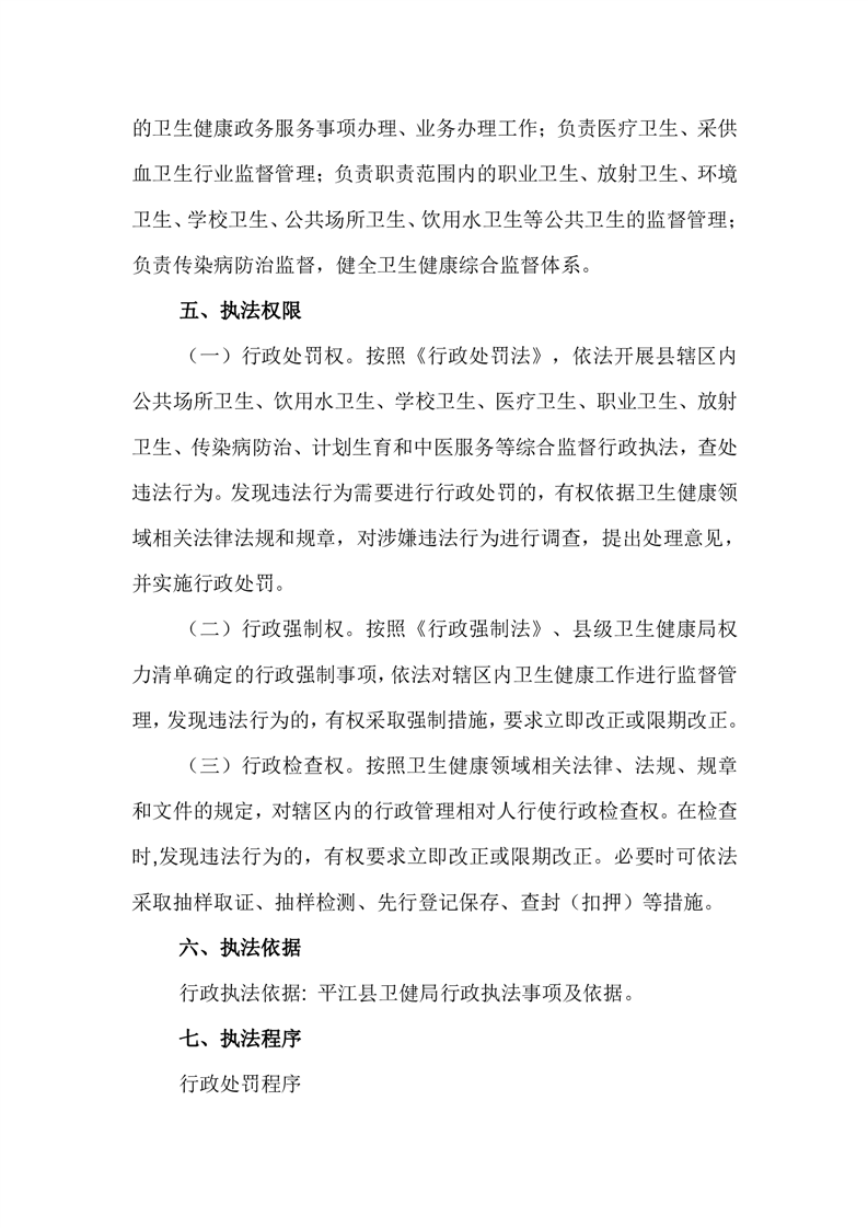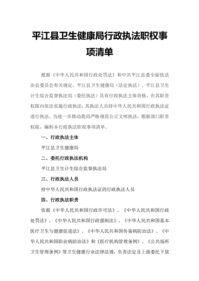 2024年 平江县卫生健康局行政执法职权事项清单(继续延用)