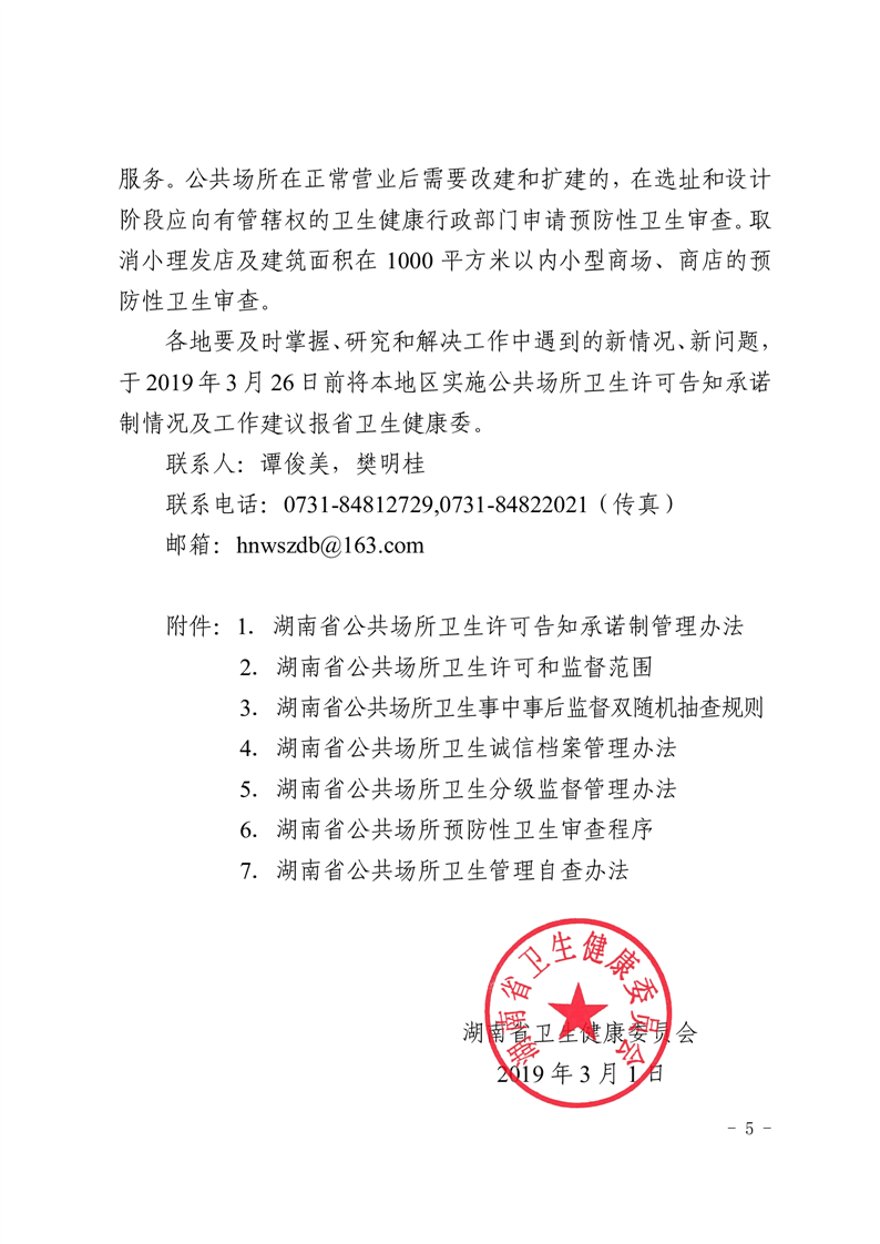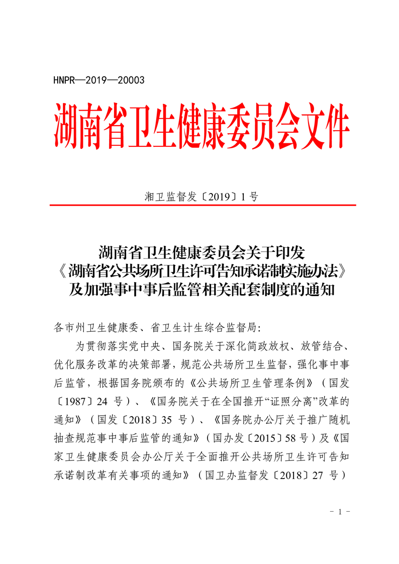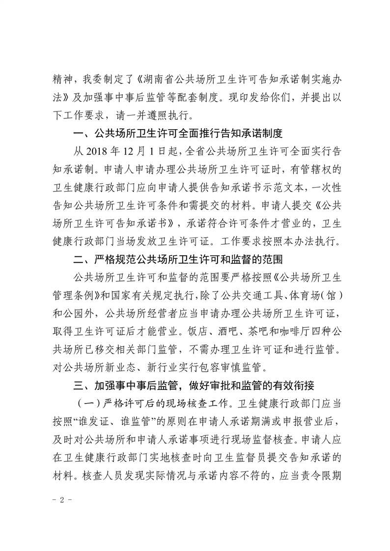 湖南省卫生健康委员会关于印发《湖南省公共场所卫生许可告知承诺制实施办法》及加强事中事后监管相关配套制度的通知