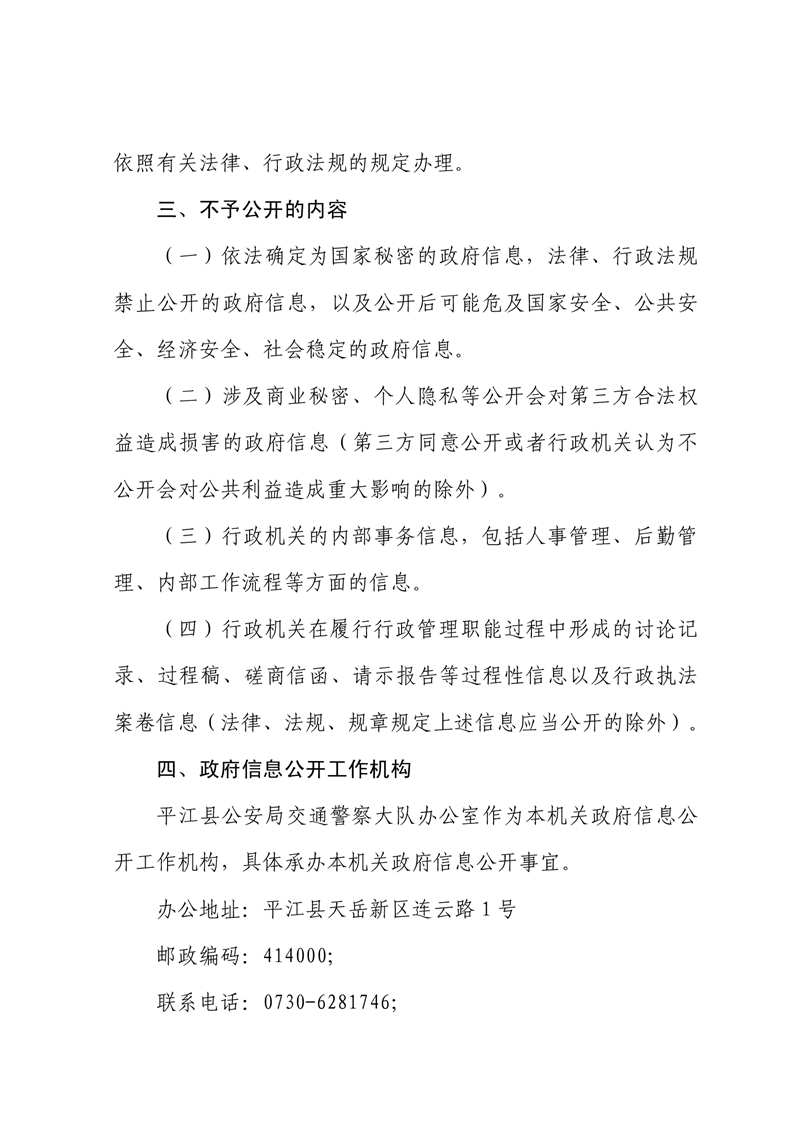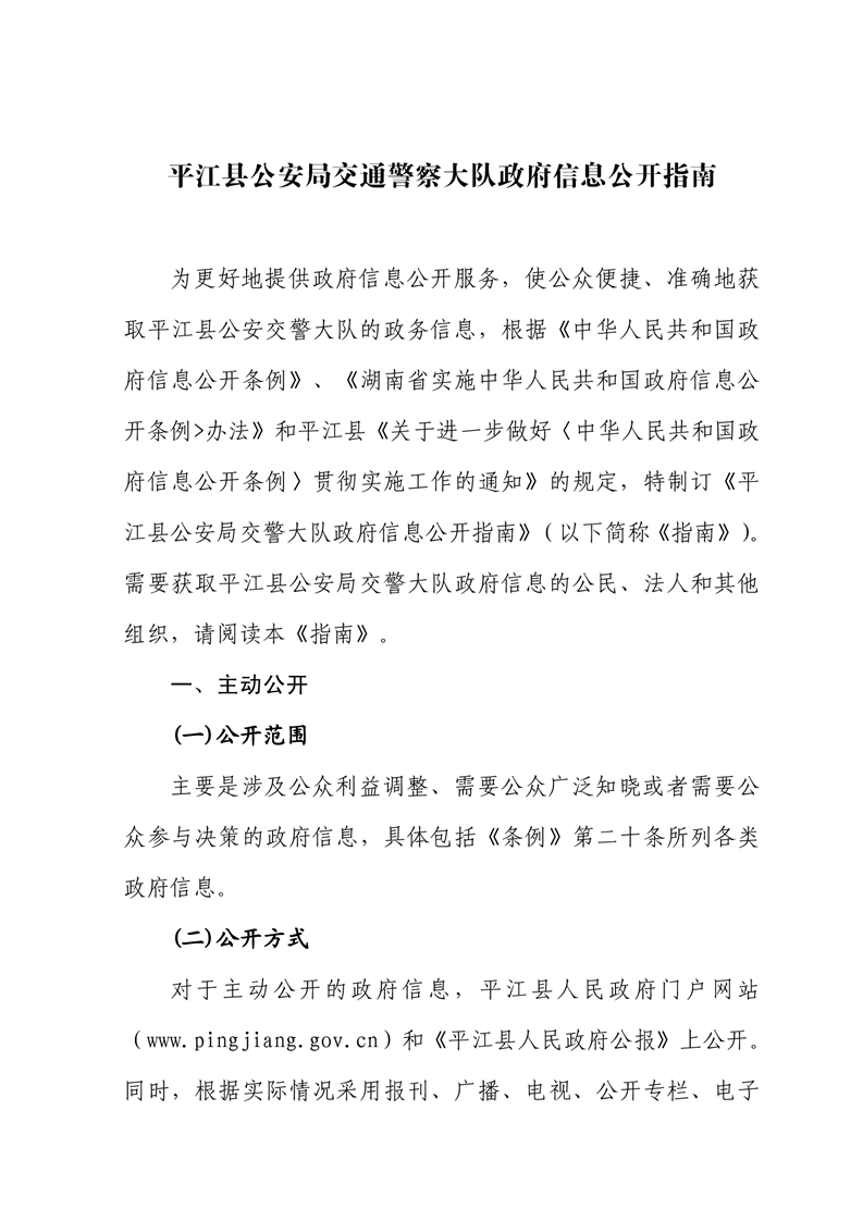 平江县公安局交通警察大队政府信息公开指南(2023)