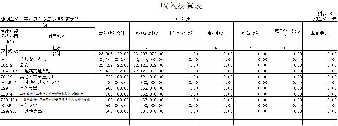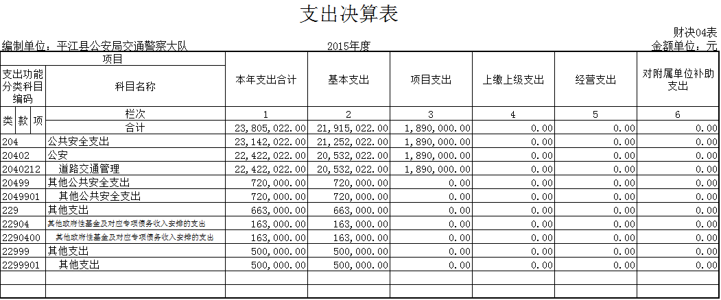 编制单位:平江县公安局交通警察大队 金额单位:万元