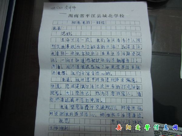 四是亲子互动抓宣传,大队与教育局联合,开展小手牵大手活动,要求每位学生给自己的爸爸写一封交通安全信,爸爸与孩子互动,并作出了自已的承诺。全县收到互动信1500多份。