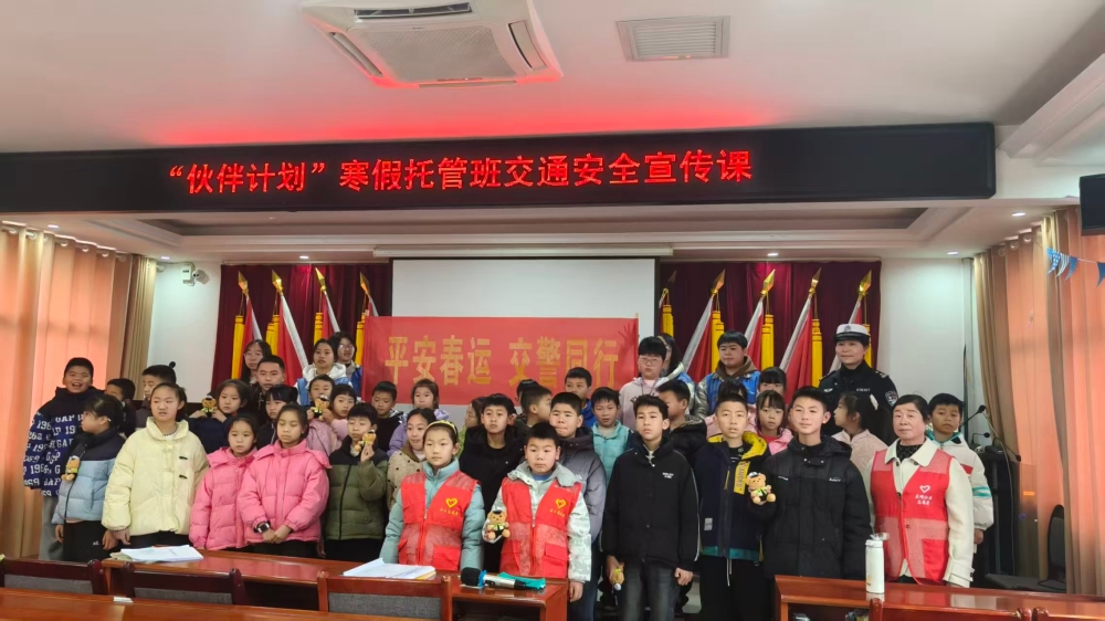 寒假期间,为了提高学生在日常生活中的交通安全意识,平江交警深入辖区启明社区寒托班开展“文明交通,安全伴我行”主题宣传活动。
