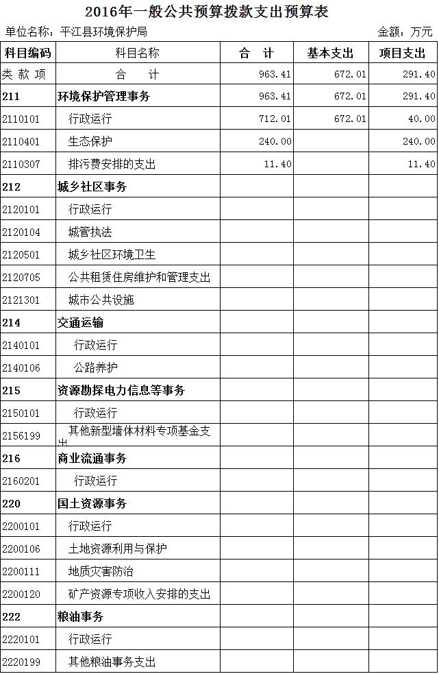 2016年支出预算963.41万元。其中:工资福利支出528.24万元,对个人和家庭的补助22.44万元,一般商品和服务支出121.33万元;项目支出291.4万元。