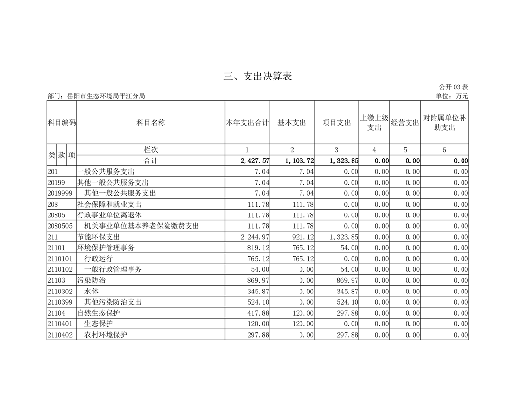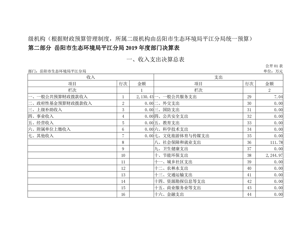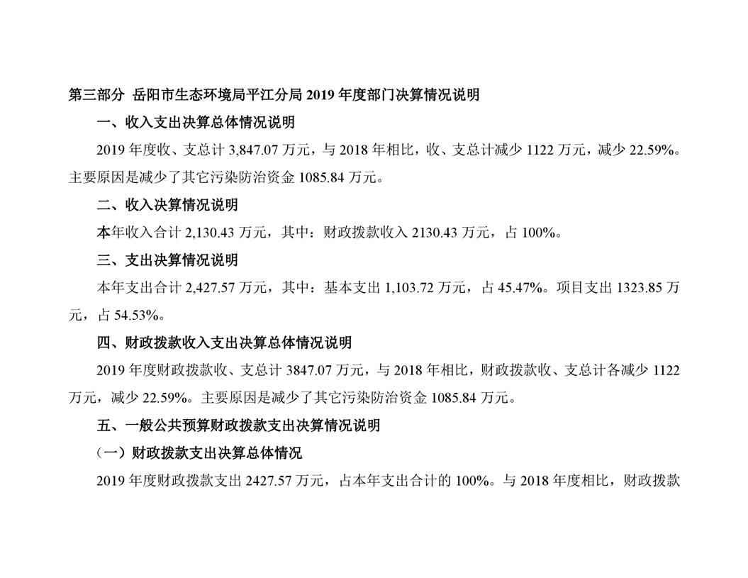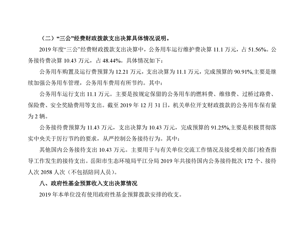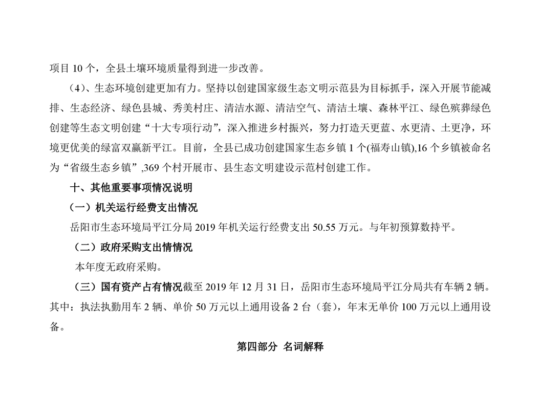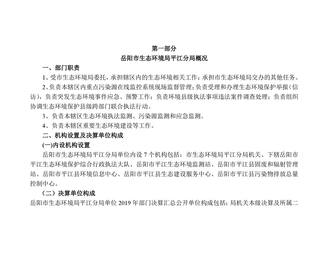 岳阳市生态环境局平江分局2019年度部门决算
