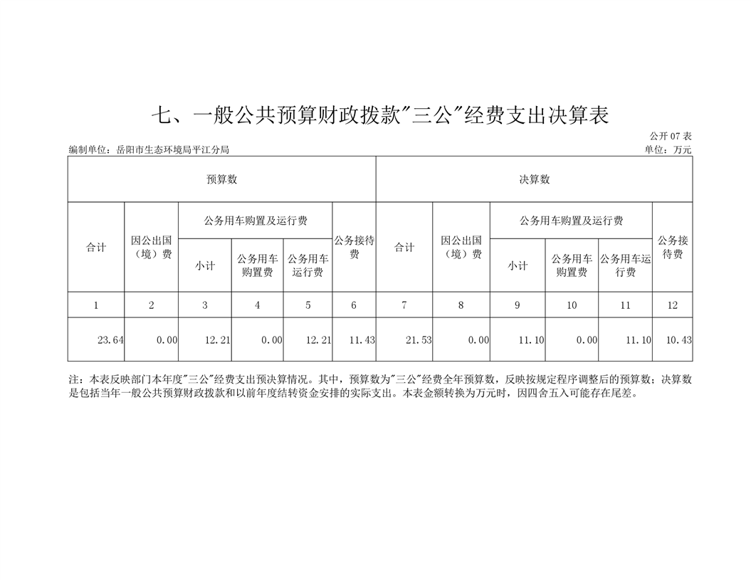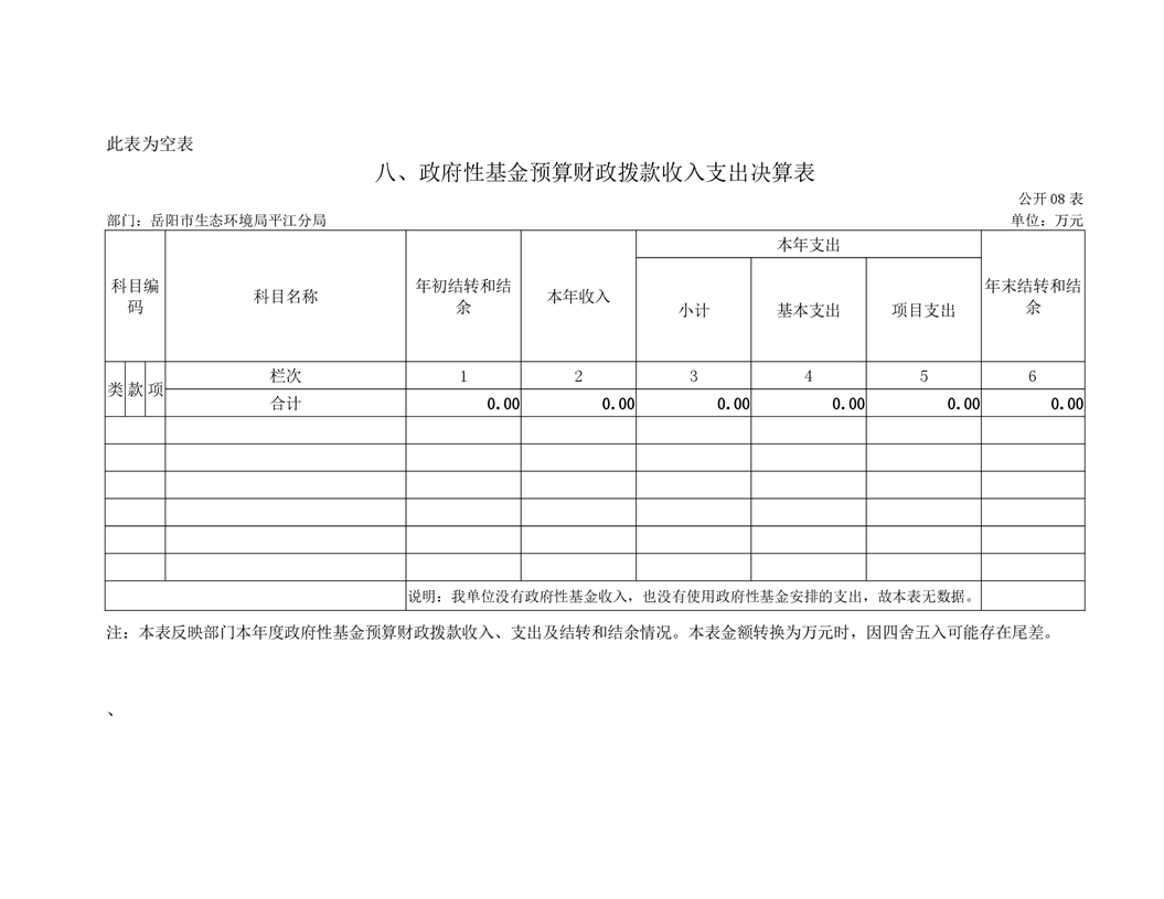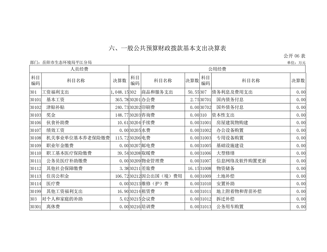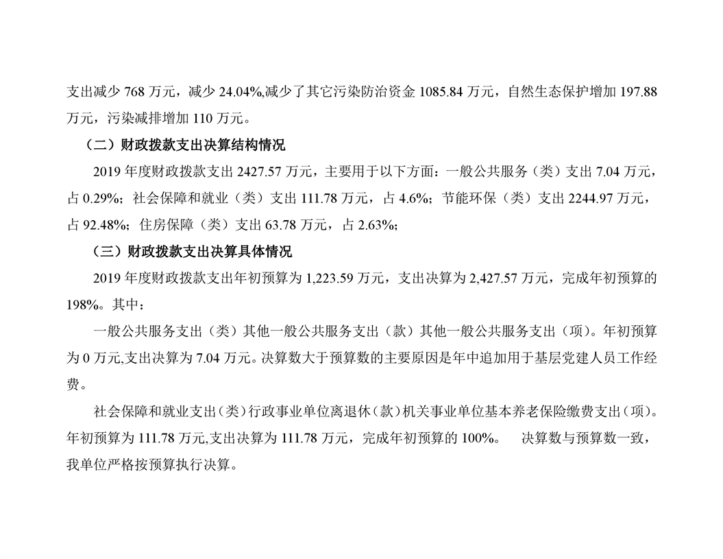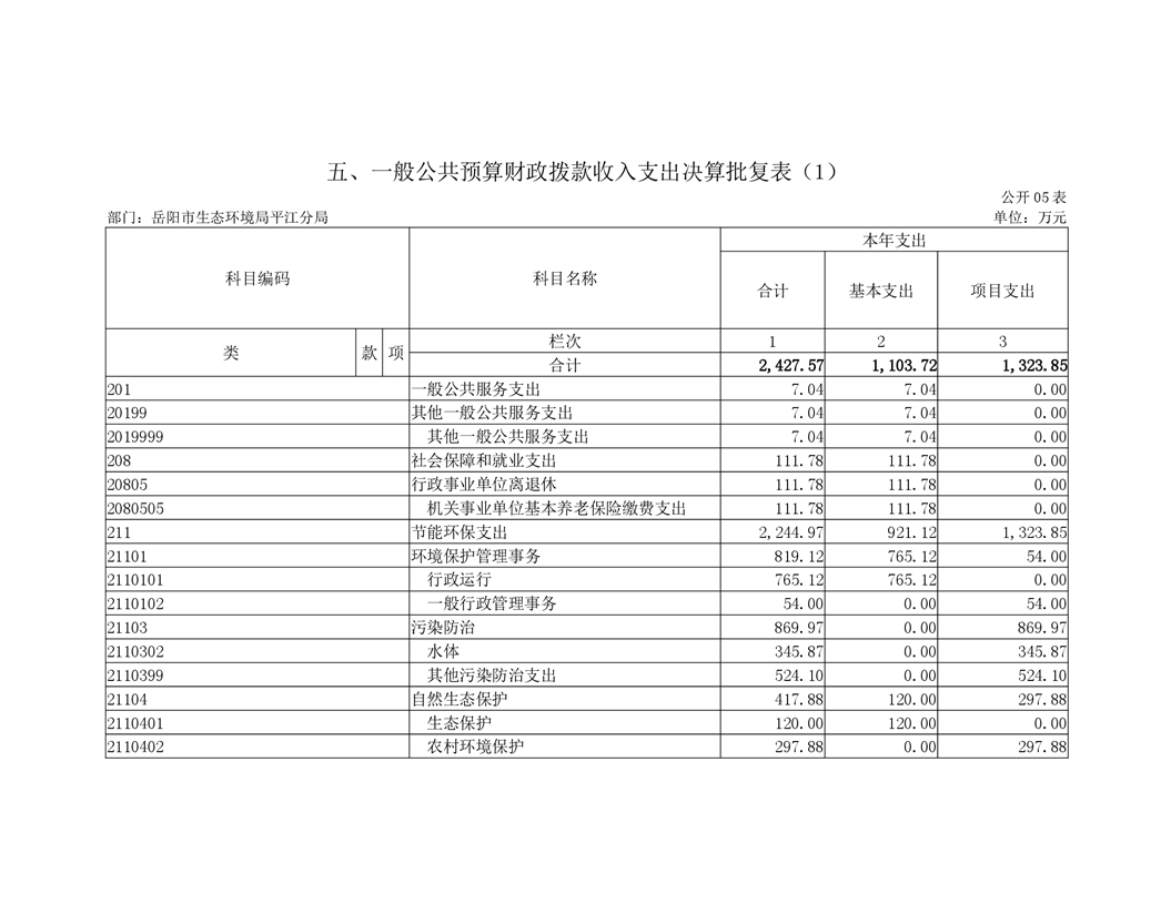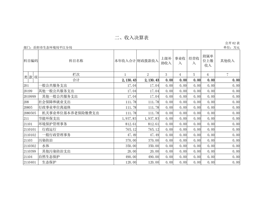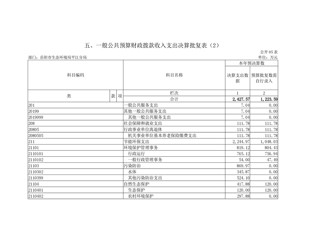 岳阳市生态环境局平江分局2019年度部门决算