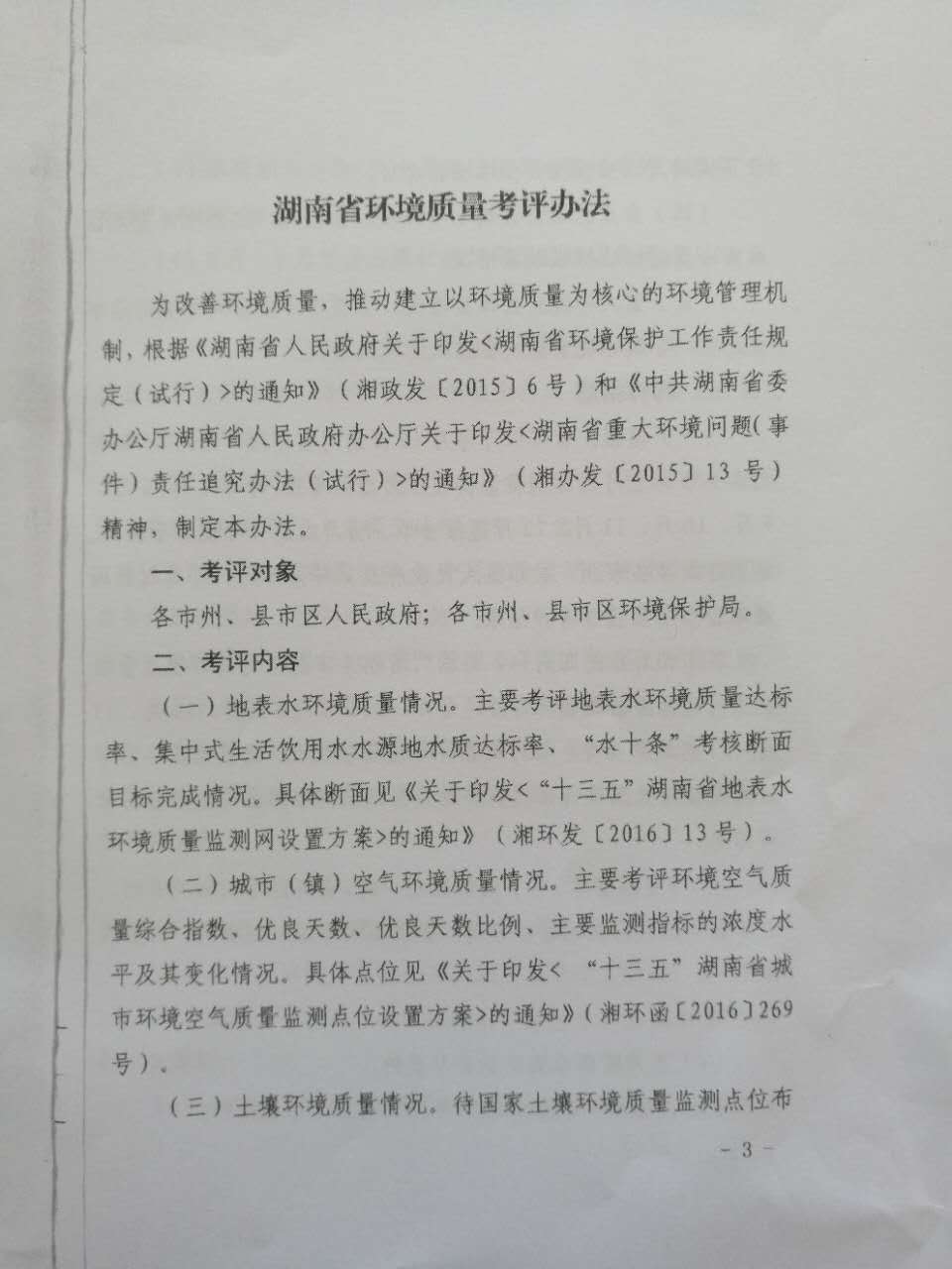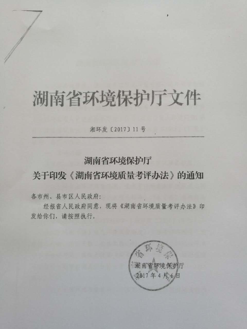 湘环发〔2017〕11号湖南省环境保护厅关于印发《湖南省环境质量考评办法》的通知