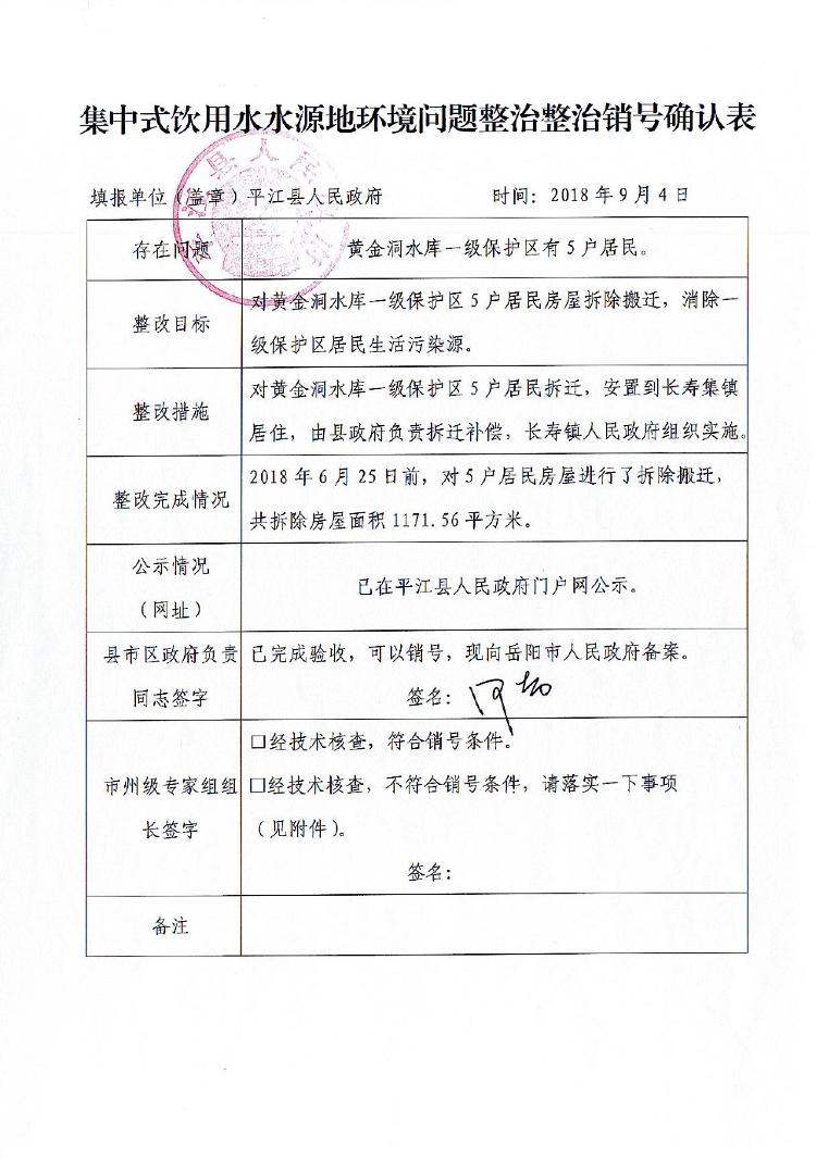 集中式饮用水水源地环境问题整治(黄金洞水库一级保护区)