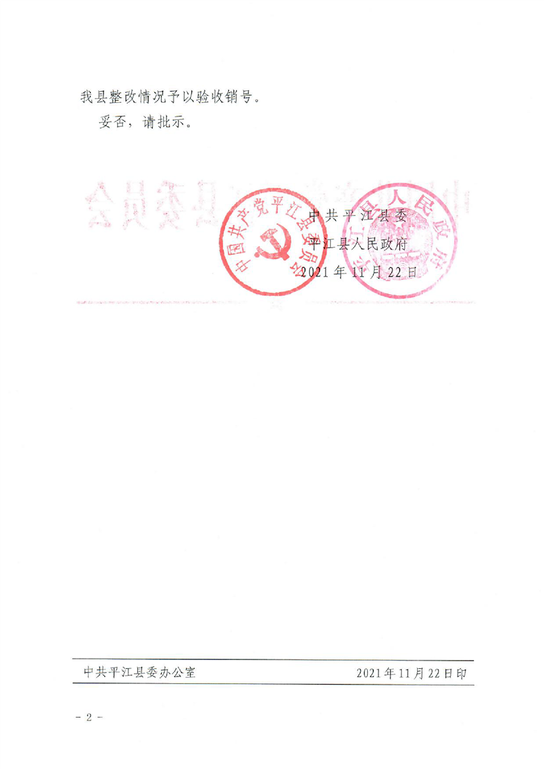 关于2021年第二轮中央生态环境保护督察反馈问题整改验收销号的请示