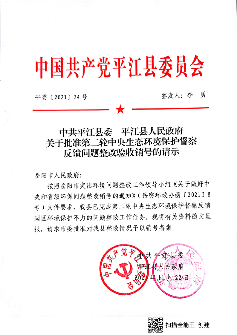 关于批准第二轮中央生态环境保护督察反馈问题整改验收销号的请示
