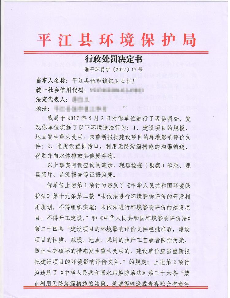 红卫石材处罚决定书