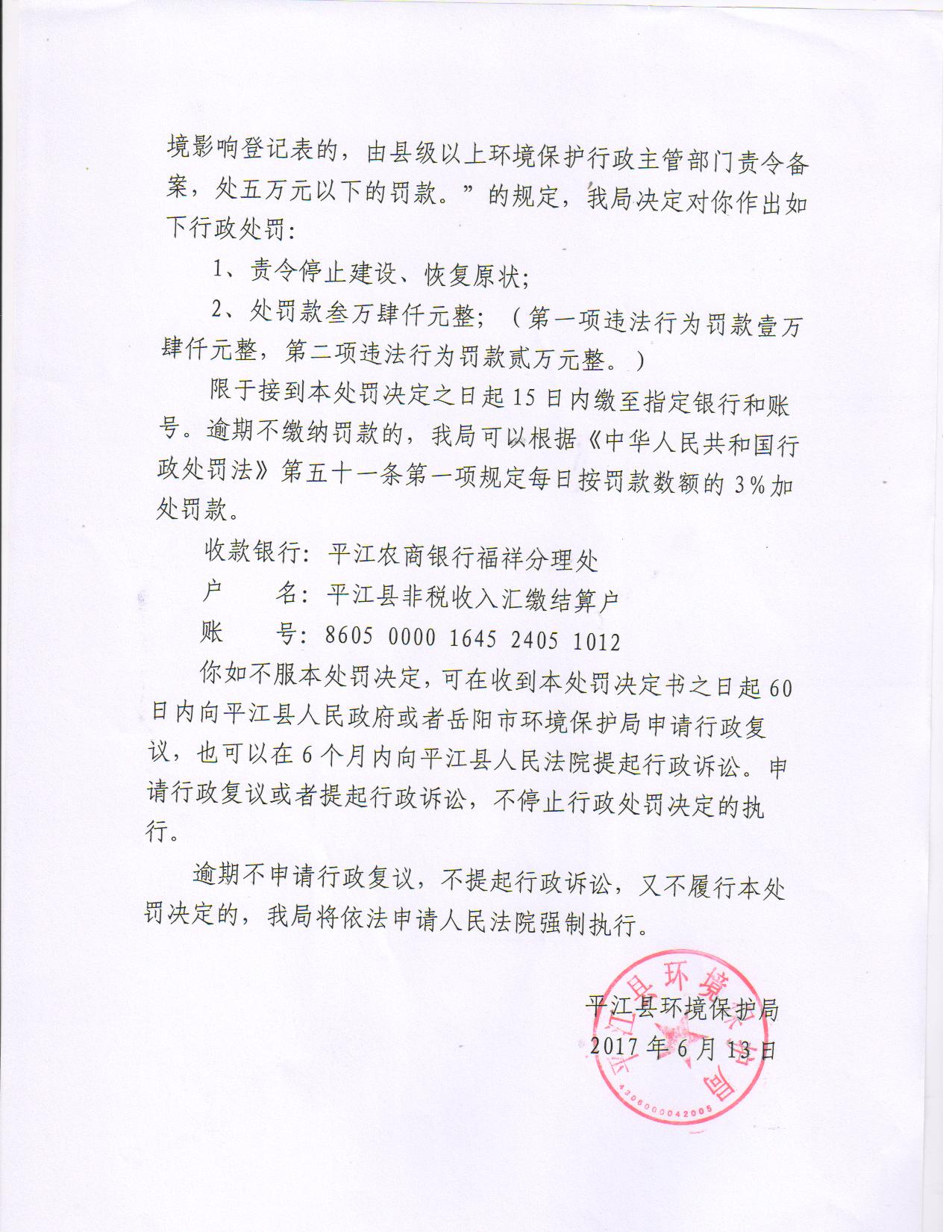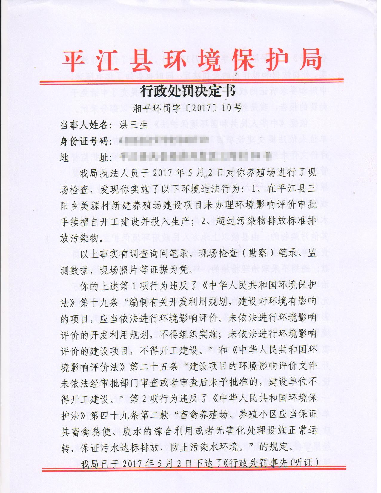 洪三生处罚决定书