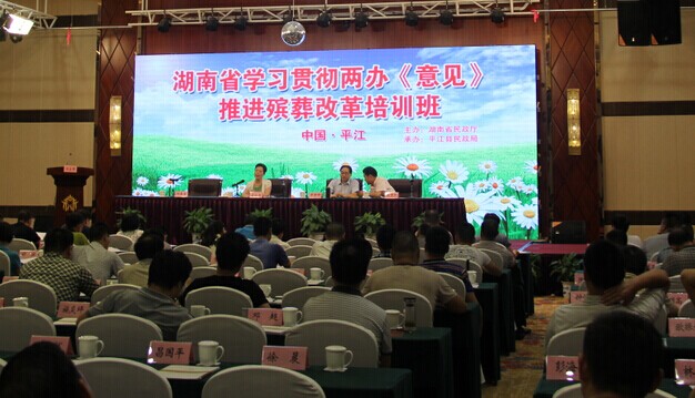 县长谢春生首先致辞,他代表百万平江老区人民热情欢迎参加此次培训班的各级领导和来宾。县民政局局长方定安就我县近几年来殡葬改革中的创新举措和成绩作典型经验介绍,赢得了现场的热烈掌声。长沙市殡葬管理处、衡阳市民政局、永州市民政局也分别作了经验介绍。