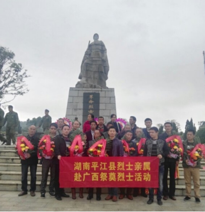 边疆埋忠骨,千里祭英魂。清明将至,3月21日至25日,平江县民政局组织35名烈士亲属,赴广西祭奠对越自卫还击战中牺牲的平江籍烈士。