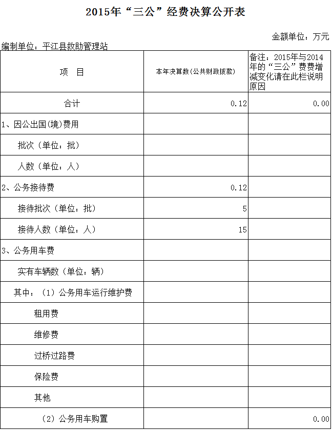 平江县救助管理站2015年度三公经费决算公开