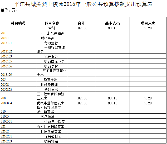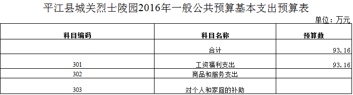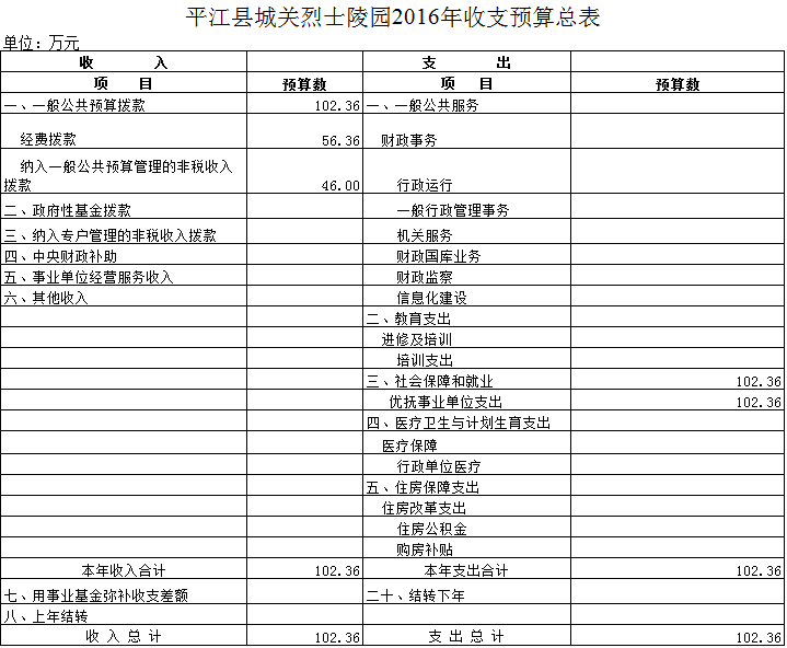 平江县城关陵园2016年部门预算