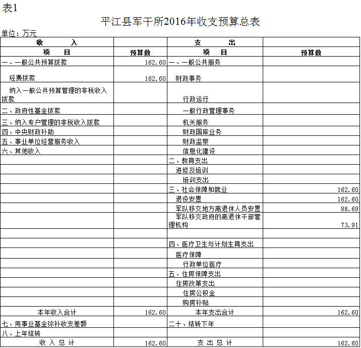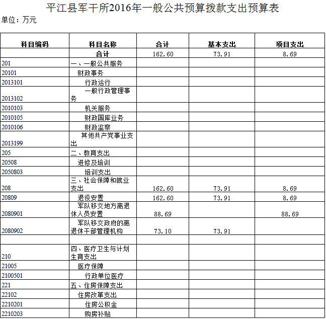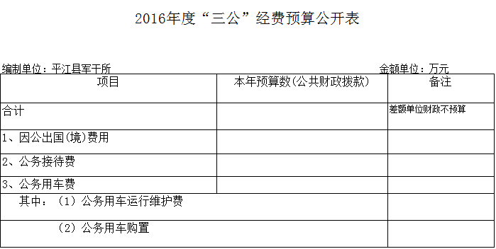 平江县军干所2016年部门预算