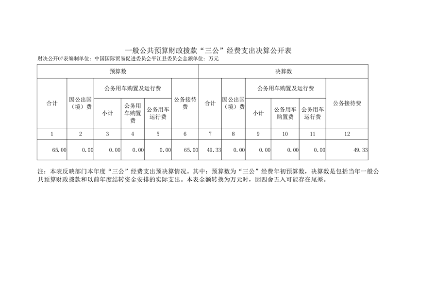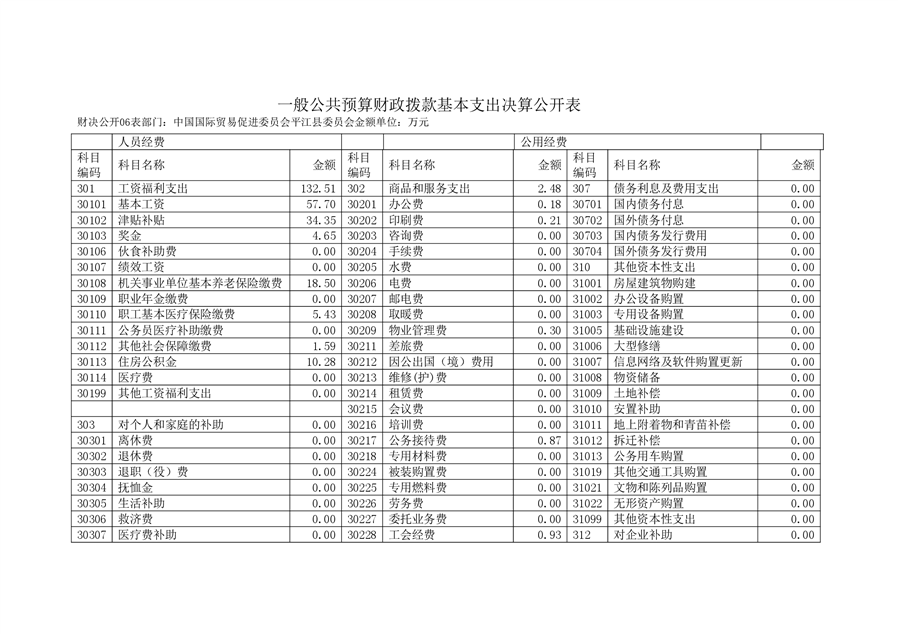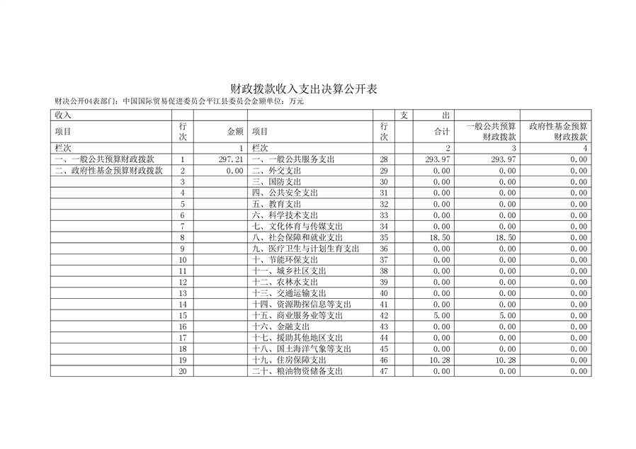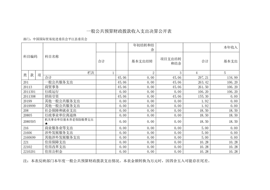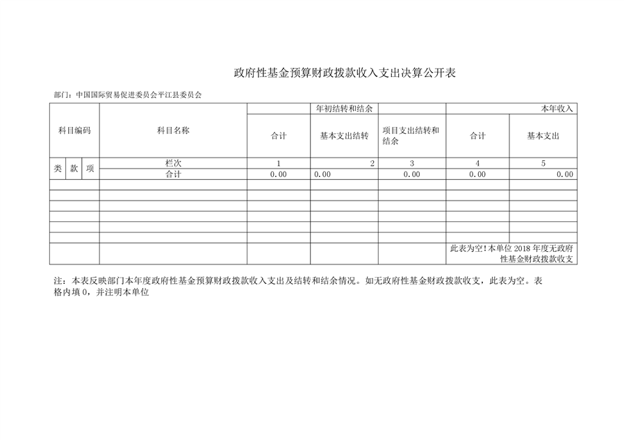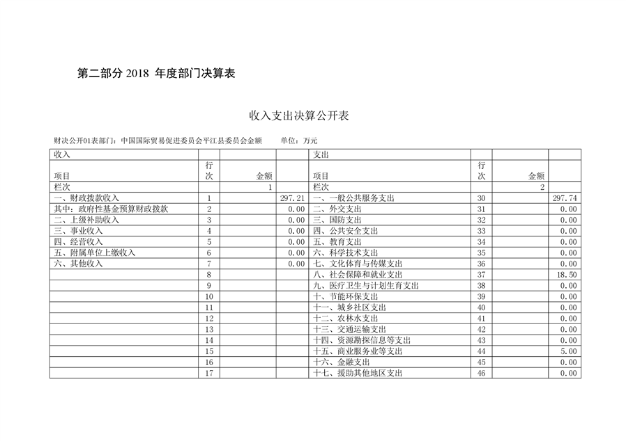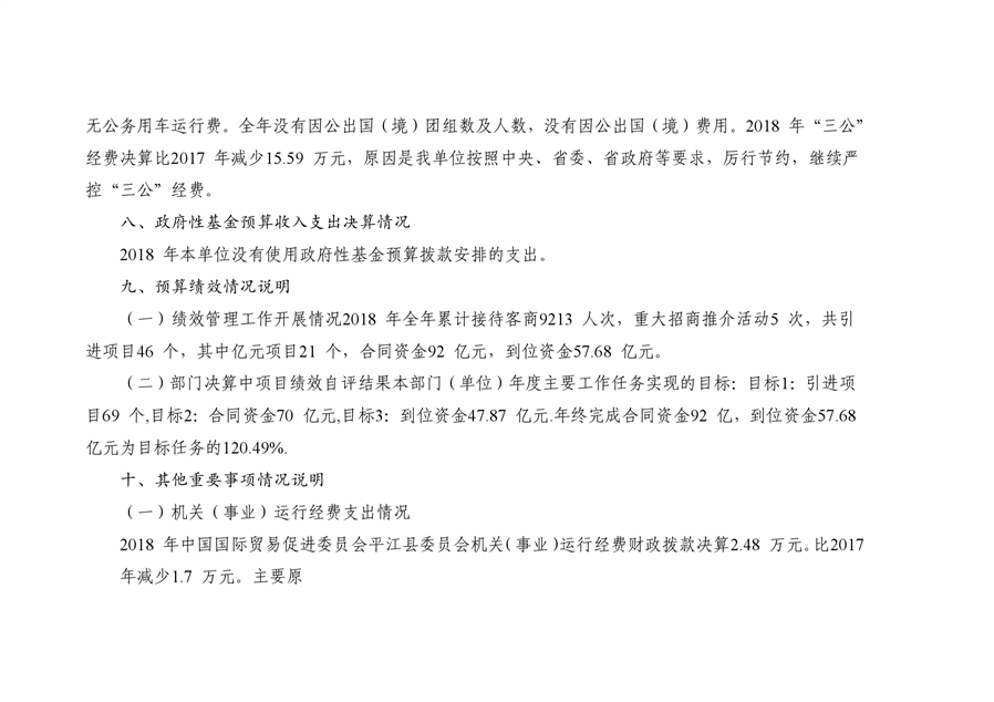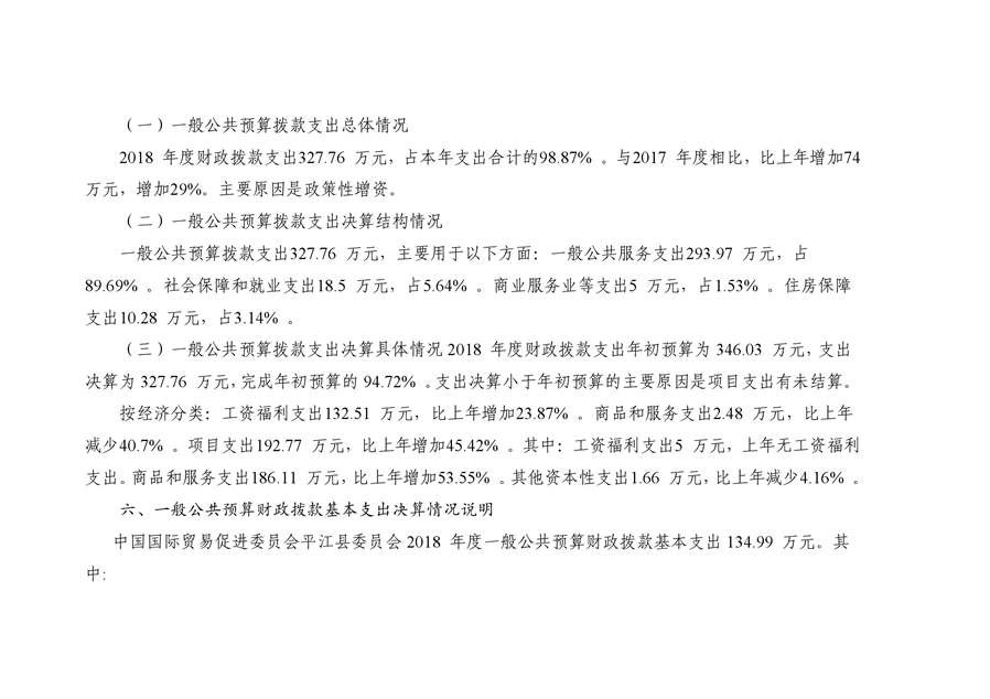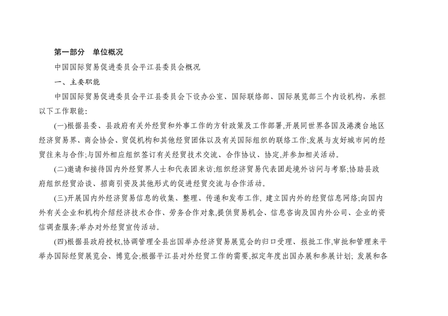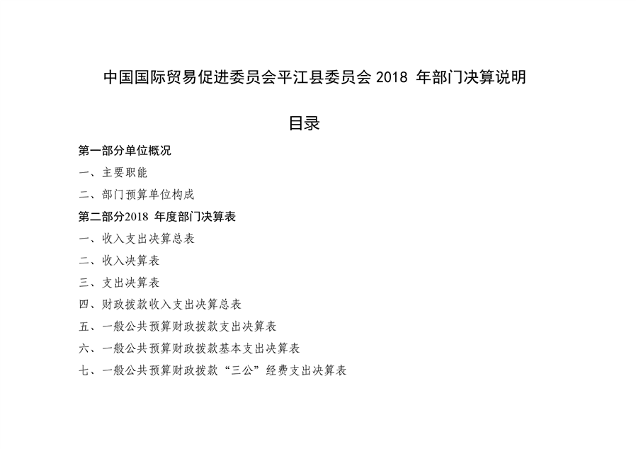 中国国际贸易促进委员会平江县委员会2018年部门决算编报说明