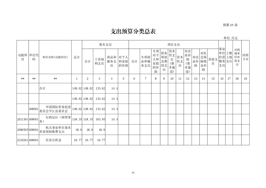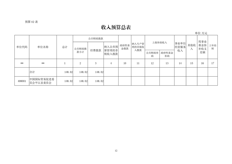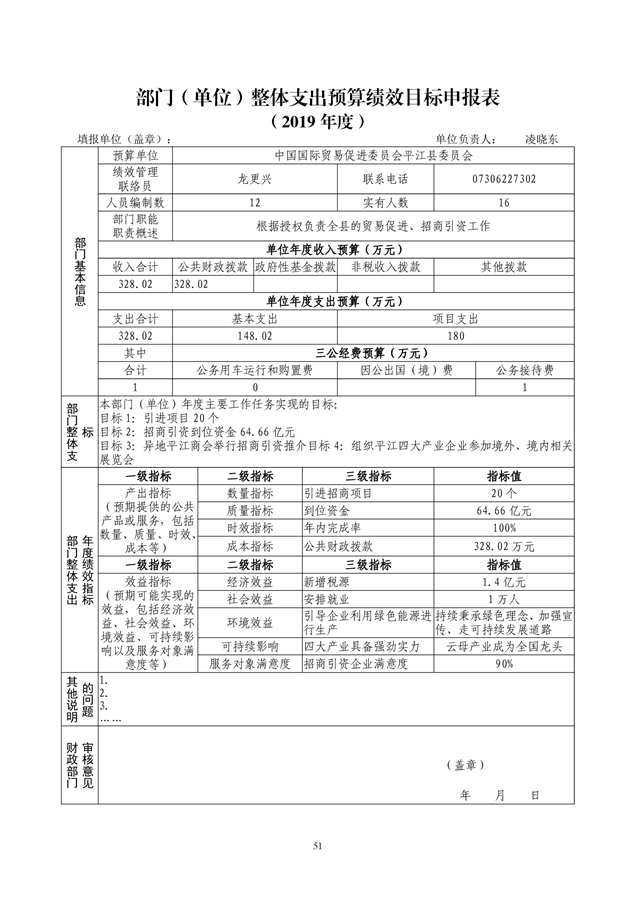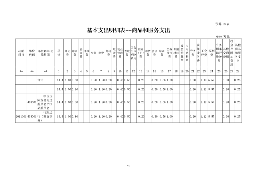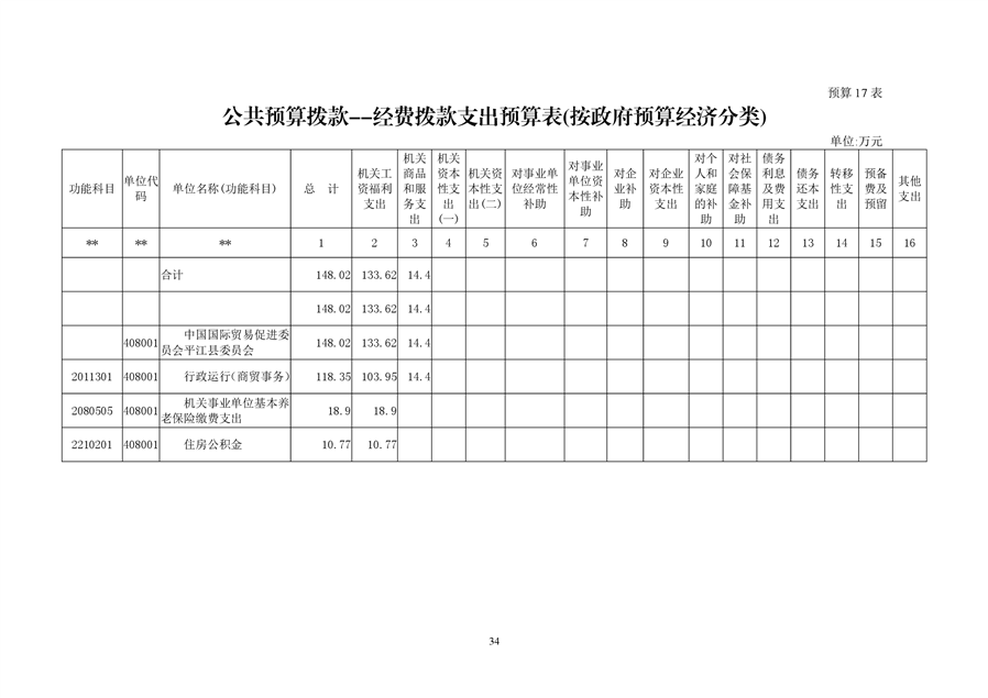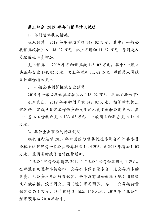 中国国际贸易促进委员会平江县委员会2019年部门预算
