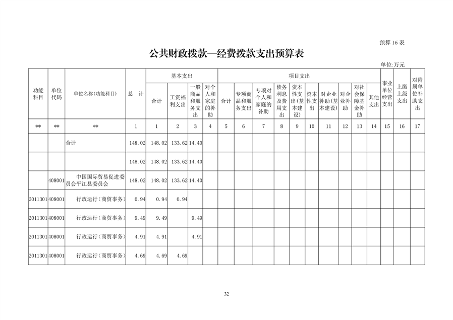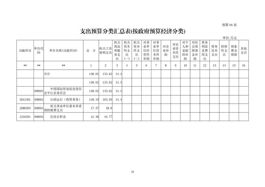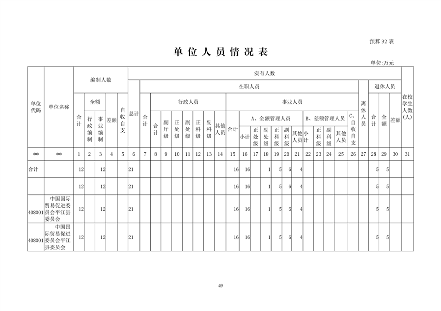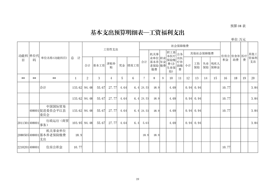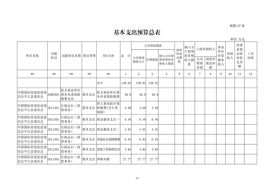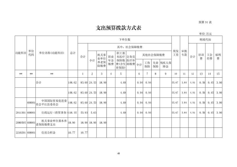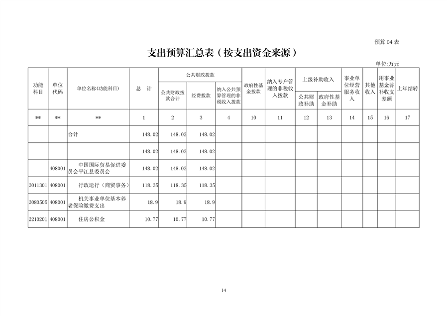 中国国际贸易促进委员会平江县委员会2019年部门预算