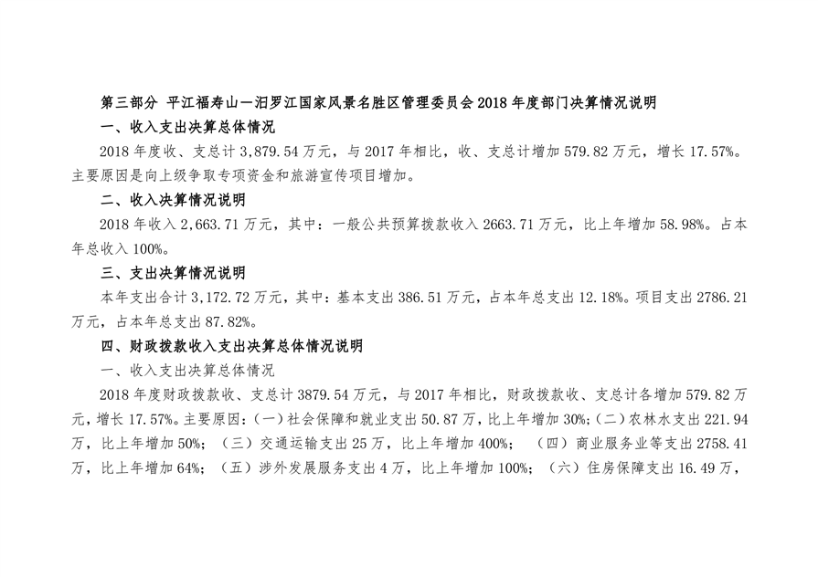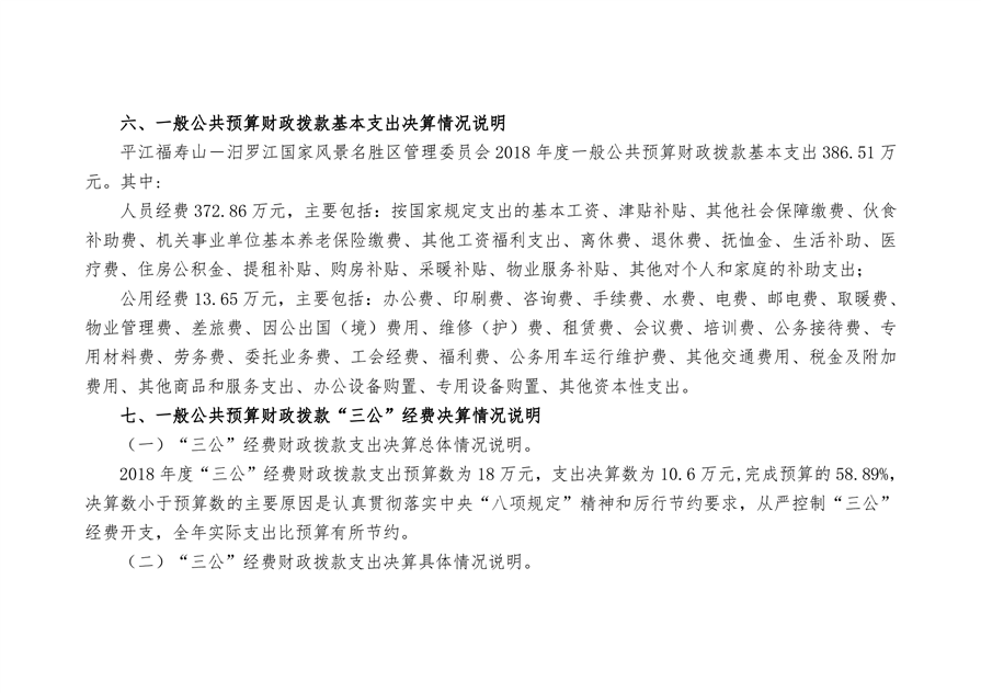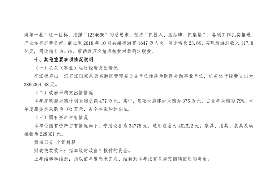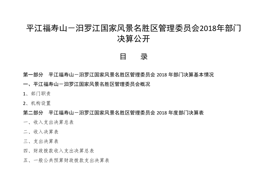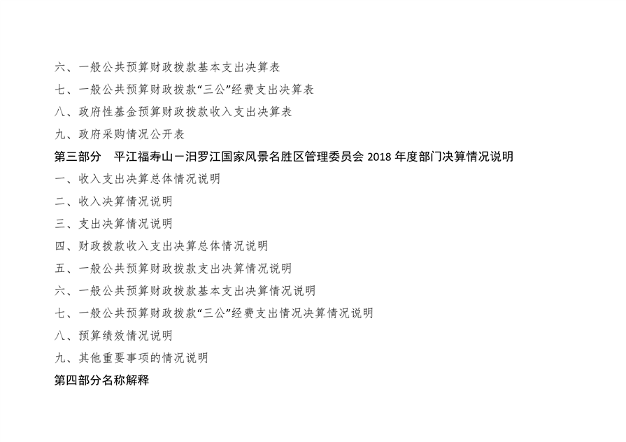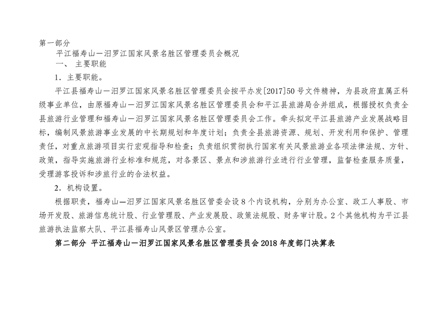平江福寿山-汨罗江国家风景名胜区管理 委员会2018年部门决算说明