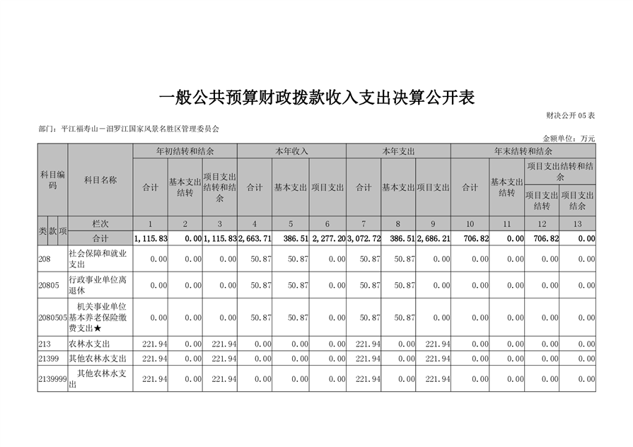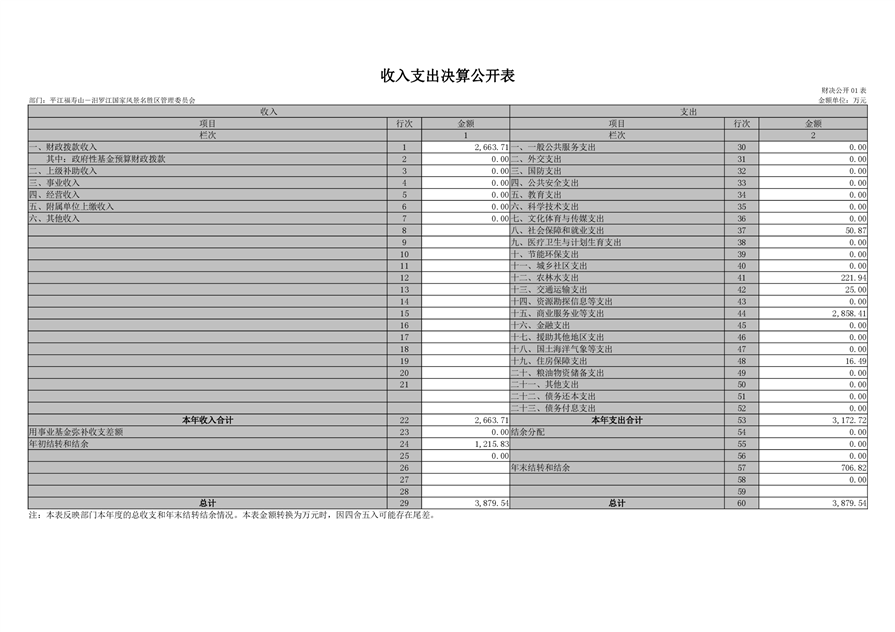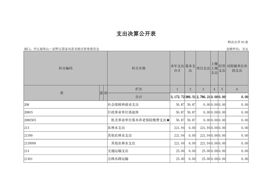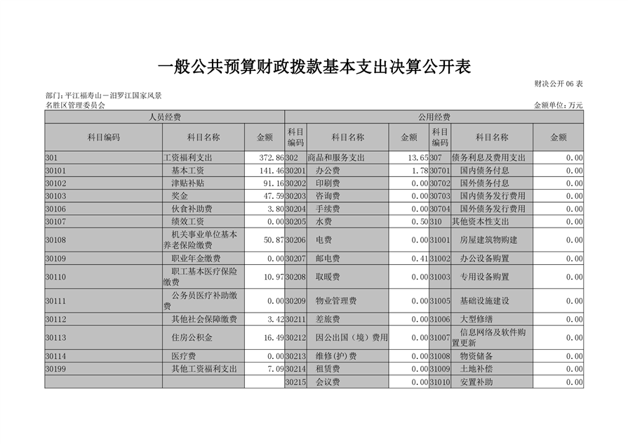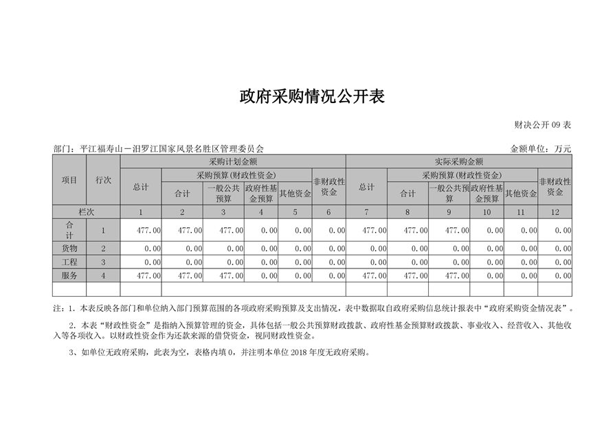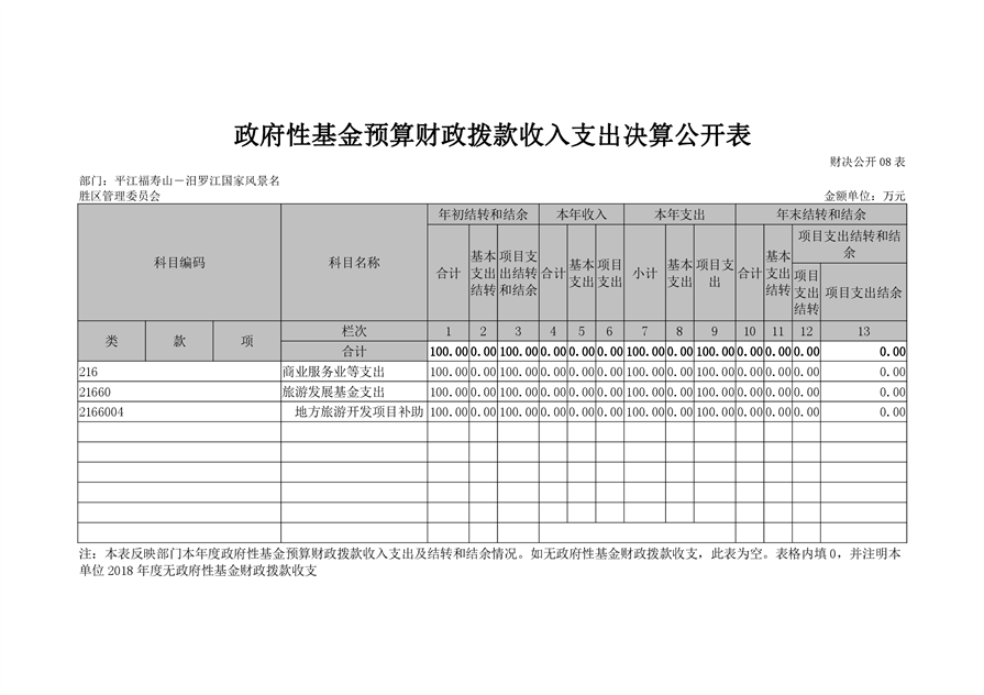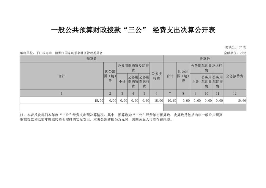 平江福寿山-汨罗江国家风景名胜区管理 委员会2018年部门决算说明