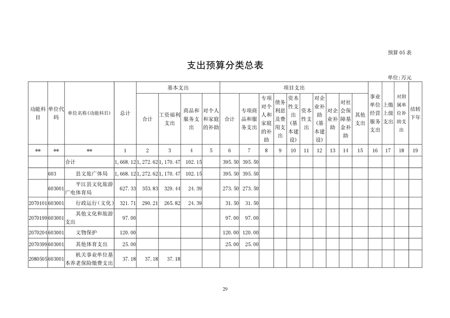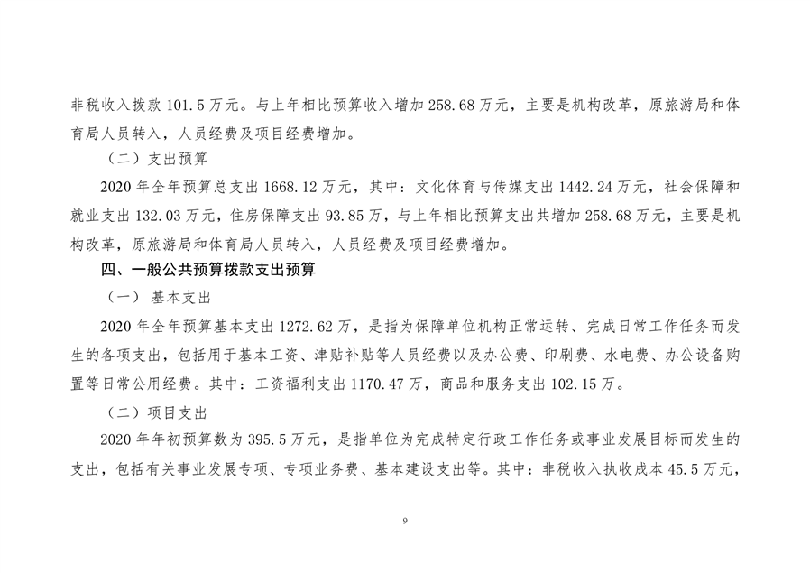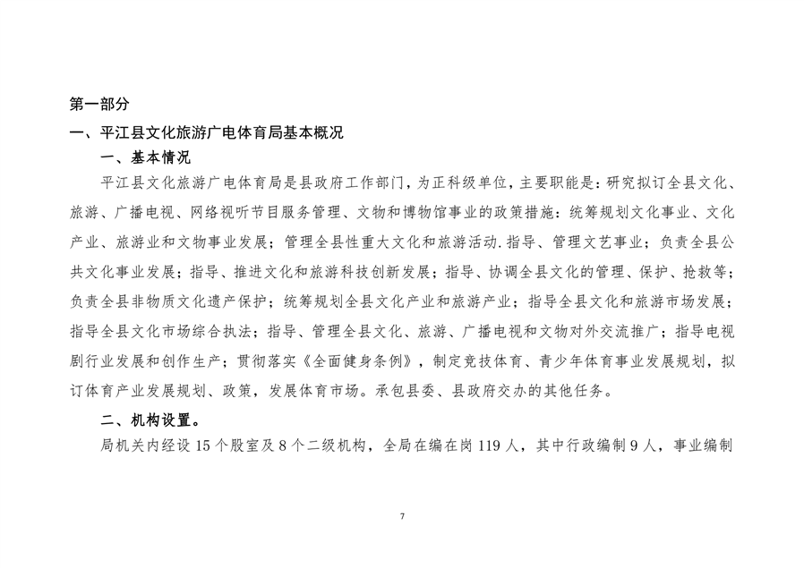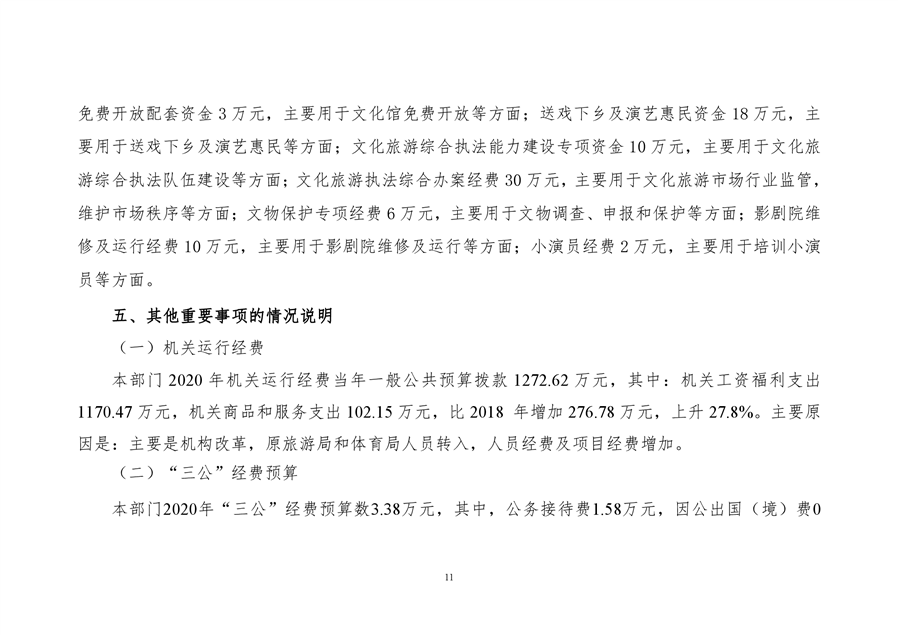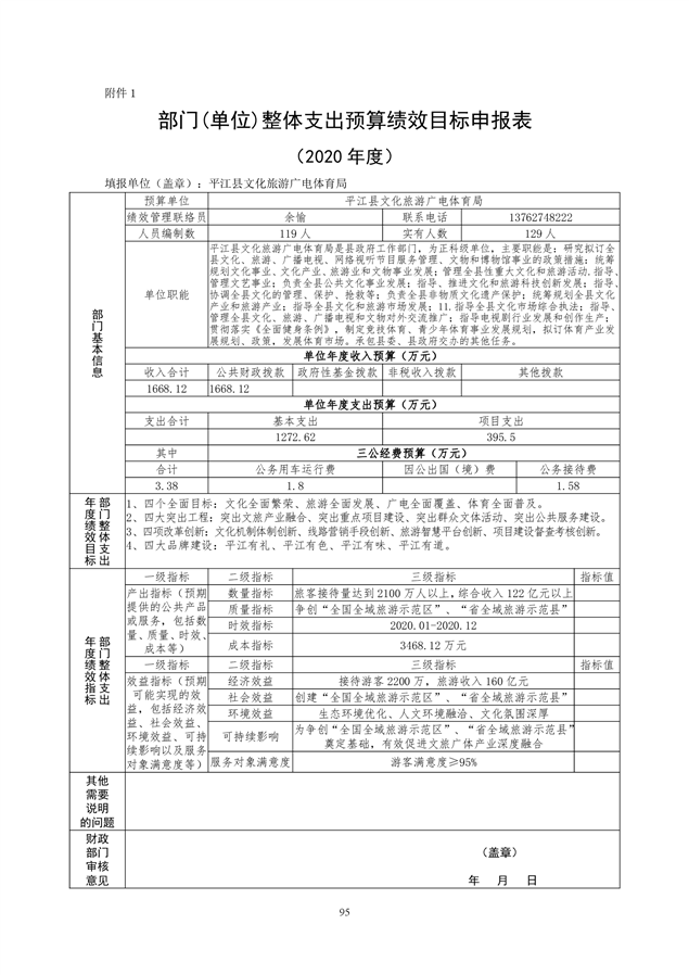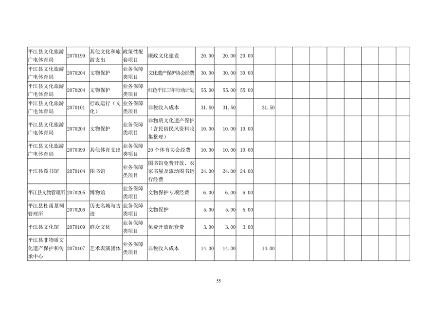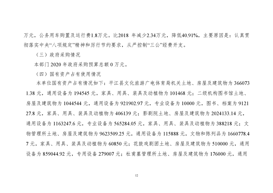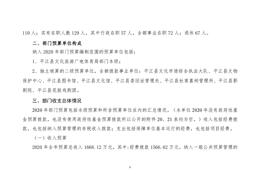 平江县文化旅游广电体育局2020年部门预算编报说明