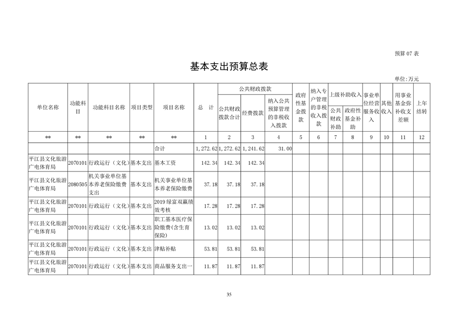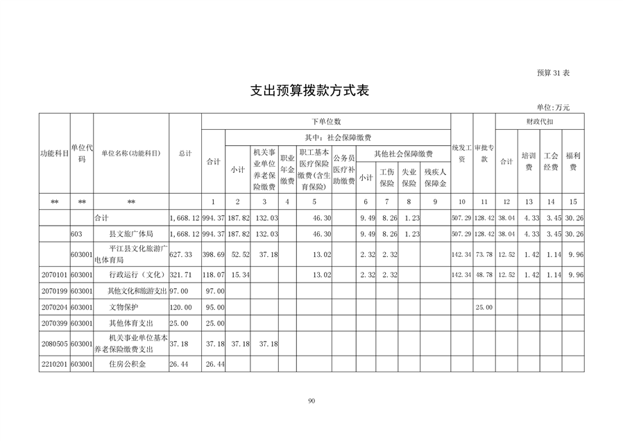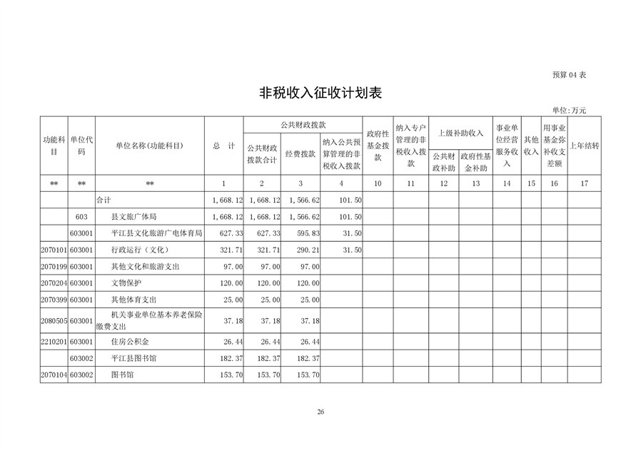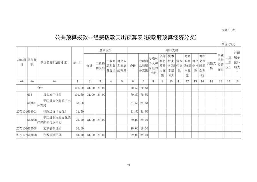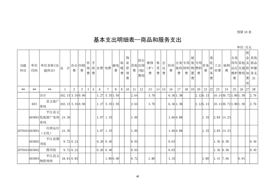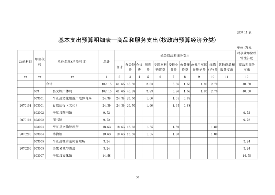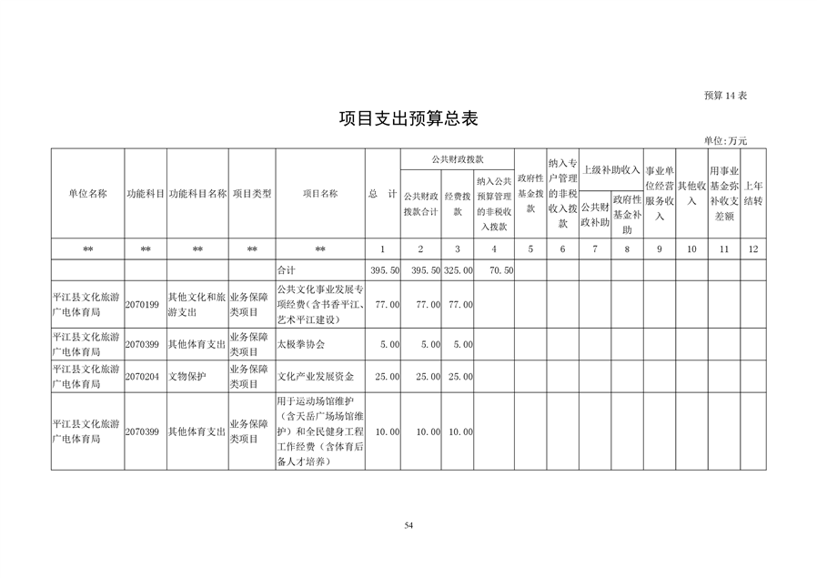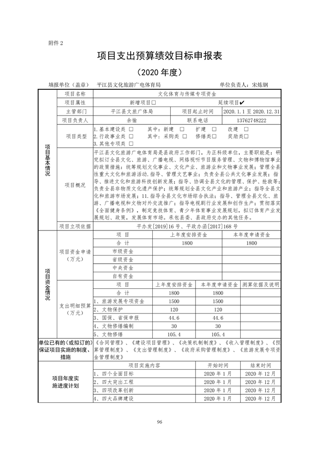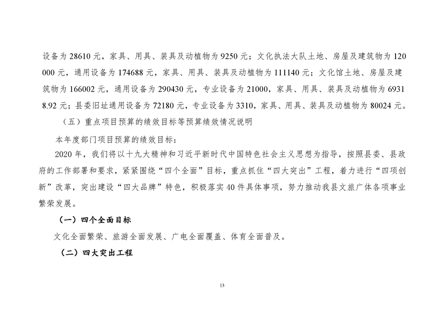 平江县文化旅游广电体育局2020年部门预算编报说明