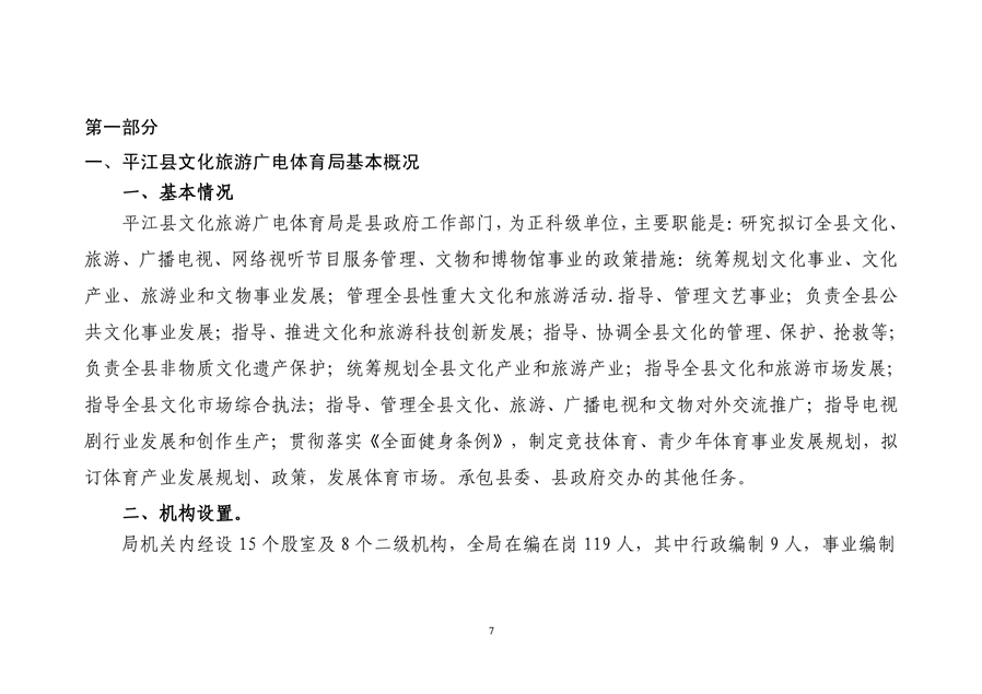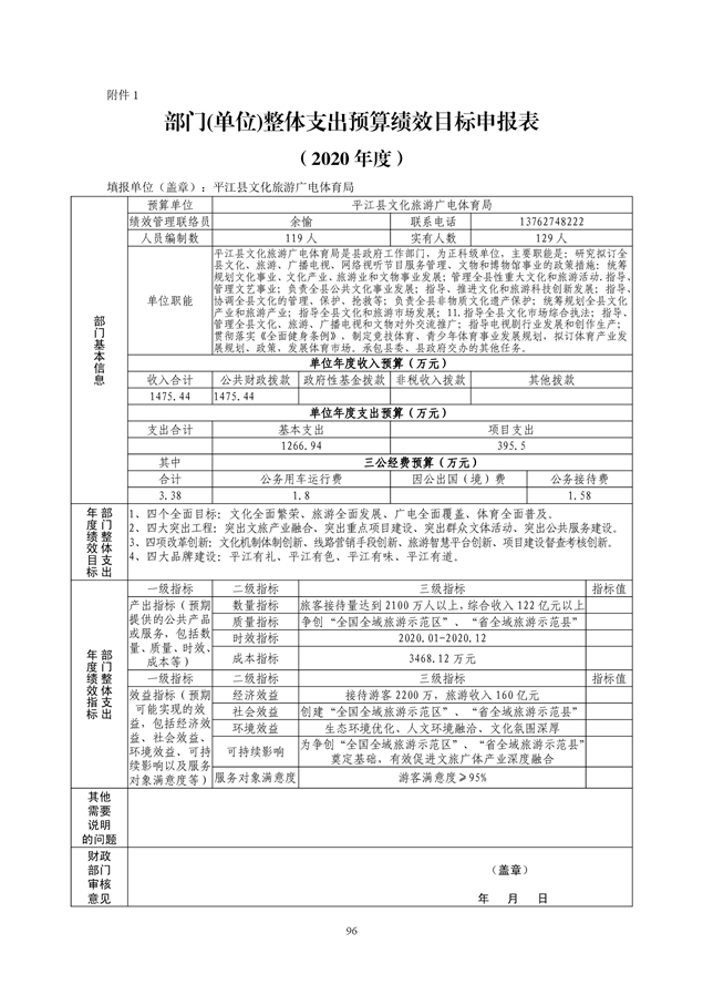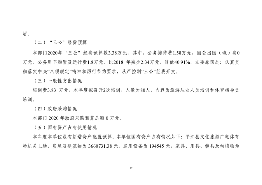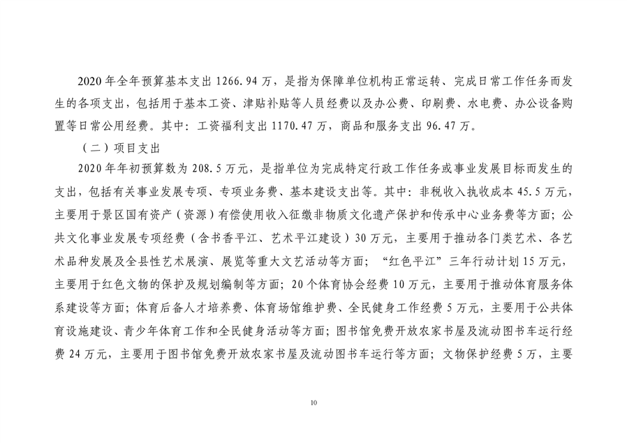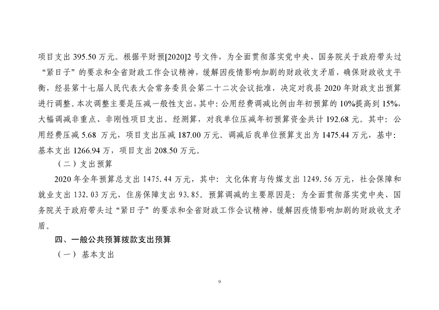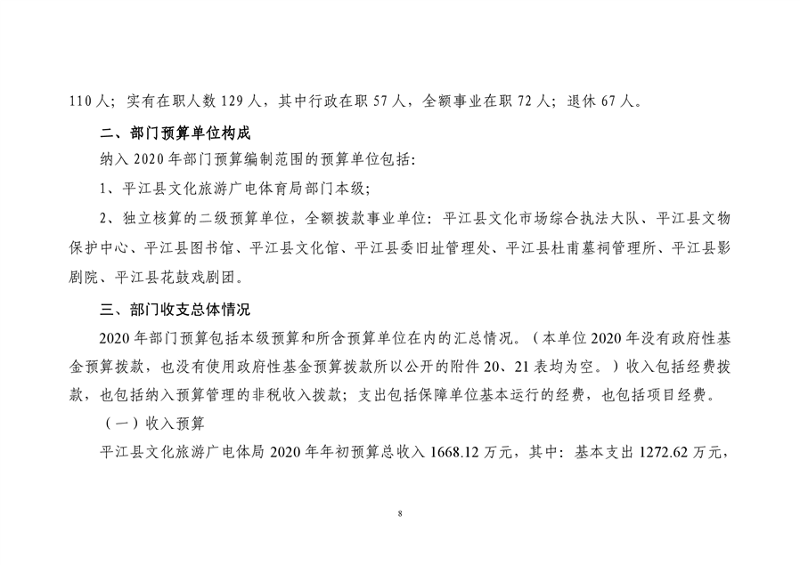 平江县文化旅游广电体育局2020年预算编报说明(预算调整)