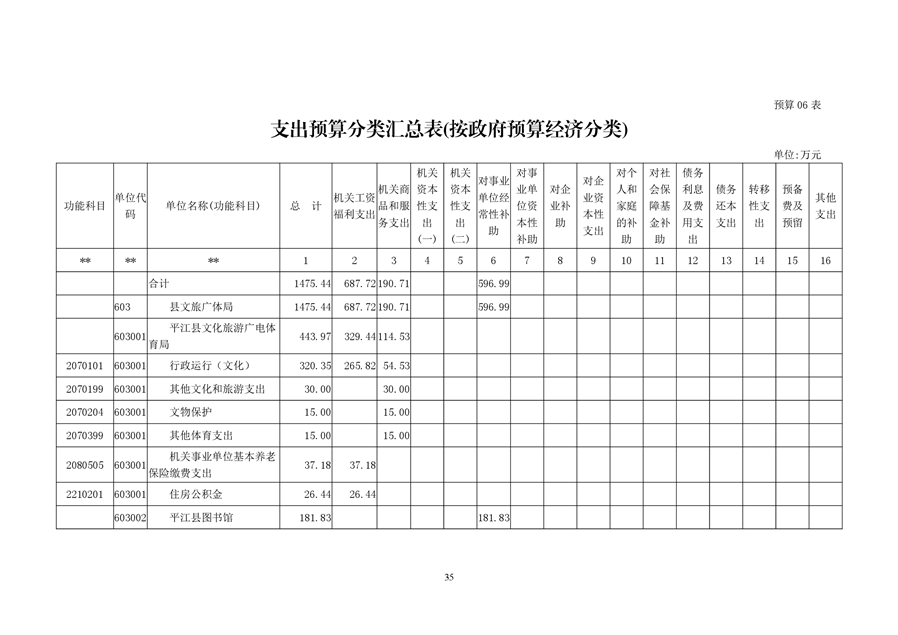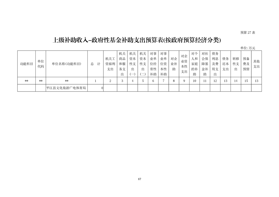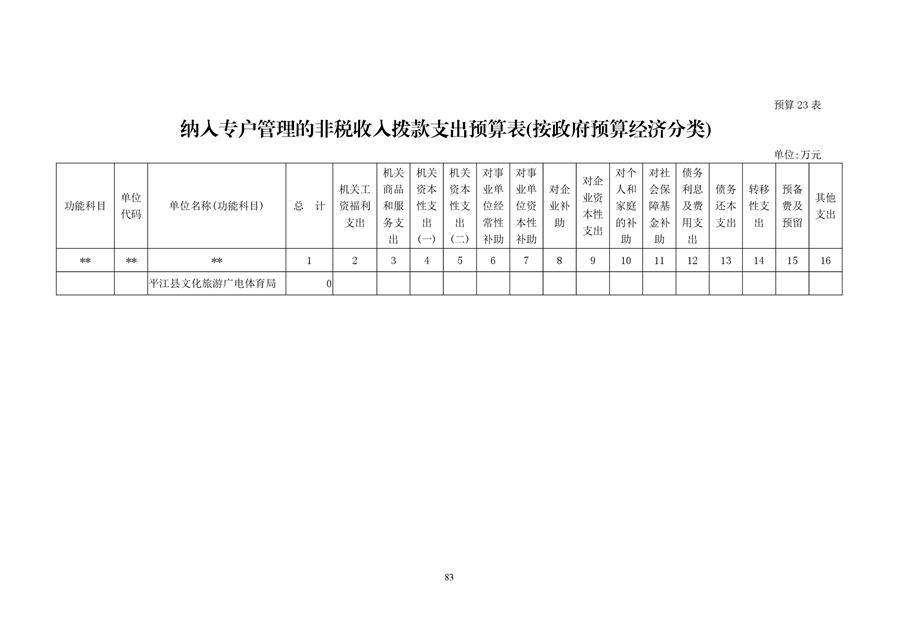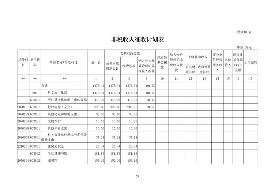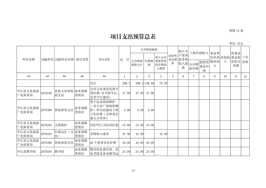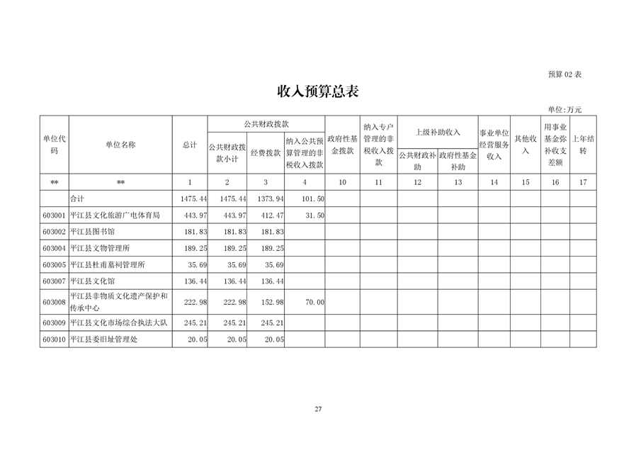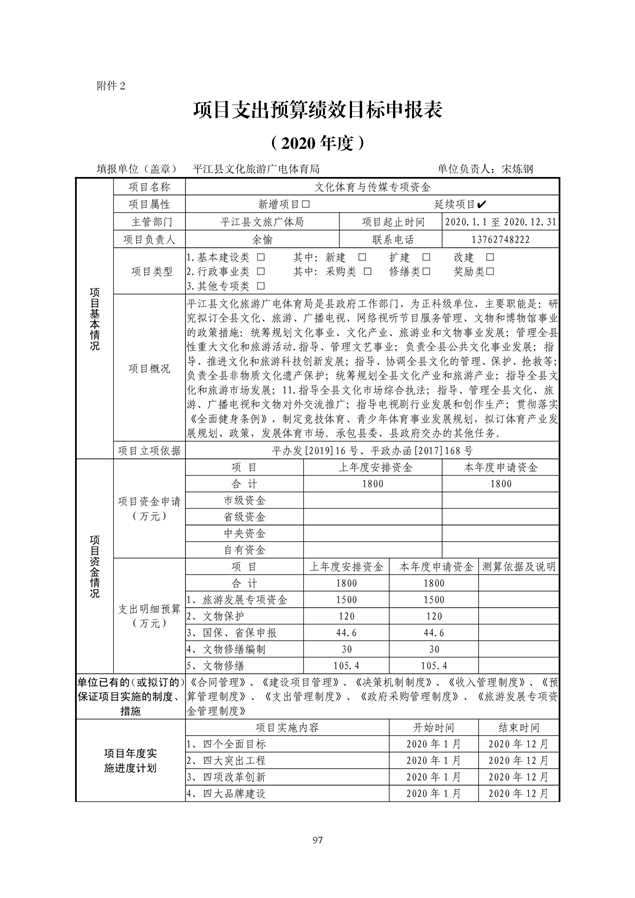 平江县文化旅游广电体育局2020年预算编报说明(预算调整)