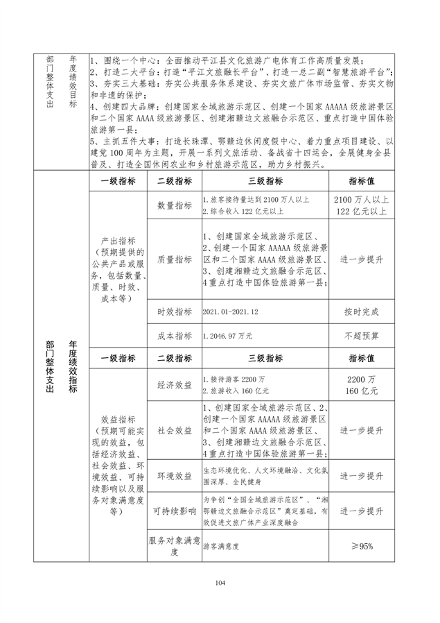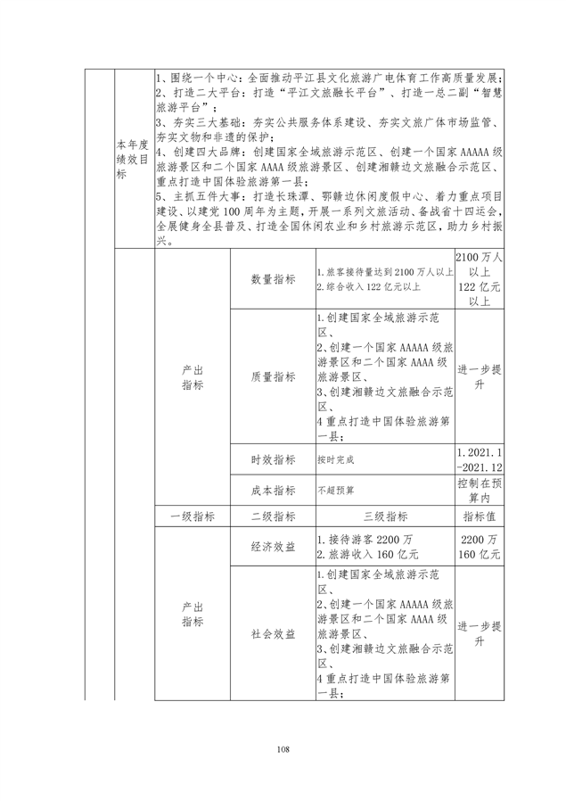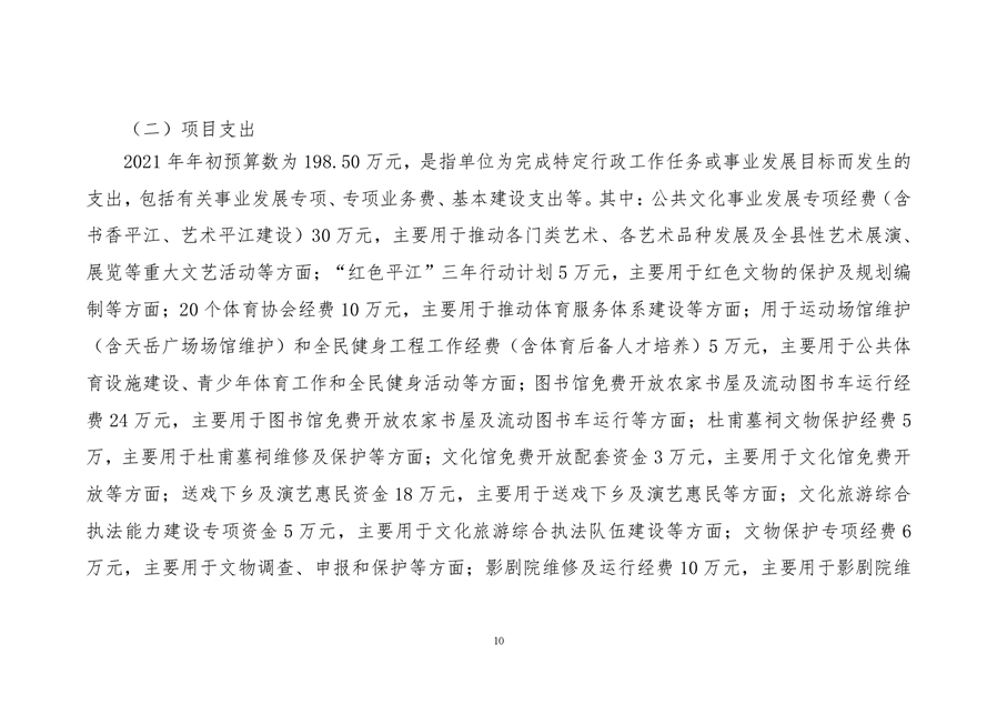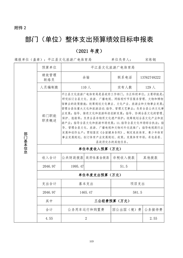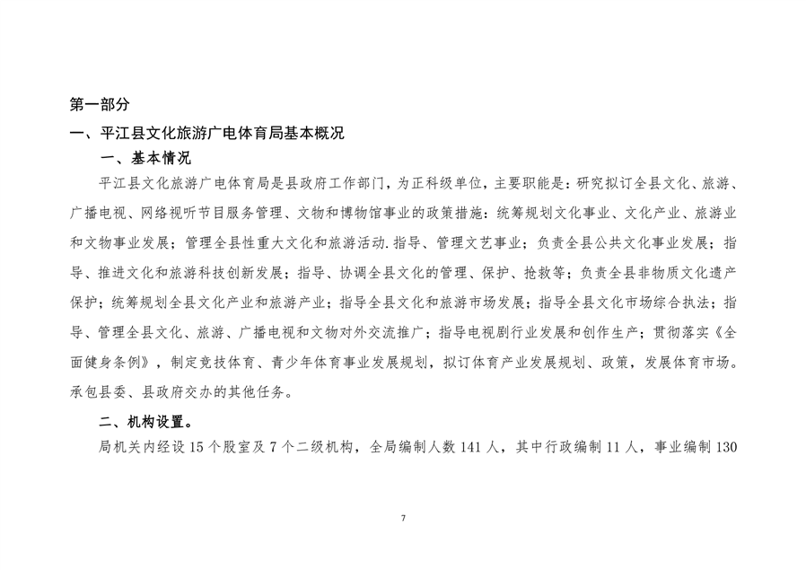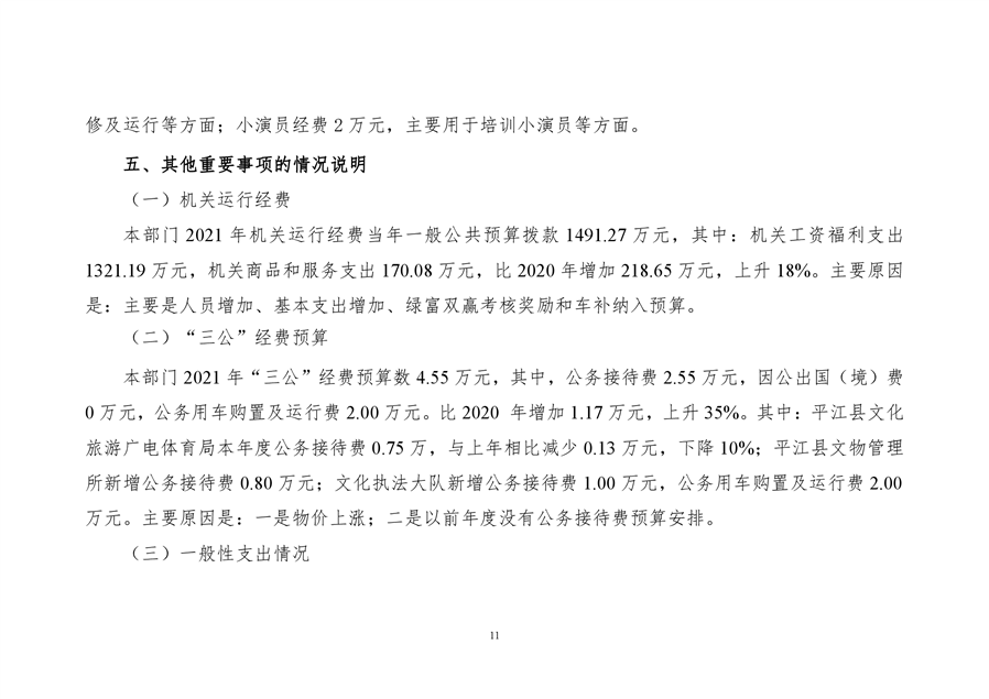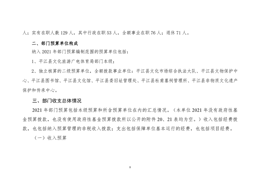 平江县文化旅游广电体育局2021年部门预算编报说明