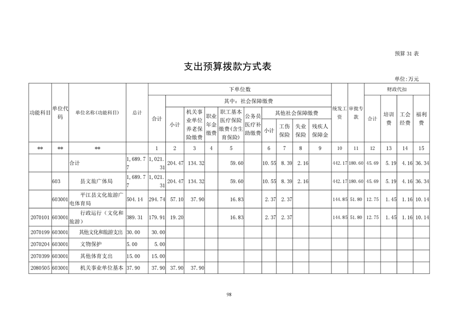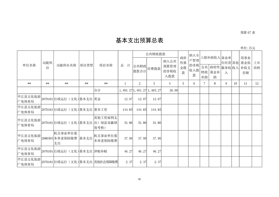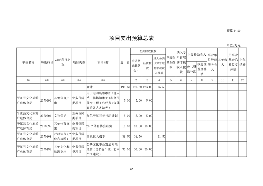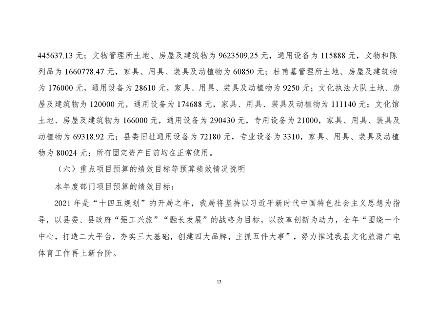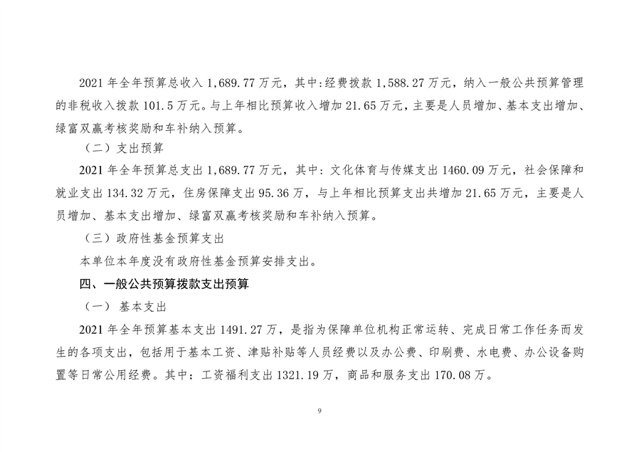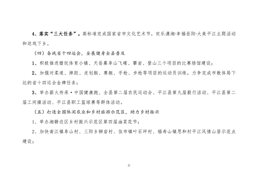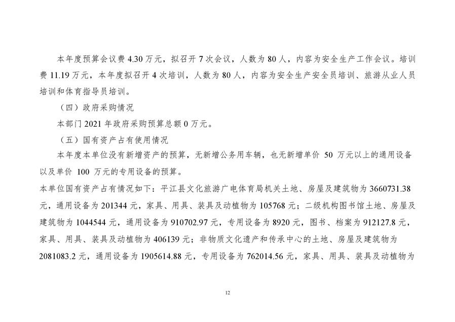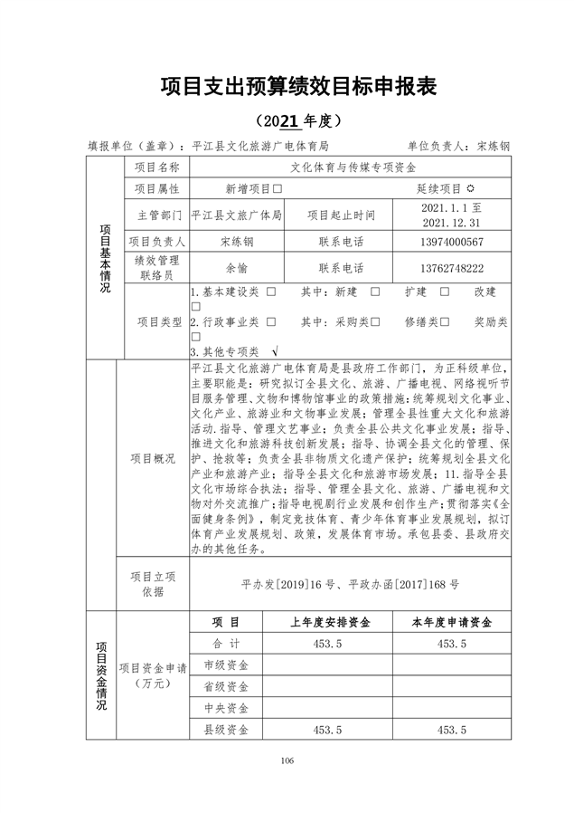 平江县文化旅游广电体育局2021年部门预算编报说明