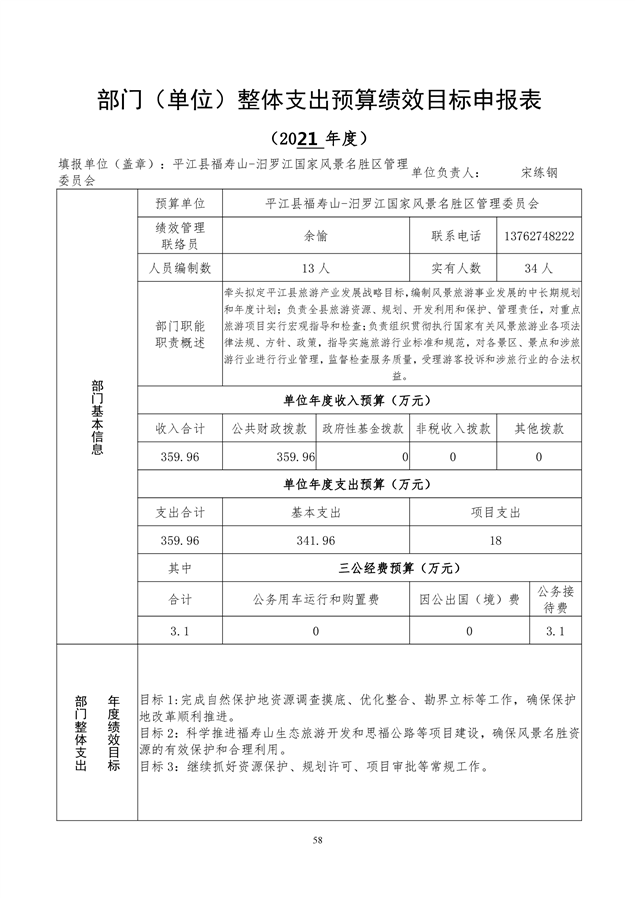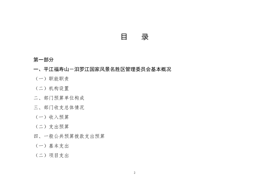 平江福寿山-汨罗江国家风景名胜区管理委员会2021年部门预算编报说明
