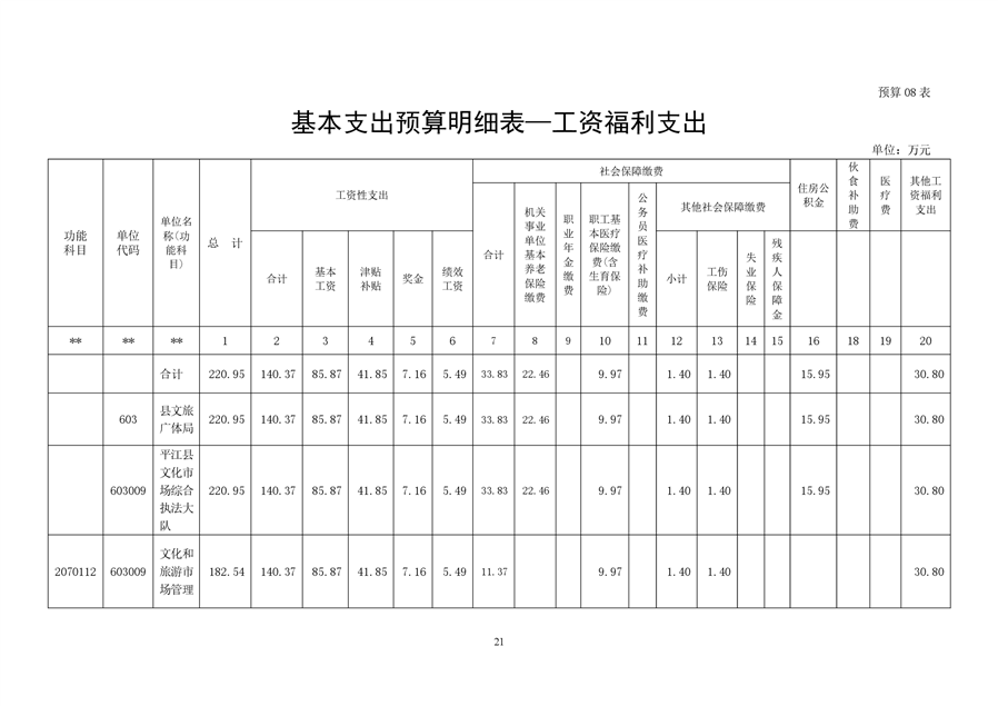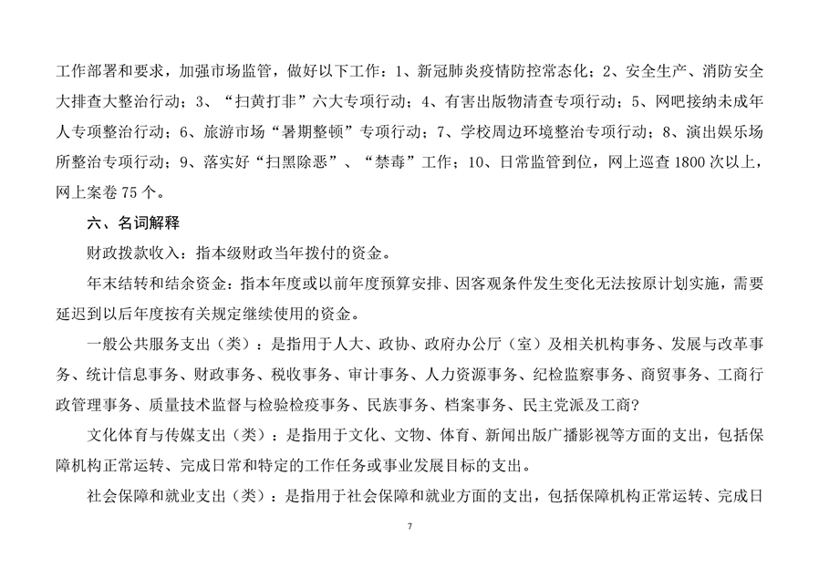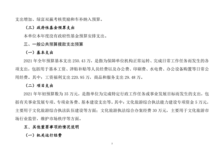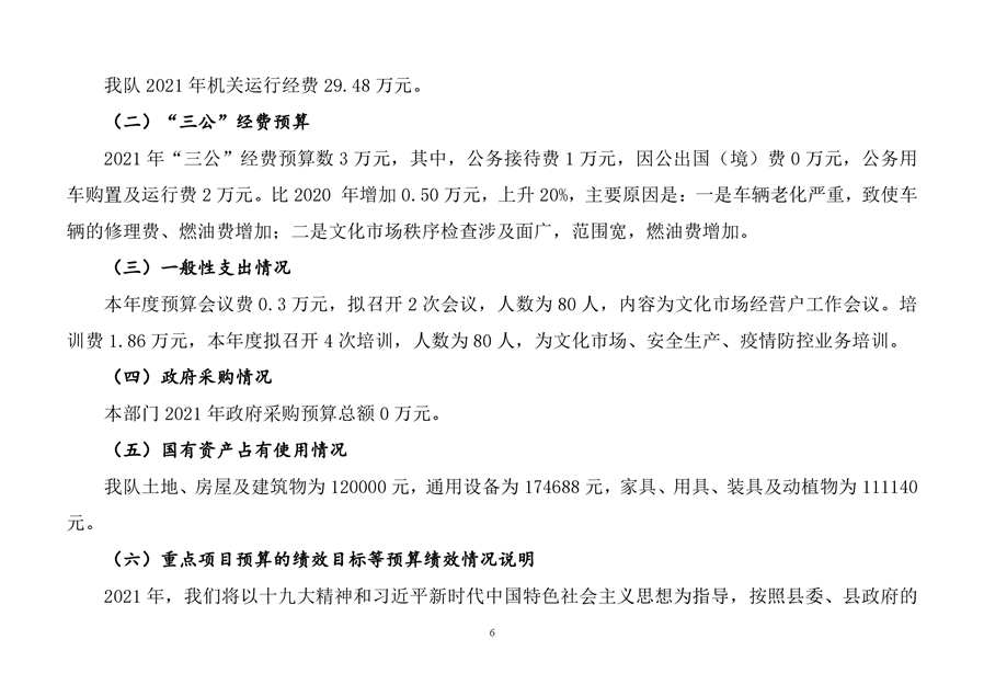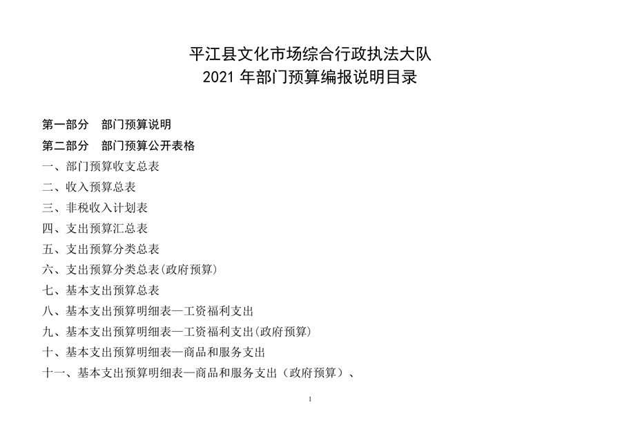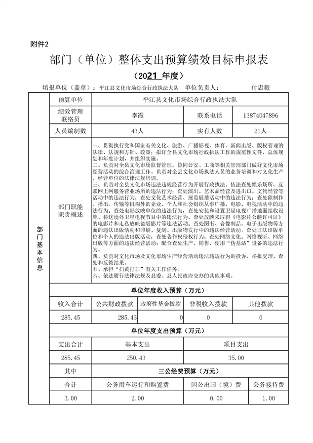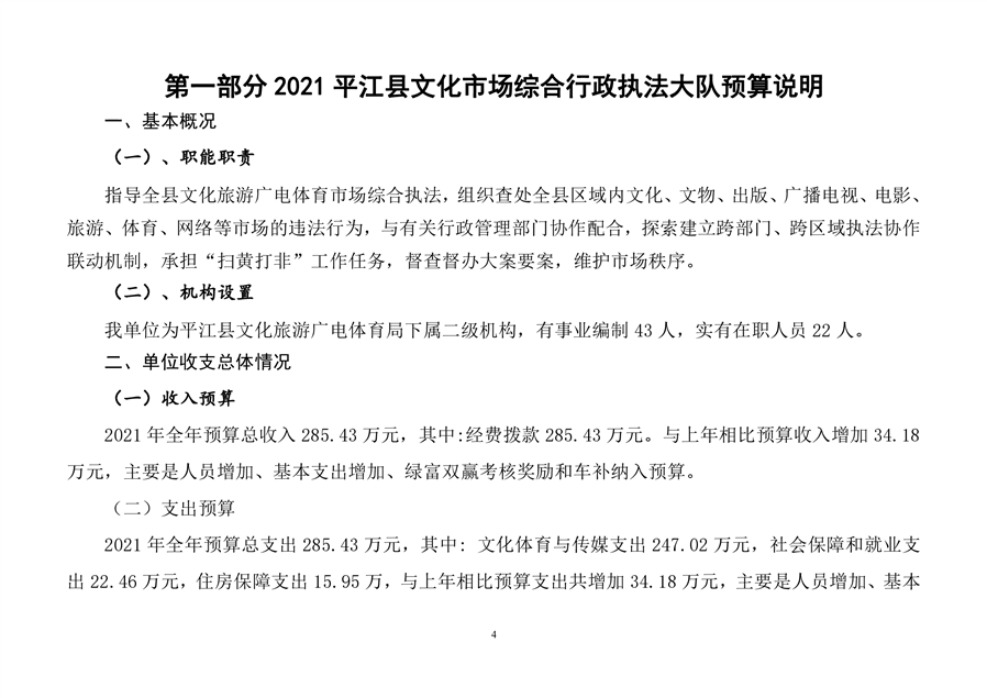 2021年平江县文化市场综合行政执法大队预算编报说明