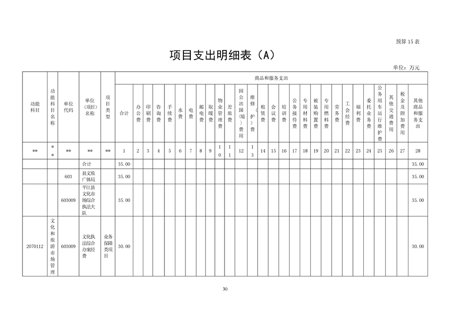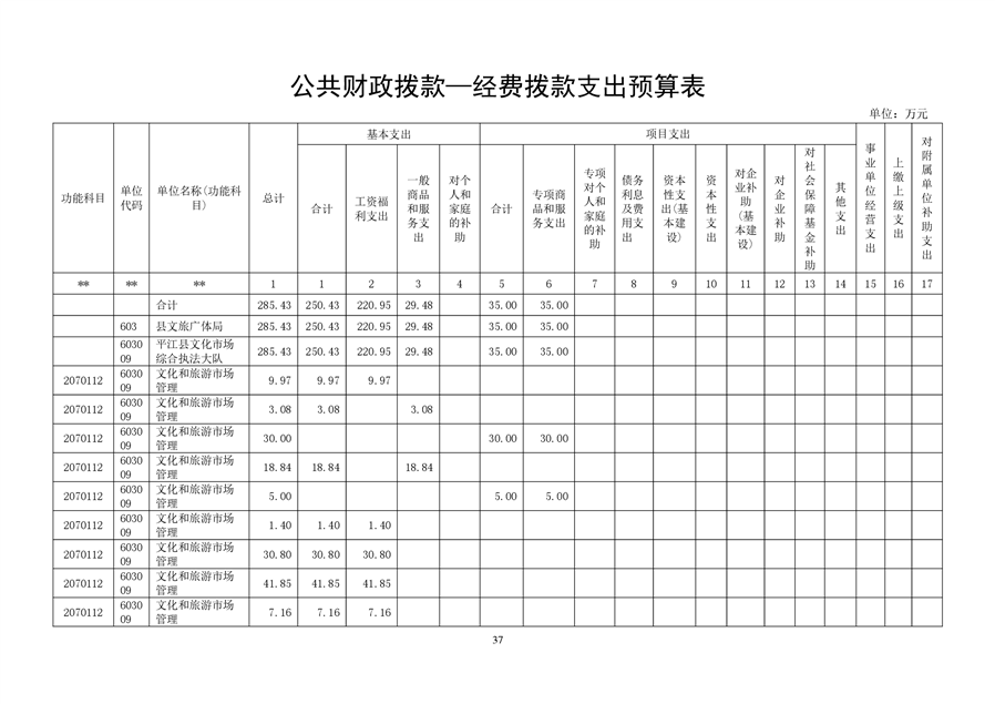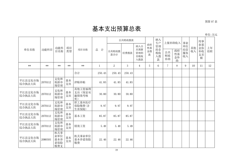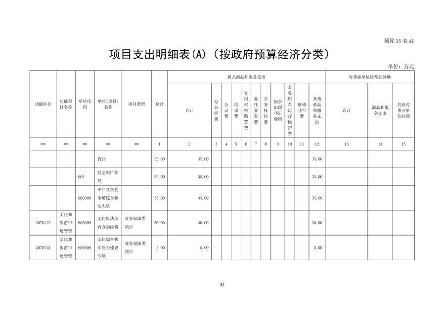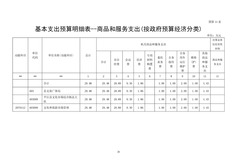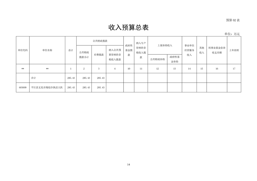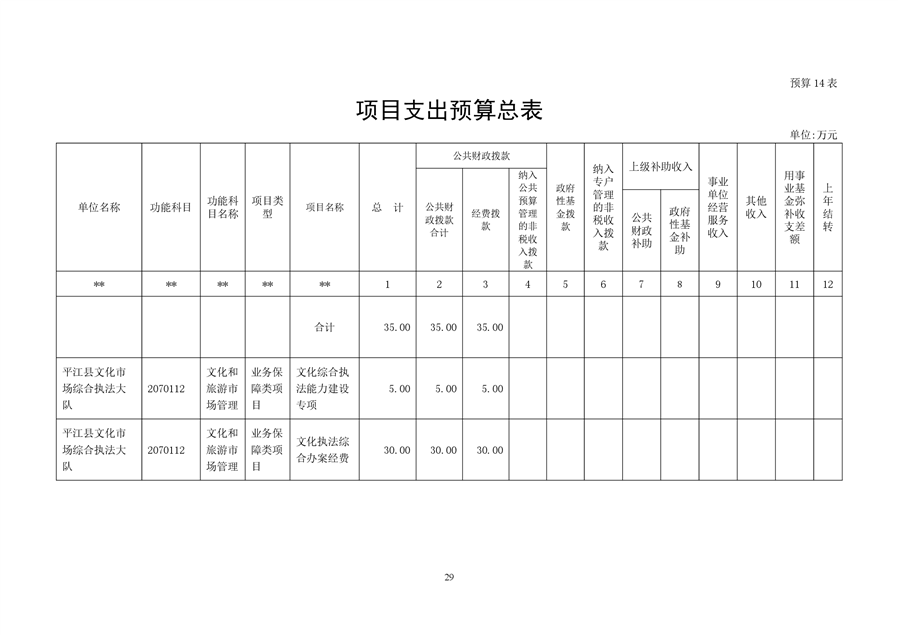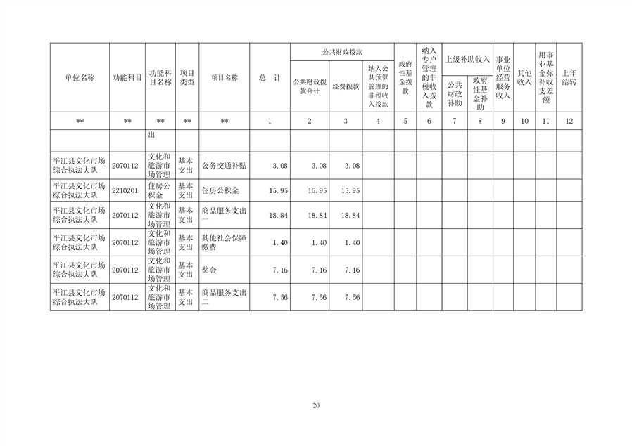2021年平江县文化市场综合行政执法大队预算编报说明
