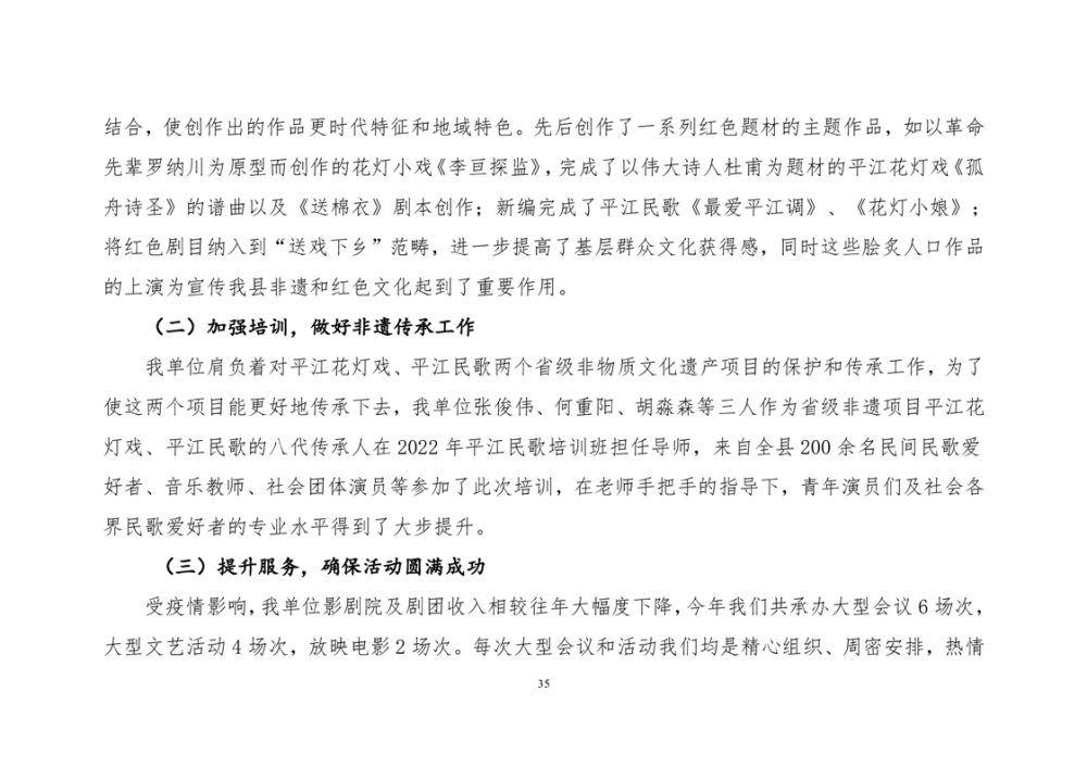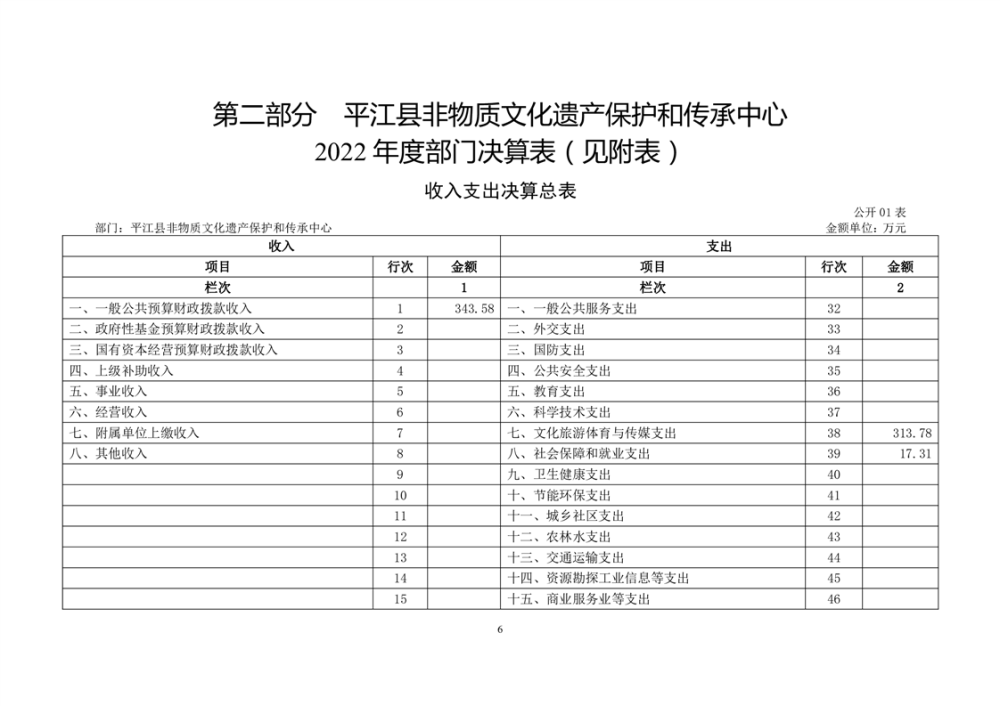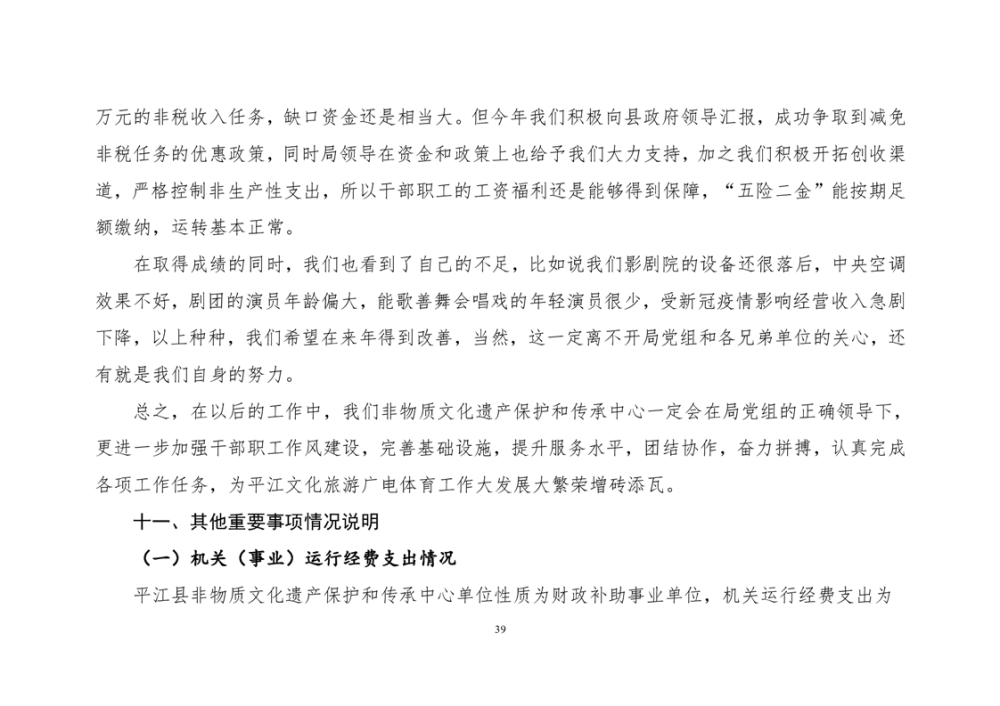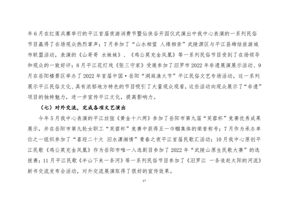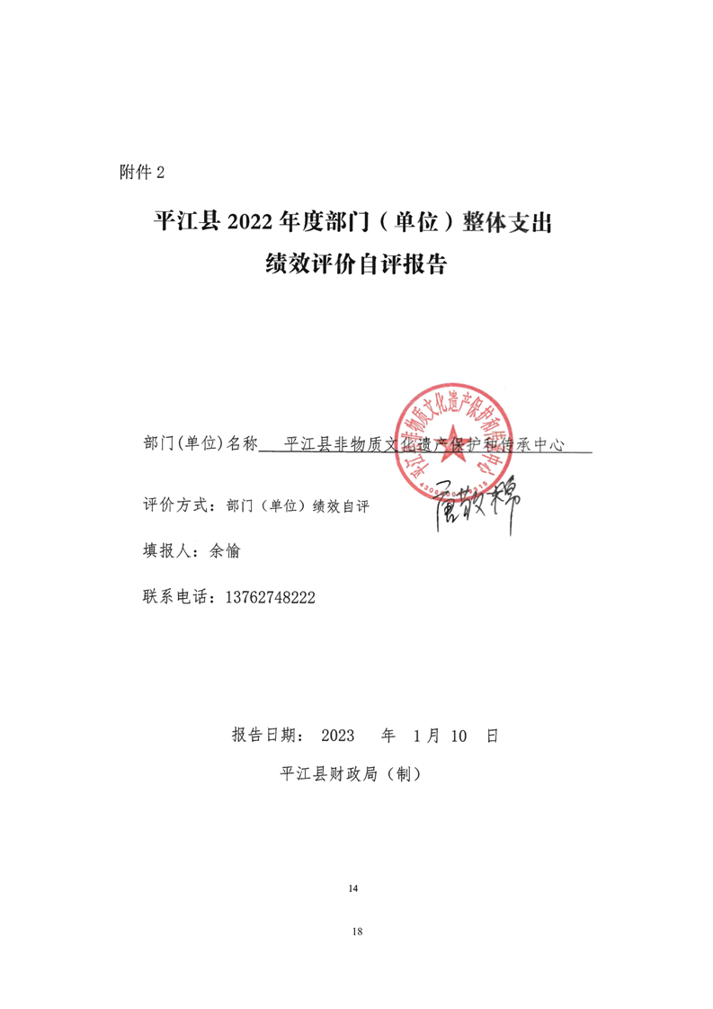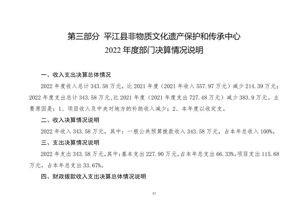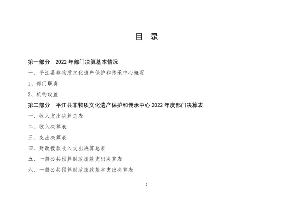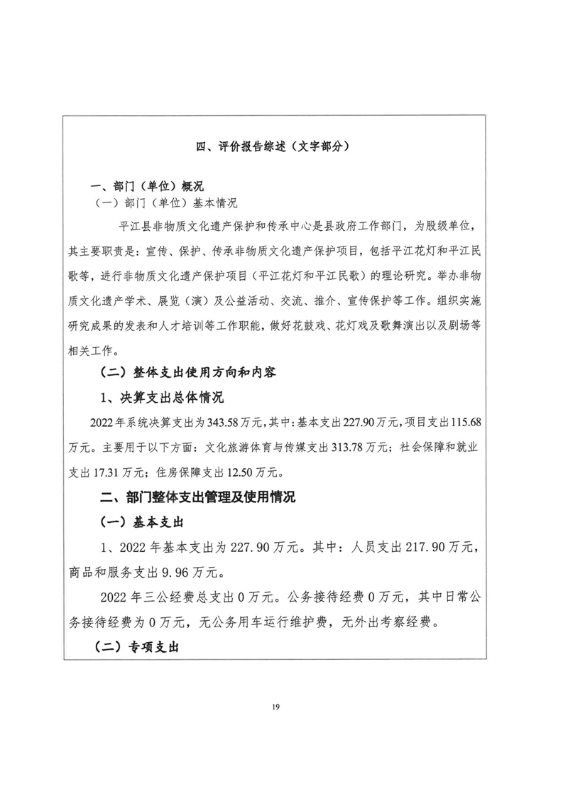平江县非物质文化遗产保护和传承中心2022年部门决算公开