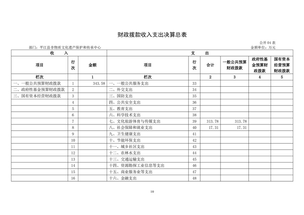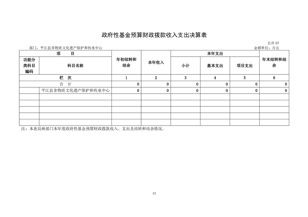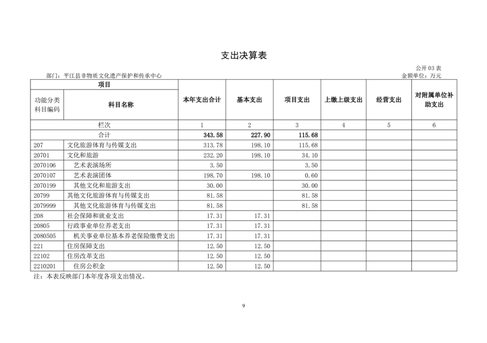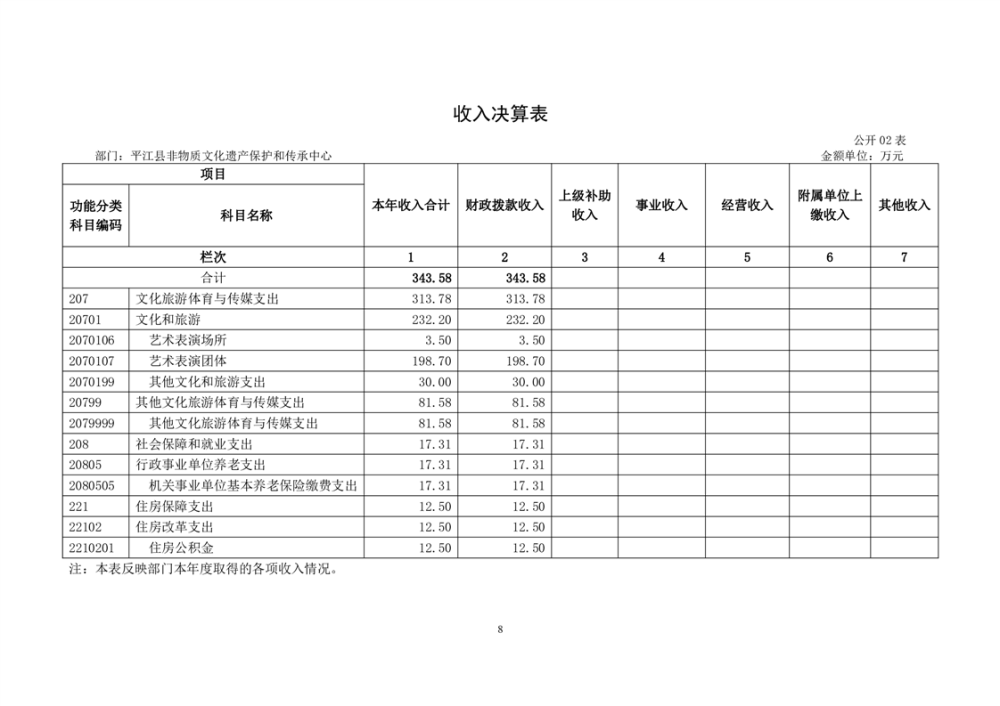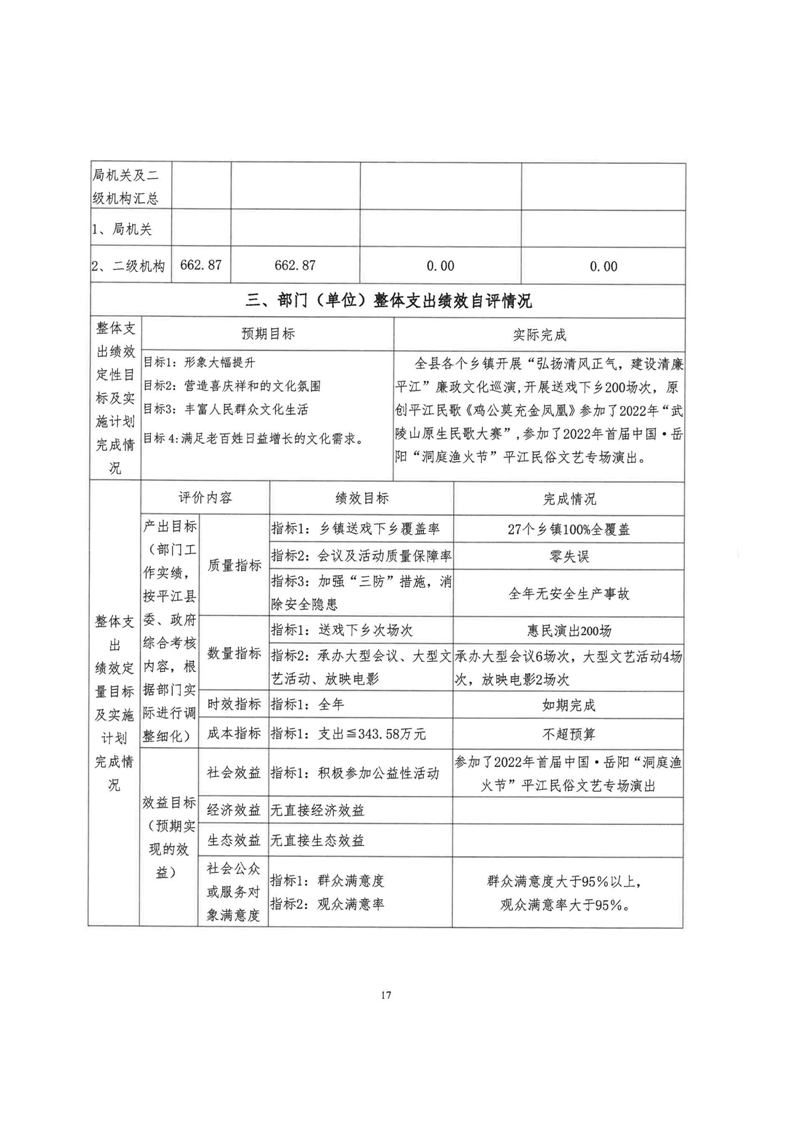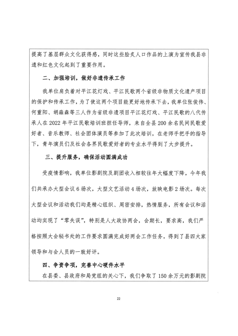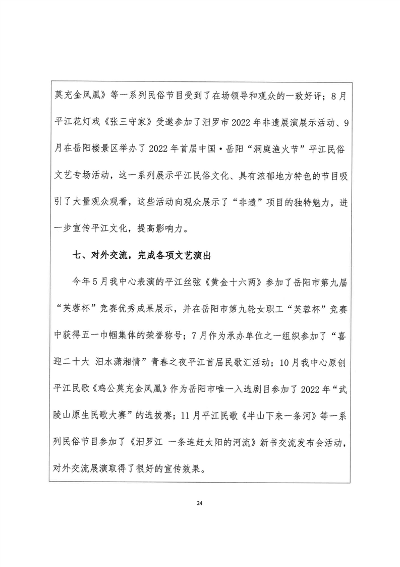 平江县非物质文化遗产保护和传承中心2022年部门决算公开