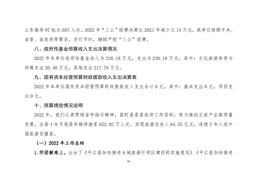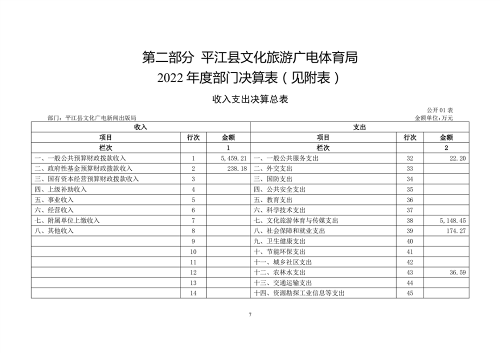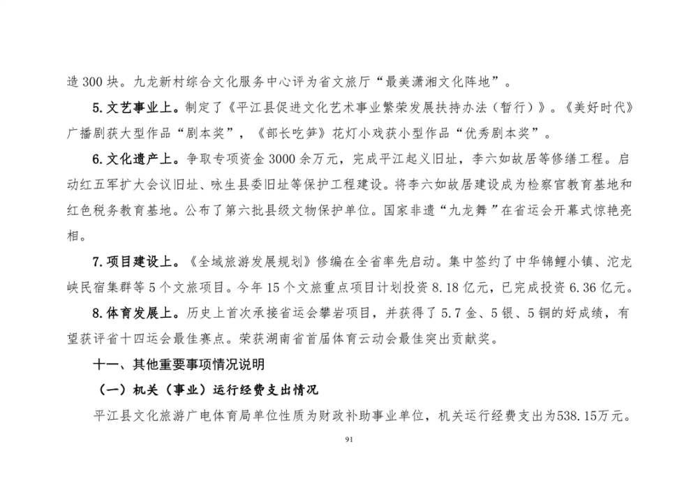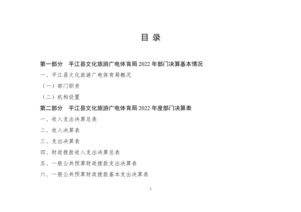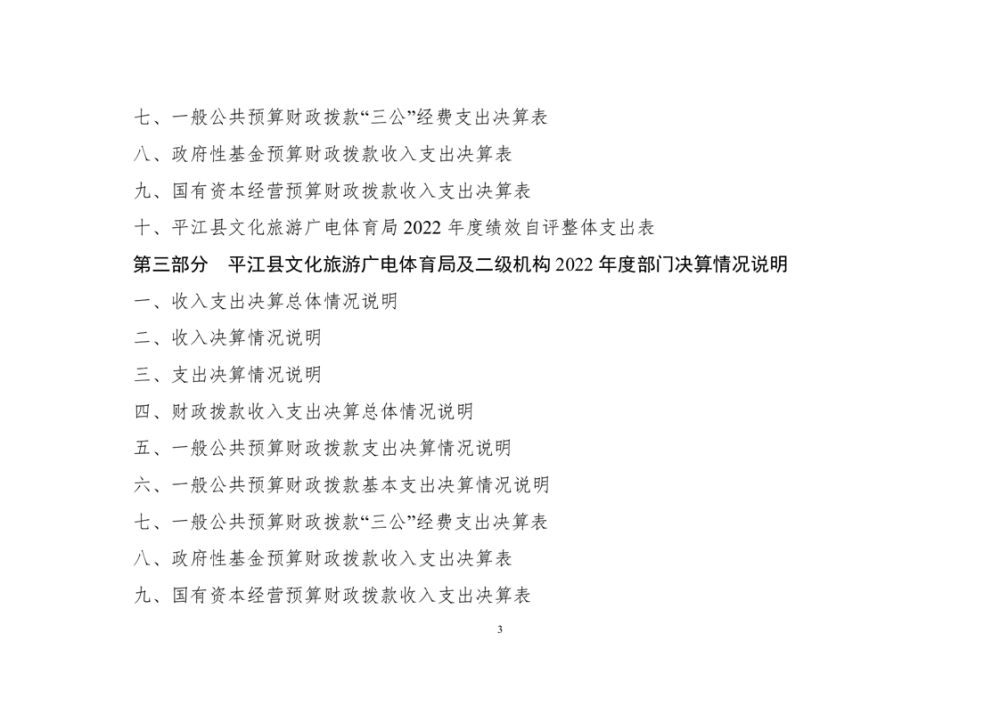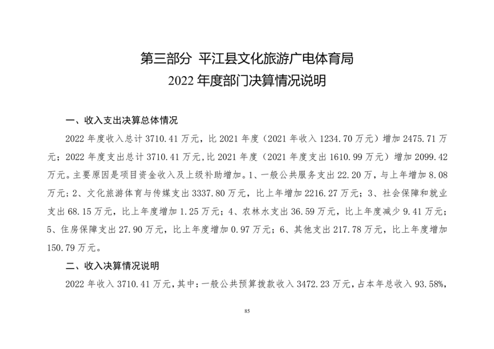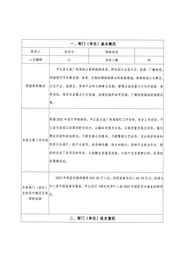 平江县文化旅游广电体育局2022年部门决算公开