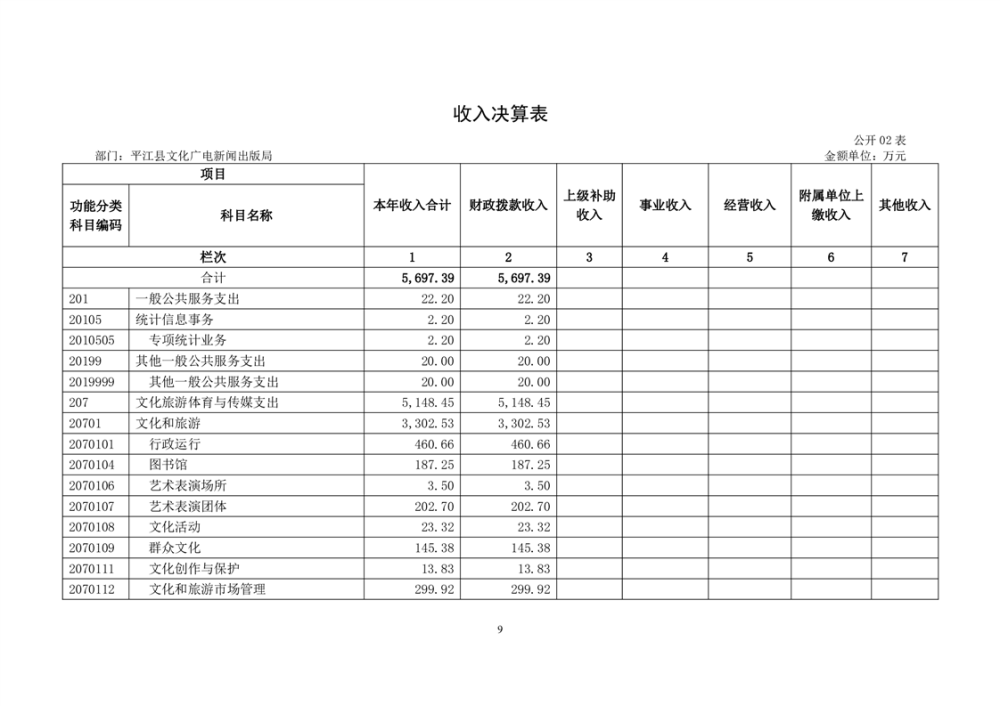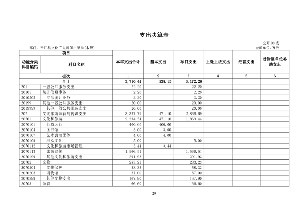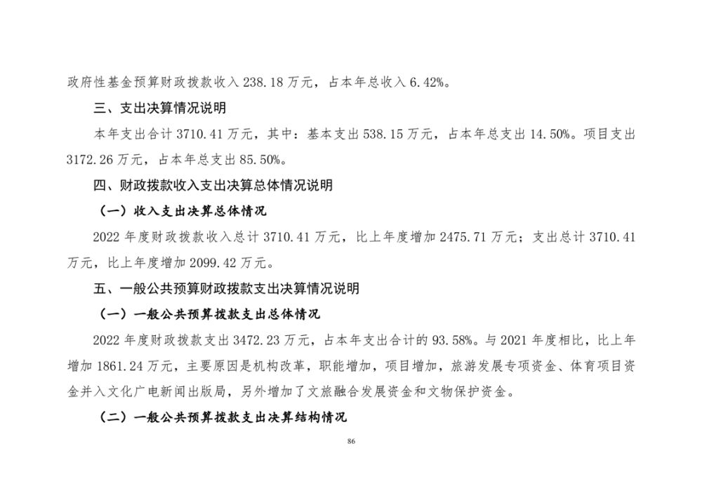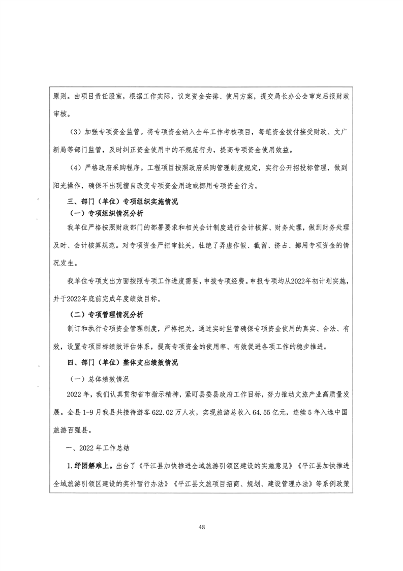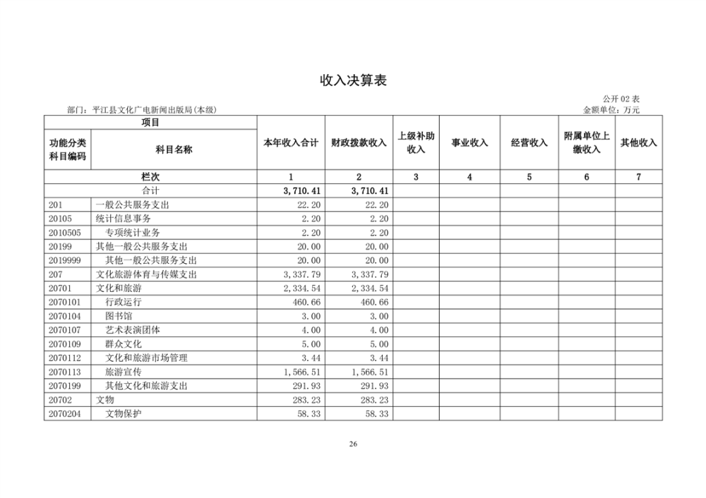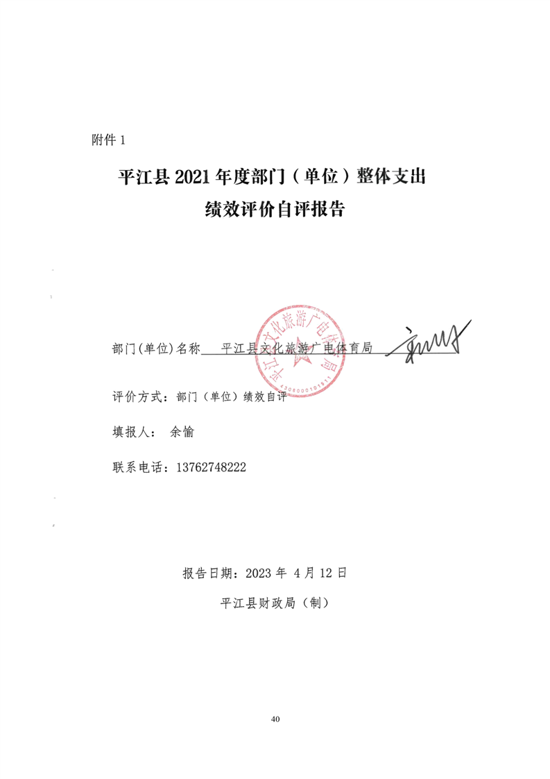 平江县文化旅游广电体育局2022年部门决算公开