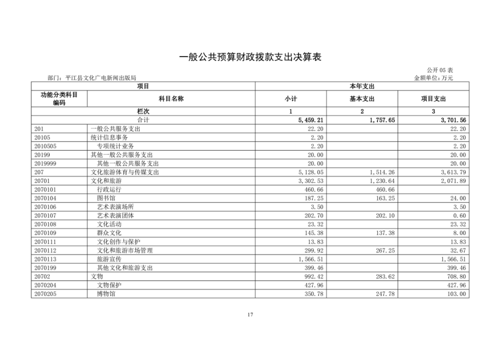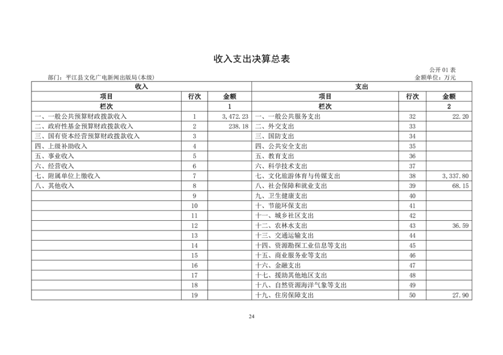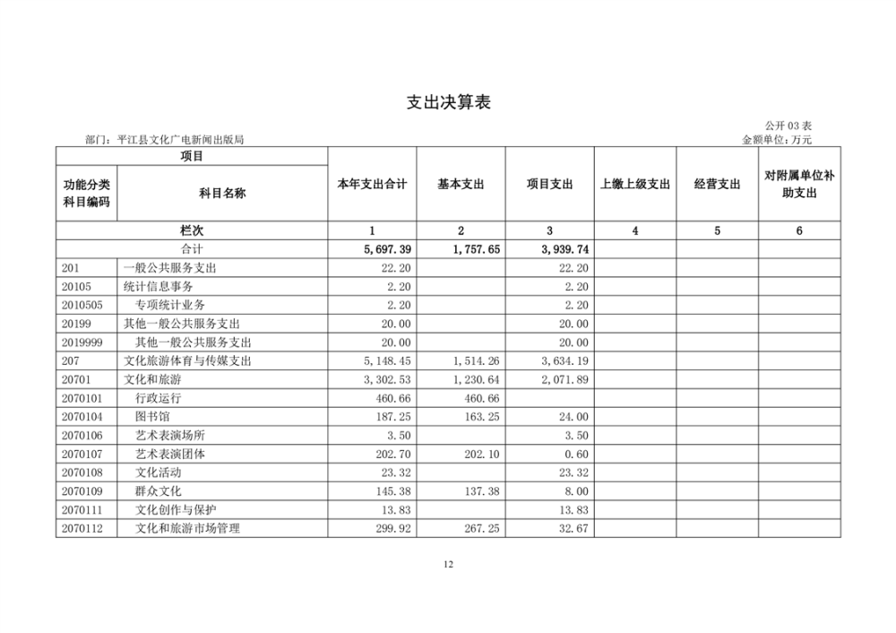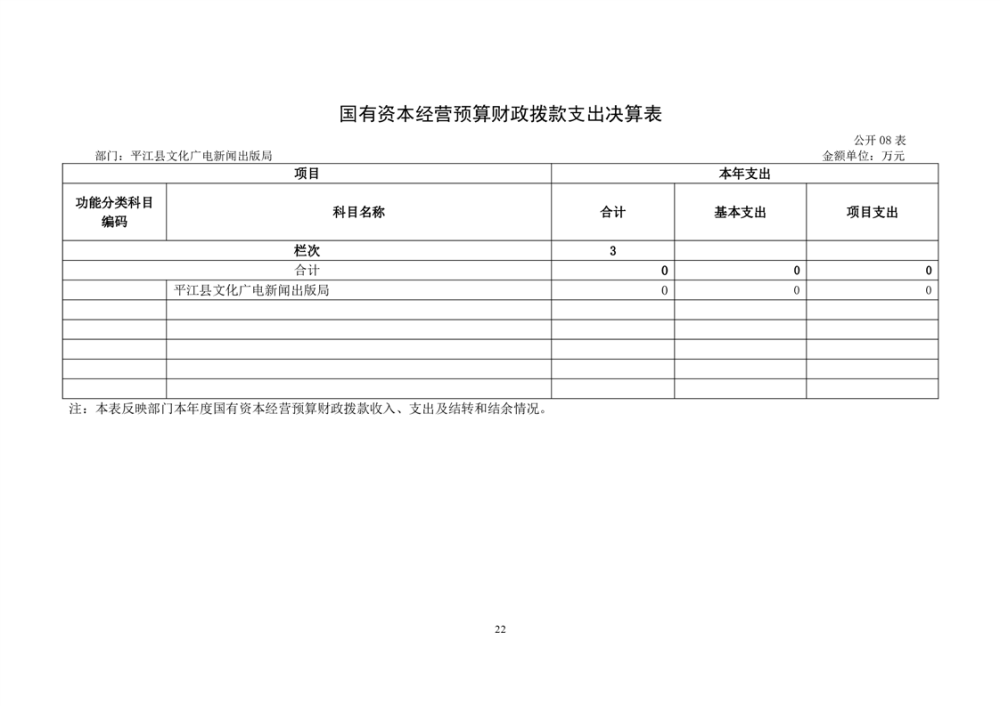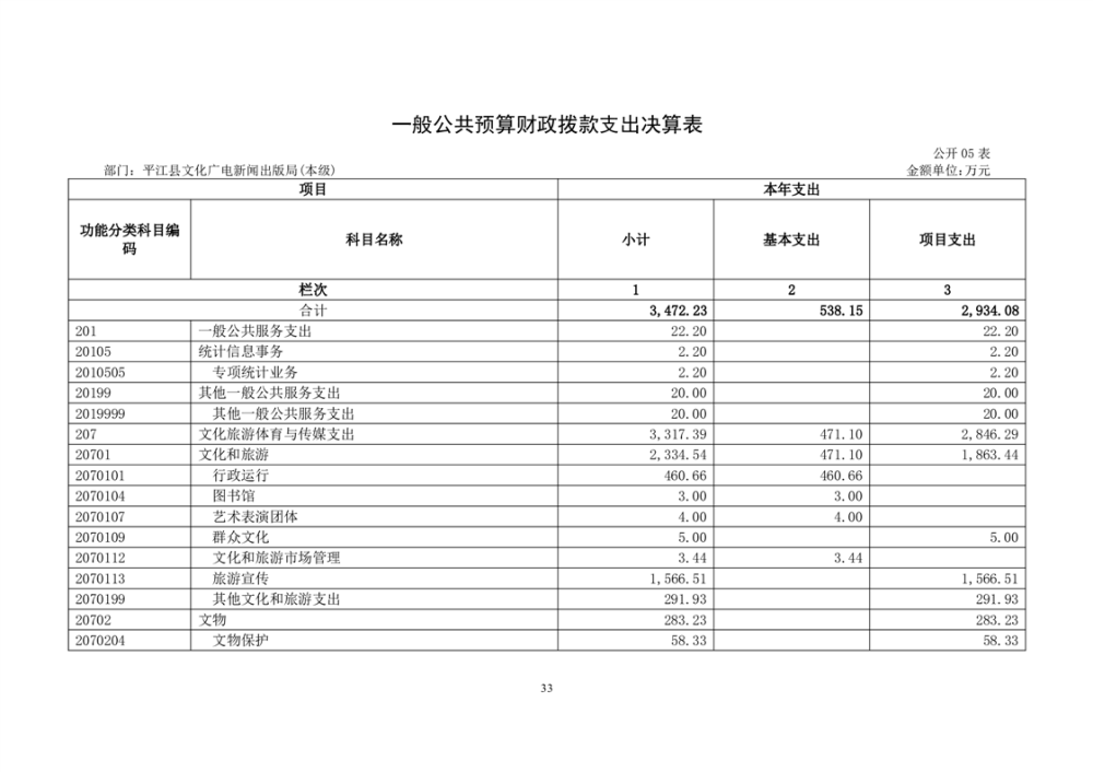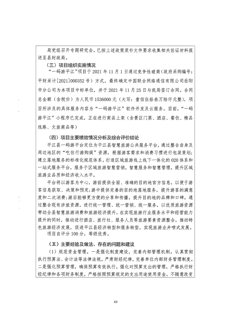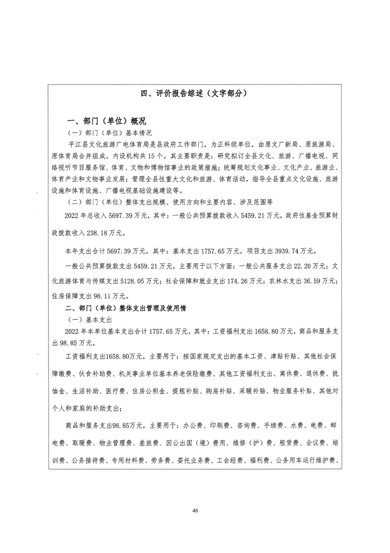 平江县文化旅游广电体育局2022年部门决算公开