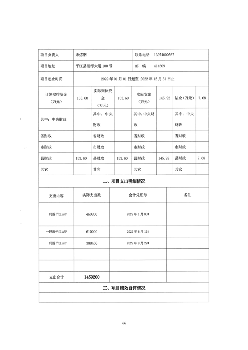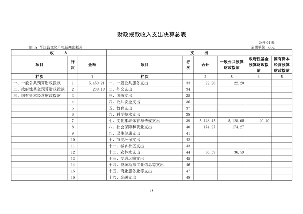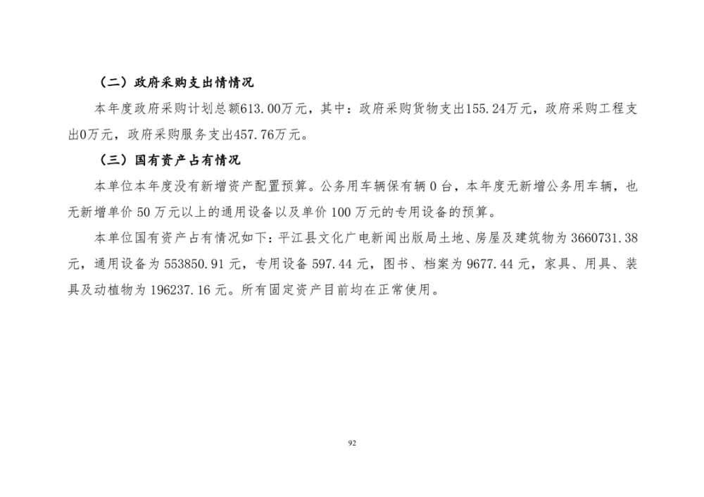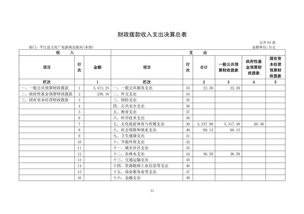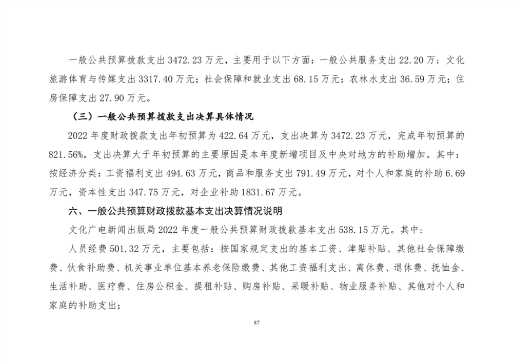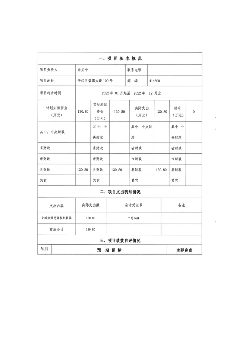 平江县文化旅游广电体育局2022年部门决算公开
