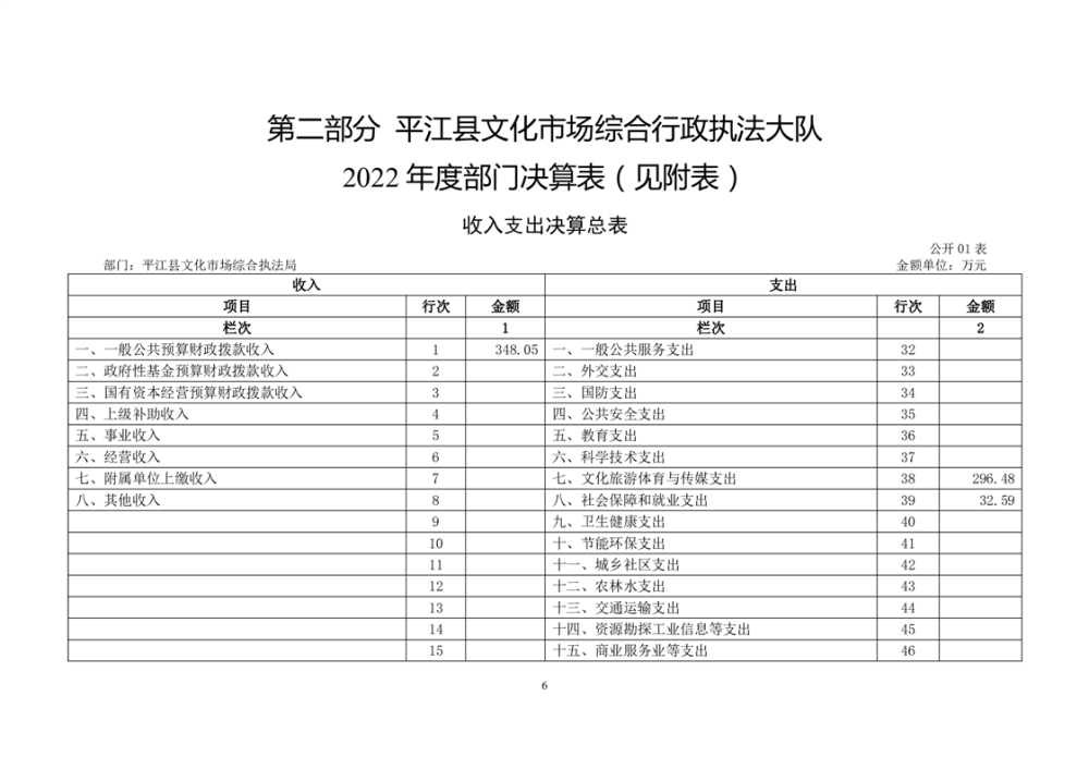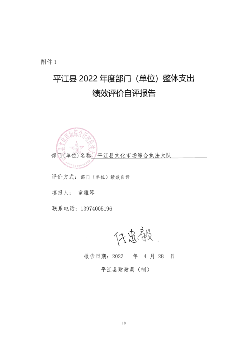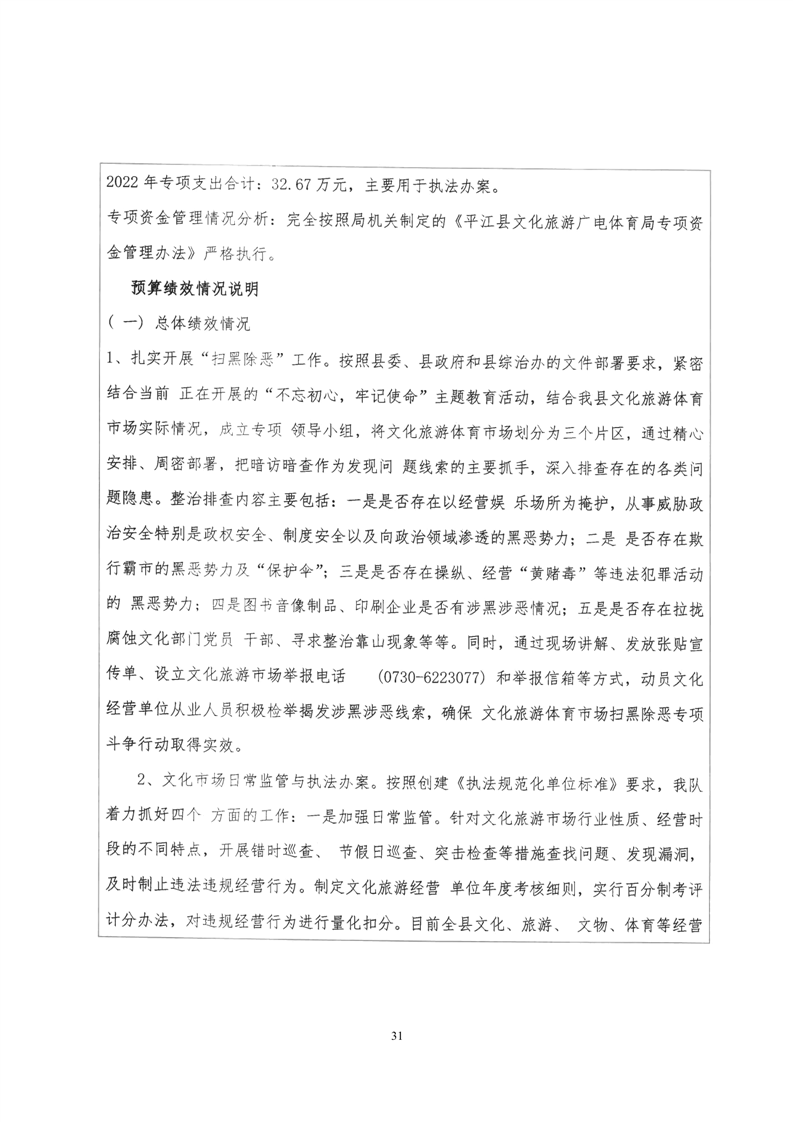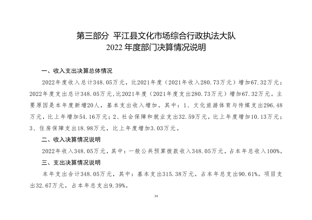 平江县文化市场综合行政执法大队2022年部门决算公开