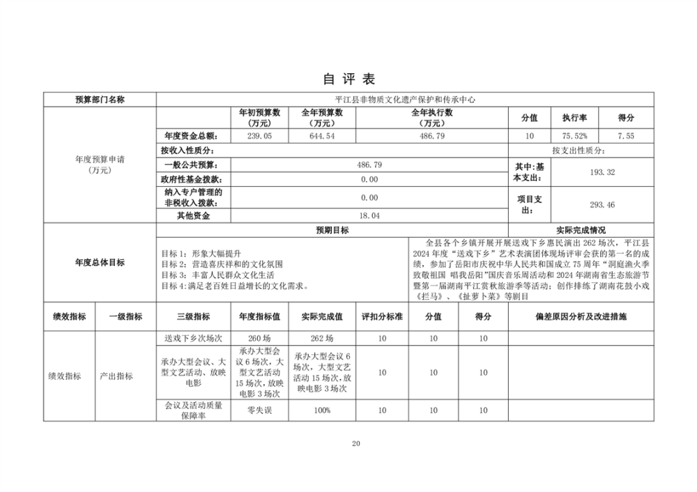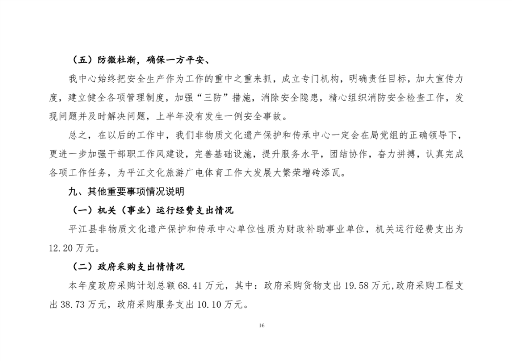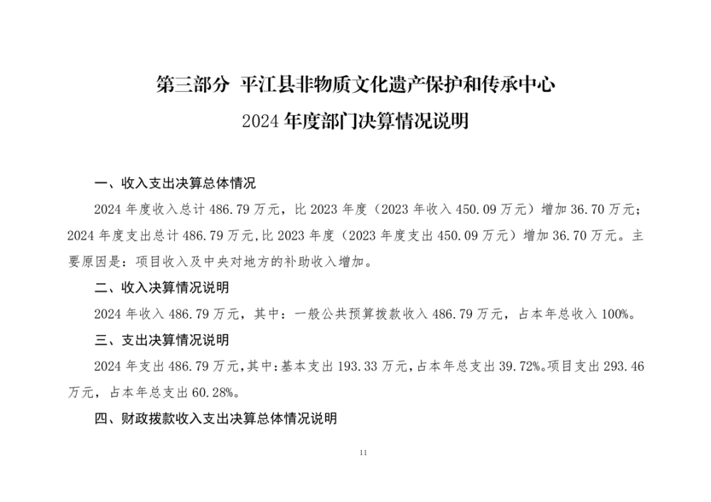 平江县非物质文化遗产保护和传承中心2024年部门决算公开