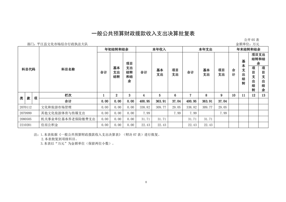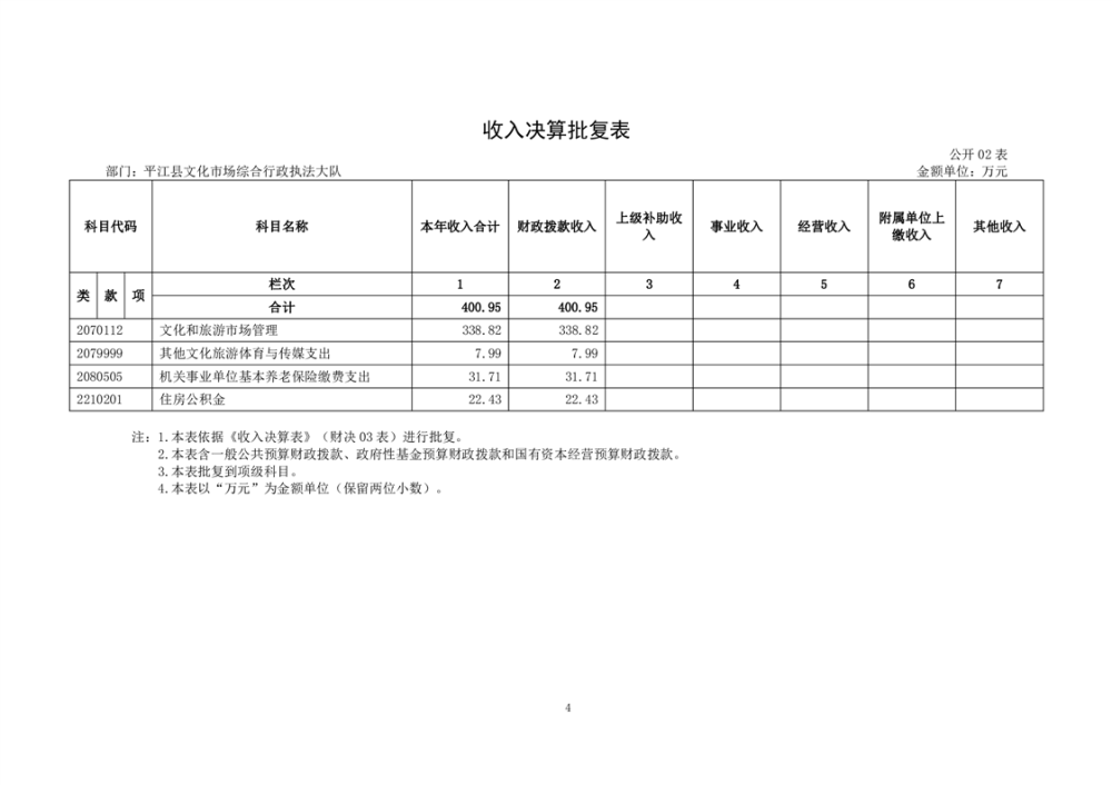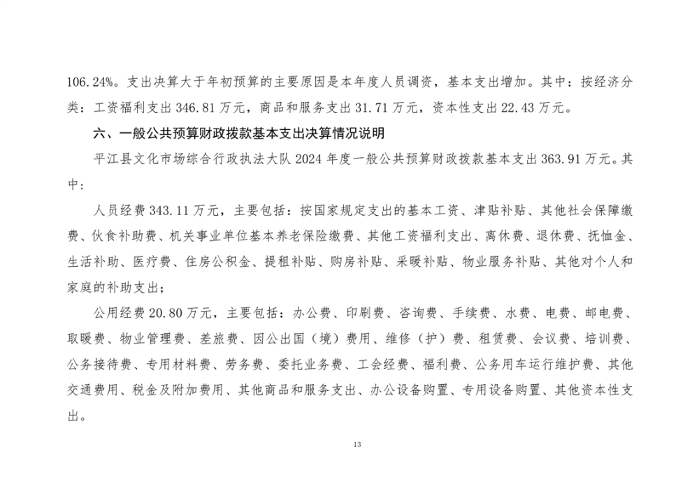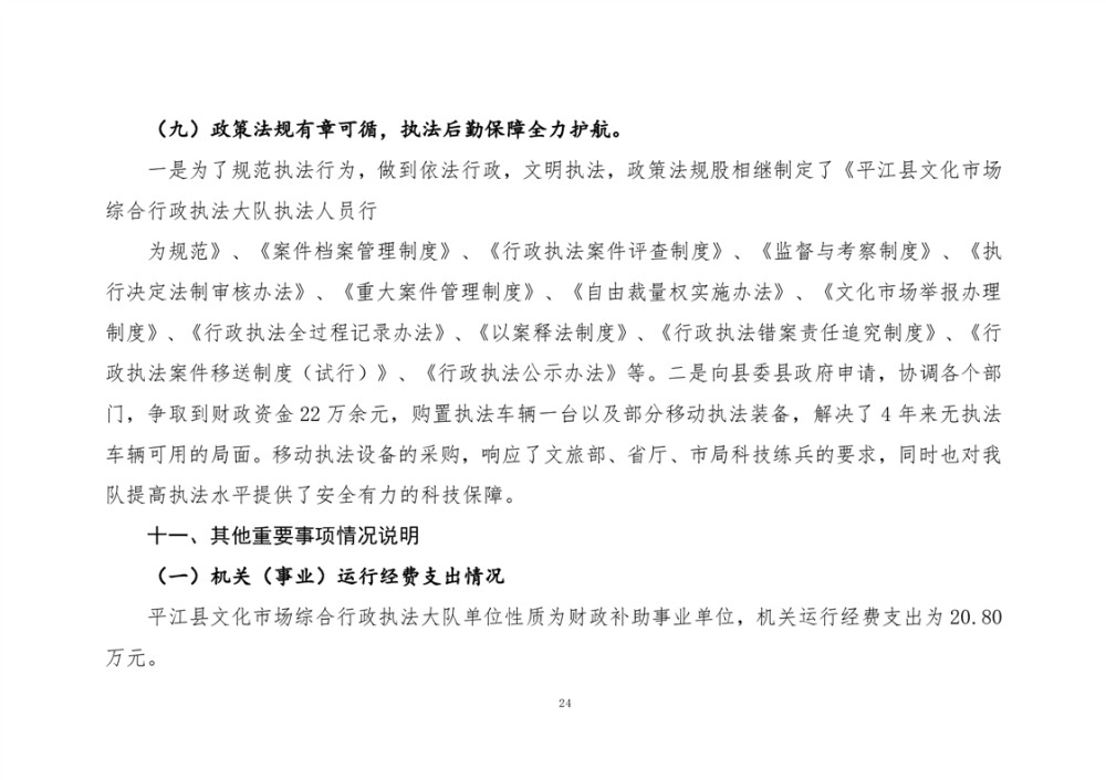 平江县文化市场综合行政执法大队2024年部门决算公开