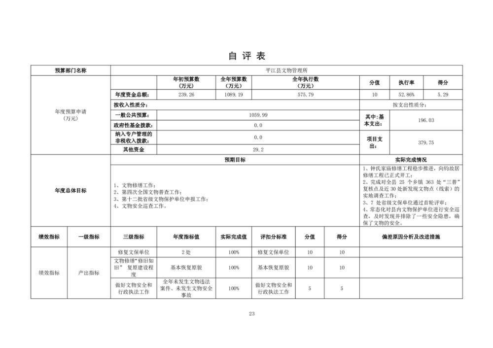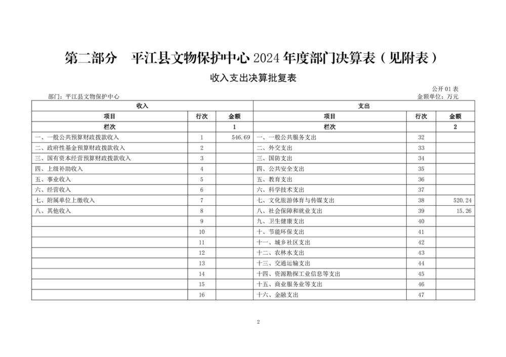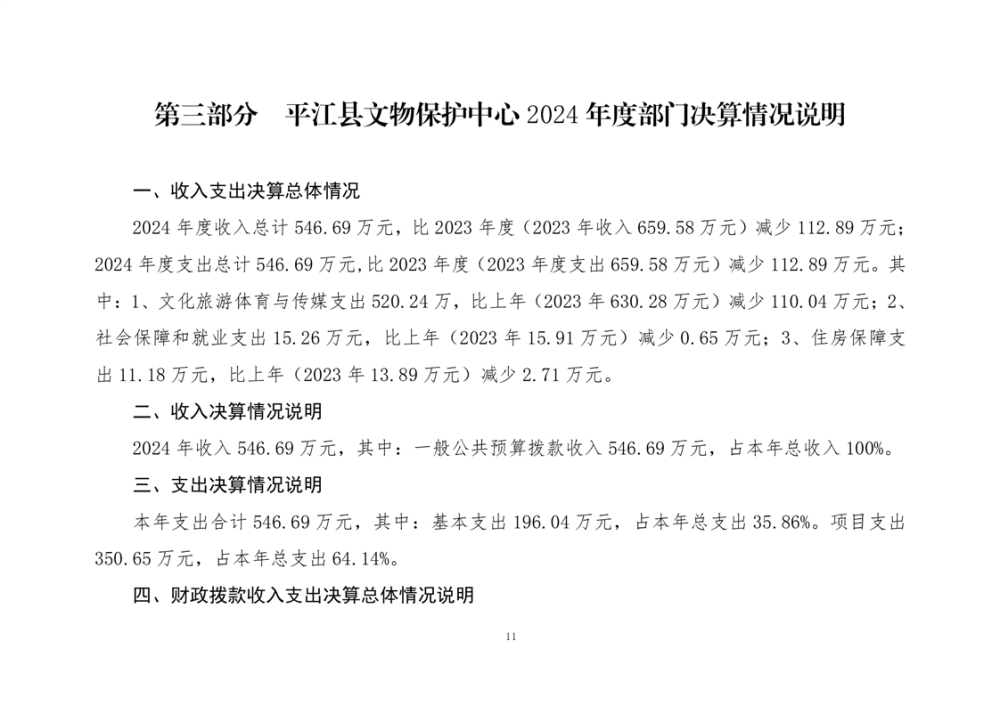 平江县文物保护中心2024年部门决算