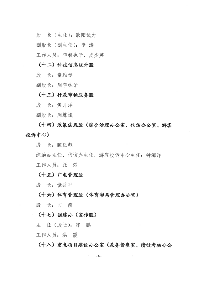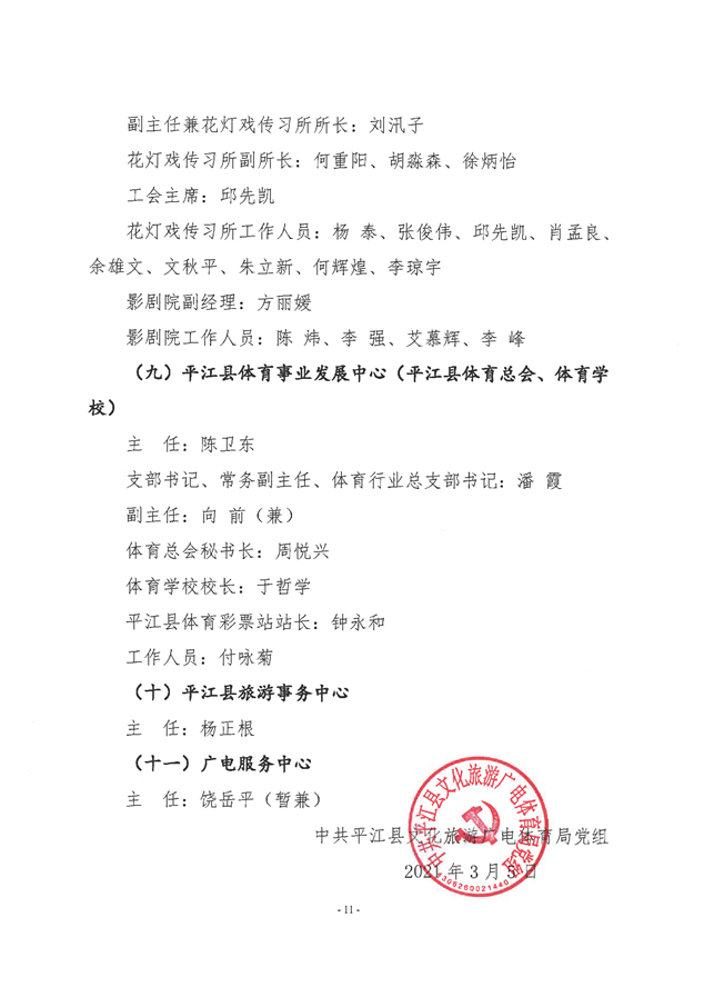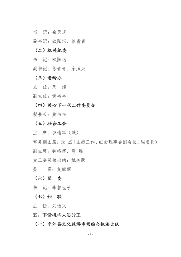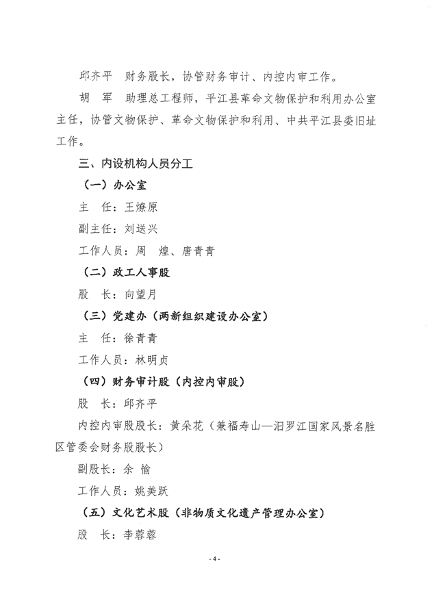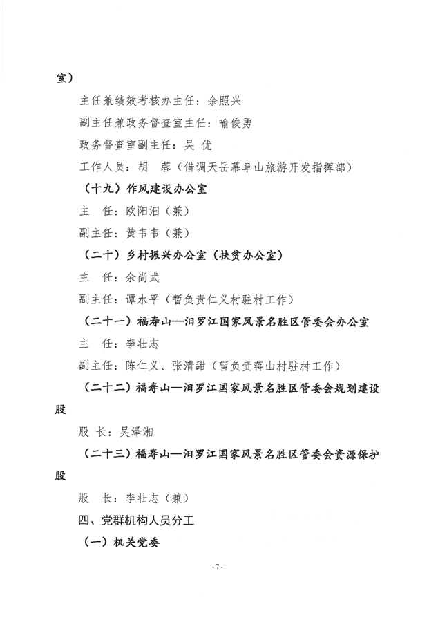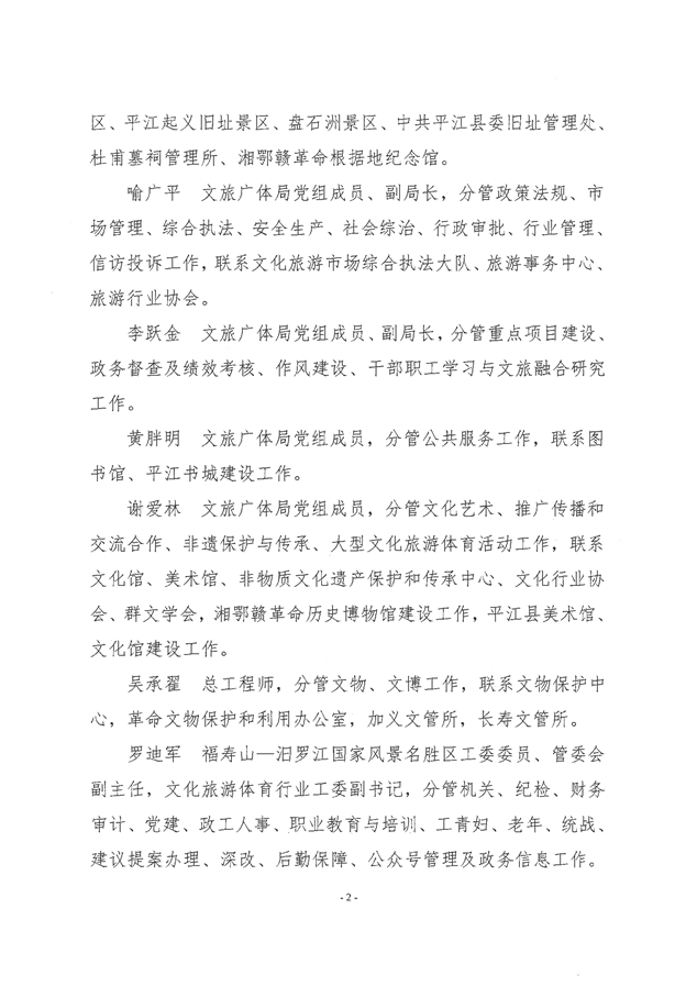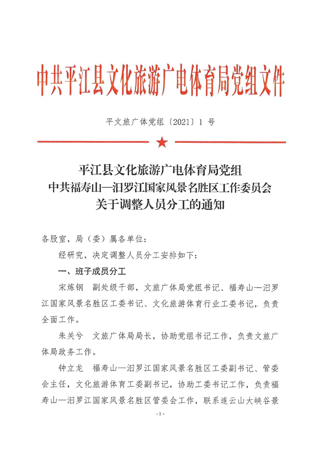 平江县文化旅游广电体育局党组中共福寿山-汩罗江国家风景名胜区工作委员会关于调整人员分工的通知