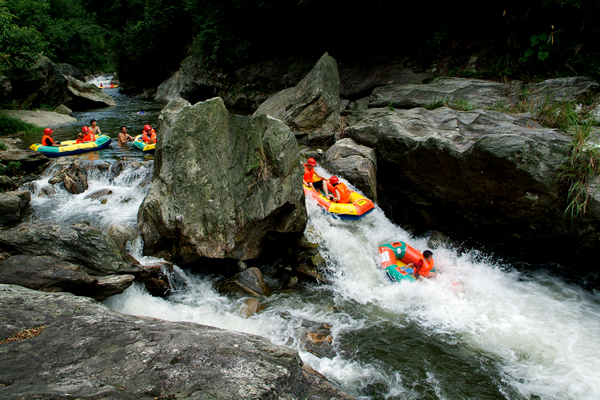 位于加义镇境内的献冲林场焕新村、湘东北第一高峰—连云山的崇山峻岭深处,是湘北地区开漂历史最久,游客反映最刺激、最安全的峡谷漂流,被誉为“天下峡谷第一漂”。河道两岸悬崖高耸,瀑布飞溅,漂流河道长达5公里,落差约160米,水流湍急,刺激而又安全,急流而下的滑道有8处,最大落差达5米,整个漂流过程需两个小时。除体验漂流外,还有高空飞索、连云竹海、峡谷溯溪、连云登顶、户外露营等活动。