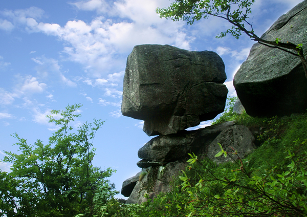 幕阜丹崖:位于幕阜山南麓海拔1520米处有一悬空壁立的巨岩,独立高耸20余米,因传晋代真人葛洪(字稚川) 岩下炼丹得道成仙而得名。岩边倒悬巨石下有一方形石洞,洞里石板铺垫,整洁有致,洞边两眼清泉,洞壁上凿有方形石碗框,左边一石灶,仍留烟色,此为葛洪当年“渴饮岩泉水,饥餐石上松”的下狮洞。